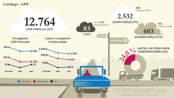 Im Bereich der Motorradunfälle hat sich die gute Bilanz der Motorradsaison auf das Gesamtjahr verstetigt. Dennoch war auch im Jahr 2021 jeder fünfte Verkehrstote mit dem Motorrad unterwegs. Im Zusammenhang mit Lastkraftwagen(Lkw)-Unfällen starben 83 Menschen und damit neun mehr als im Vorjahr. „Fast die Hälfte unserer Verkehrstoten verzeichnen wir weiterhin im Zusammenhang mit Motorrad- oder Lkw-Unfällen. Daher werden wir unseren Weg des 5-Punkte-Plans im Motorradbereich mit einer Überwachungsoffensive, verstärkter Prävention, kostenloser Technikchecks, einer offensiven Öffentlichkeitsarbeit und einer Entschärfung gefährlicher Strecken konsequent weitergehen. Auch den Schwerverkehr werden wir noch intensiver in den Fokus nehmen. Allein rund 74.000 polizeilich festgestellte Verstöße in 2021 zeigen, dass sich Lkw-Fahrerinnen und -Fahrer, aber auch Unternehmerinnen und Unternehmer besser an die Regeln halten sollten“, führte Innenminister Thomas Strobl aus.