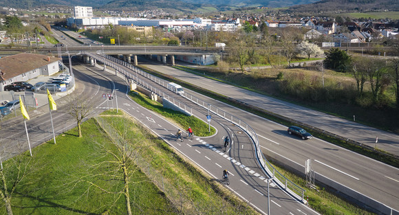 Freiburg, Rampenbrücke Hagelstauden: Durch Errichtung dieser Fuß- und Radwegbrücke wurde ein Unfallschwerpunkt im Radverkehr beseitigt. Die Brücke bindet große Gewerbestandorte an die Fahrrad-Vorrangroute FR 2 an. Sie verknüpft auch das Netz mit der in Planung befindlichen Fahrrad-Vorrangroute FR 6. Die Brücke ist bereits für den Verkehr freigegeben. Ihre Gesamtkosten belaufen sich auf 3,2 Millionen Euro.