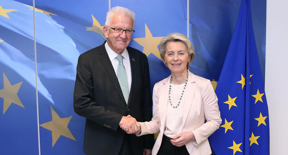 Im Rahmen einer auswärtigen Kabinettssitzung in Brüssel hat sich die Landesregierung mit europapolitischen Schwerpunkten befasst. Aus Sicht von Ministerpräsident Winfried Kretschmann ist eine starke Europäische Union von zentraler Bedeutung für Baden-Württemberg. Kretschmann traf auch die Präsidentin der Europäischen Kommission.