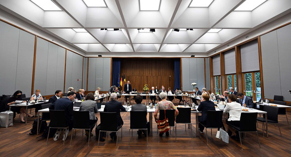 Die Kabinettssitzung in Brüssel stand ebenfalls im Zeichen der vielfältigen europapolitischen Herausforderungen – von den Folgen des russischen Angriffskriegs auf die Ukraine über die Umsetzung des European Green Deals bis zu einer denkbaren institutionellen Reform der EU. Unter anderem wurden dabei die Themen Flucht und Migration sowie aktuelle energiepolitische Fragen mit Vertreterinnen und Vertretern der Europäischen Kommission erörtert.