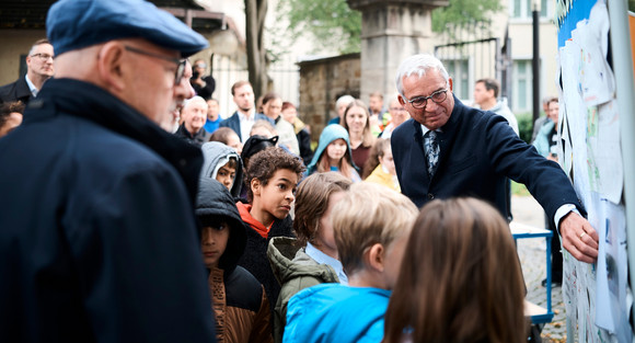Auch die Schülerinnen und Schüler haben die Möglichkeit, mit den Ministern ins Gespräch zu kommen. Bei einem Rundgang können sie die Ergebnisse der vorbereitenden Workshops präsentieren und ihre Fragen stellen. Verschiedene Stationen vereinen Spiel, Spaß und das Thema Sicherheit. Sie berücksichtigen alle den Aspekt der Flächengerechtigkeit und nehmen jeweils in etwa die Straßenfläche eines geparkten Autos ein.