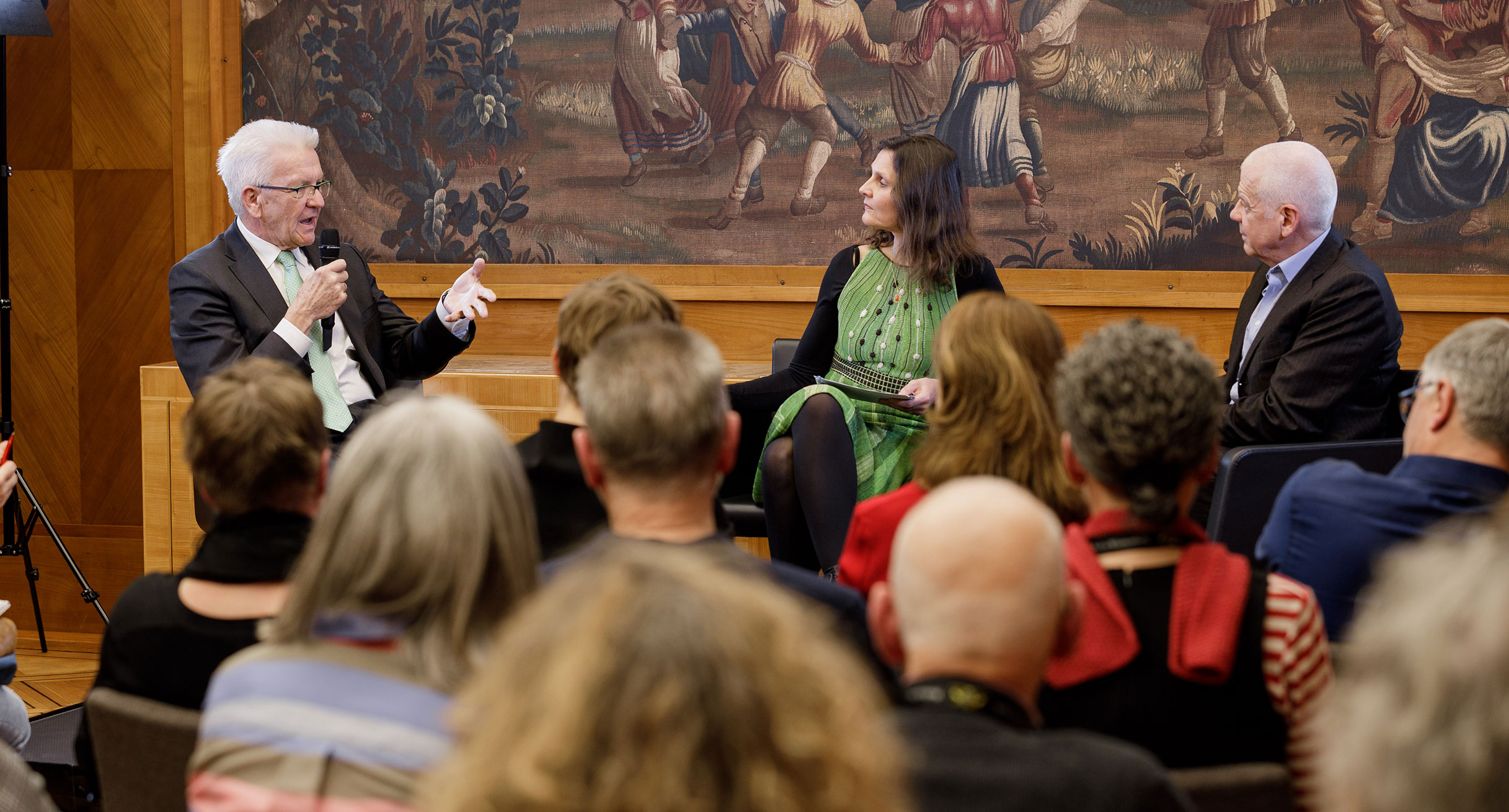 Beim Auftakt des neuen Formats „Kultur in der Villa“ trafen sich Ministerpräsident Winfried Kretschmann und der Autor Matthias Politycki zum gemeinsamen Gespräch über das Thema „Haltung finden“. Hier sehen Sie eine Aufzeichnung des Gesprächs.