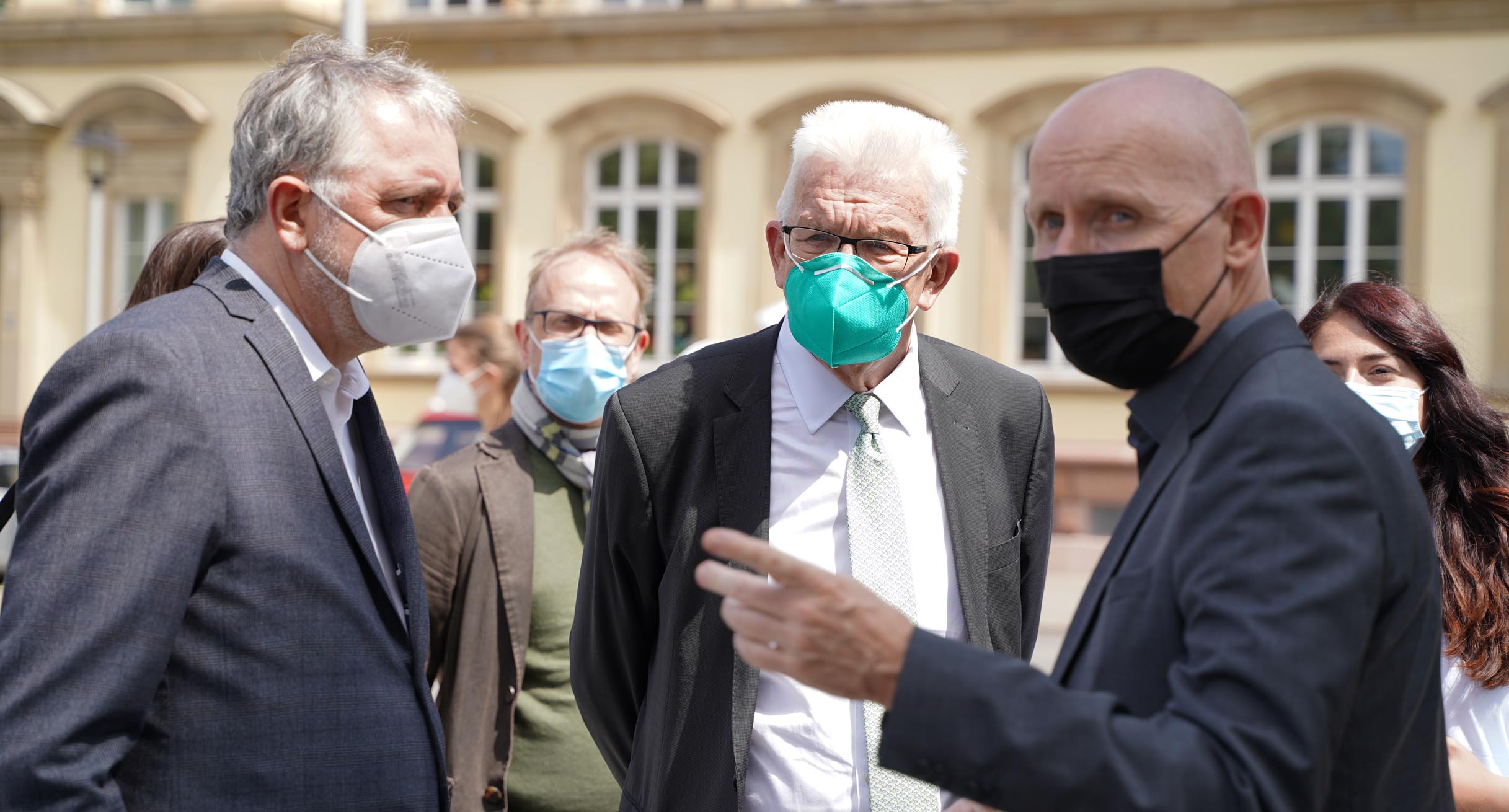 Engagement, Kreativität, Kultur und Zusammenhalt – Ministerpräsident Winfried Kretschmann konnte viele positive Eindrücke in der Quadratestadt Mannheim sammeln. Auf dem Plan standen die Quartiersimpfung im Bürgerhaus Neckarstadt-West, ein Spaziergang durchs Quartier, das Jugendzentrum im Kaisergarten, das Kooperationsprojekt Alter Mannheim am Neckarufer und das „Lessing-Forum“ des Lessing-Gymnasiums in Mannheim.