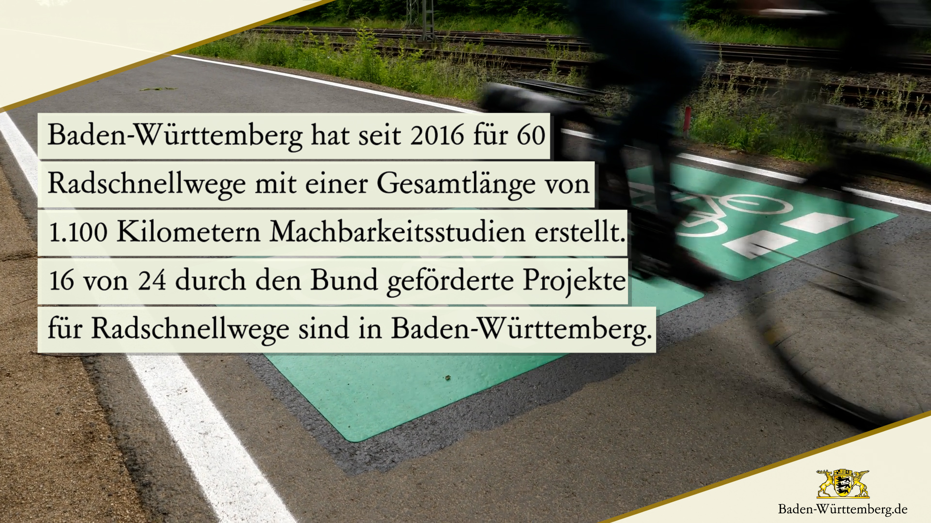 Baden-Württemberg ist bundesweit Vorreiter bei der Realisierung von Radschnellprojekten. Seit 2016 wurden im Land für 60 Strecken mit gut 1.100 Kilometern Gesamtlänge Machbarkeitsstudien erarbeitet. Das Fahrrad ist als klimafreundliches Verkehrsmittel in der Fläche des Landes angekommen.
