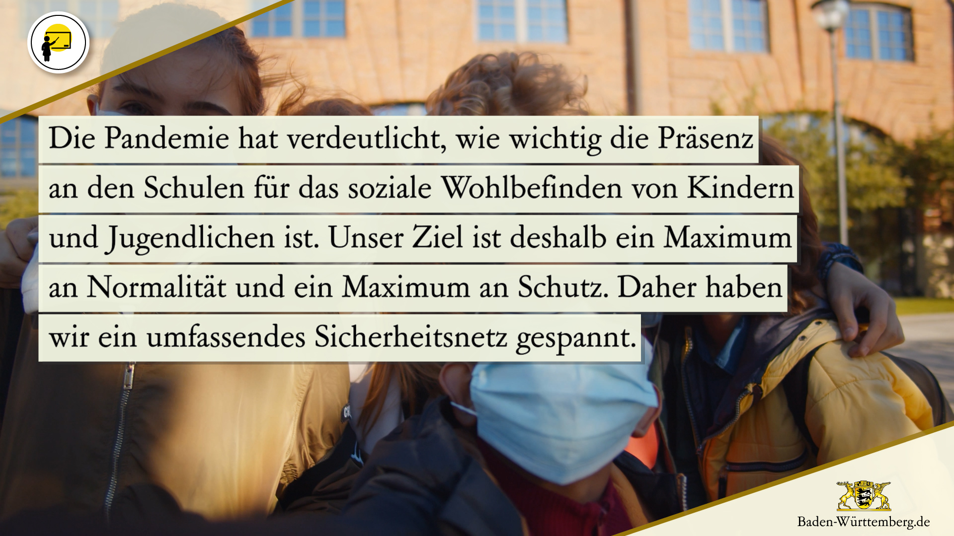 Präsenzunterricht und Gesundheitsschutz – das sind die beiden Kernziele für das aktuelle Schuljahr. Das Schutz-Paket aus engmaschiger Testung, Maskenpflicht, Hygiene- und Schutzmaßnahmen, Impfung und Luftfiltern hat sich bewährt. Es besteht Grund zur Zuversicht, gleichwohl ist weiterhin Vorsicht geboten.