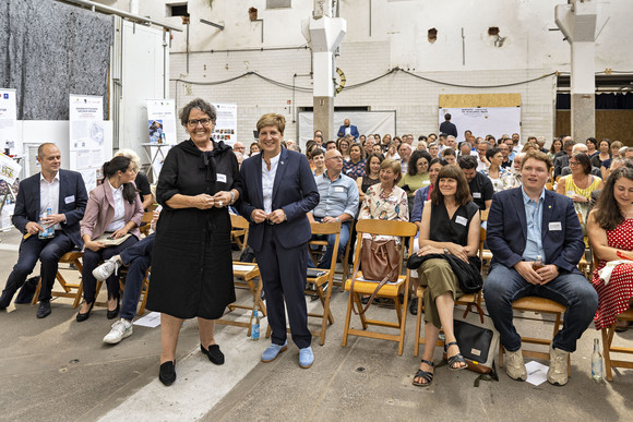 Die Patenschaft Innovativ Wohnen BW fördert seit 2021 beispielgebende Projekte für mehr bezahlbaren und lebenswerten Wohnraum. Beim Landesweiten Schaufenster am Montag, 19. Juni 2023, im Alten Schlachthof in Pforzheim waren die Projekte erstmals unter einem Dach vereint.