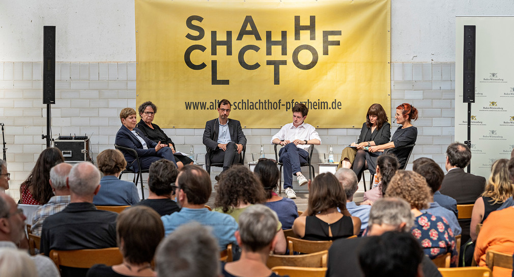 Anschließend beleuchtete eine Podiumsdiskussion neue Wege bei der Schaffung von Wohnraum. Neben Ministerin Nicole Razavi sprachen die Bürgermeisterin für Planen, Bauen, Umwelt und Kultur der Stadt Pforzheim, Sibylle Schüssler, der Bürgermeister der Gemeinde Baltmannsweiler, Simon Schmid, der stellvertretende Präsidiumsvorsitzende des Pforzheimer Jugendgemeinderats, Leon Meyer, und Prof. Martina Baum, Direktorin des Städtebau-Instituts und Professorin für Stadtplanung und Entwerfen an der Universität Stuttgart.