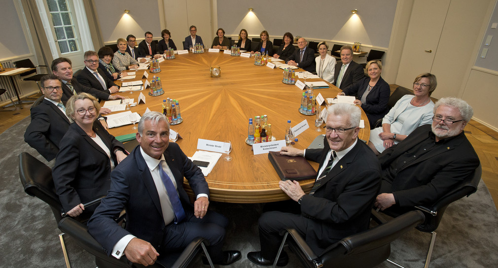 Die Landesregierung besteht aus dem Ministerpräsidenten, zehn Ministerinnen und Ministern sowie einer Staatsrätin mit Stimmrecht in der Regierung. Sieben politische Staatssekretärinnen und Staatssekretäre sowie ein Staatsminister unterstützen die Landesregierung in ihrer Arbeit.
