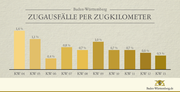 Die Bilanz nach einen halben Jahr Krisenmanagement kann sich sehen lassen. Die Züge fahren wieder pünktlicher und es fallen heute deutlich weniger Züge aus als noch zu Beginn des Jahres. „Wir haben den negativen Trend gestoppt und in einen positiven Trend umgewandelt“, sagte David Weltzien, Vorsitzender der Regionalabteilung der DB Regio AG Baden-Württemberg. „Wir sind aber noch nicht am Ziel und müssen den Trend jetzt nachhaltig stabilisieren.“