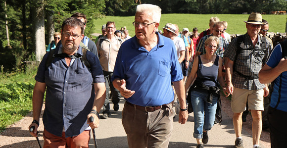 „Uns haben jeden Tag kompetente Wanderführerinnen und Wanderführer ihre Heimat nahe gebracht und uns mit vielen Informationen zu den Sehenswürdigkeiten und Besonderheiten versorgt. Ich möchte mich an dieser Stelle herzlich bei den vielen Ehrenamtlichen bedanken. Sie führen nicht nur den Ministerpräsidenten über verschlungene Wanderpfade zu den besten Aussichtspunkten. Mit ihrem Engagement machen sie Baden-Württemberg erst zu einem besonderen Wanderland“, hob der Ministerpräsident hervor.