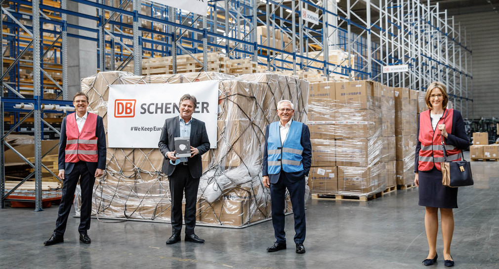 Beim Transport und der Verteilung von Schutzmasken, Brillen und Schutzanzügen arbeitet das Land Baden-Württemberg mit den Unternehmen Porsche, DB Schenker sowie Lufthansa Cargo zusammen.