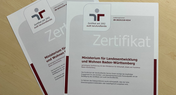 Das Ministerium für Landesentwicklung und Wohnen ist mit dem Zertifikat „audit berufundfamilie“ ausgezeichnet worden.