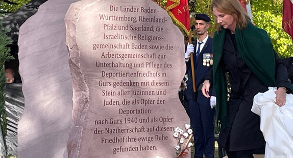 Staatssekretärin Sandra Boser hat auf dem Friedhof der französischen Stadt Pau ein Denkmal zur Erinnerung an die dort bestatteten südwestdeutschen Jüdinnen und Juden enthüllt.