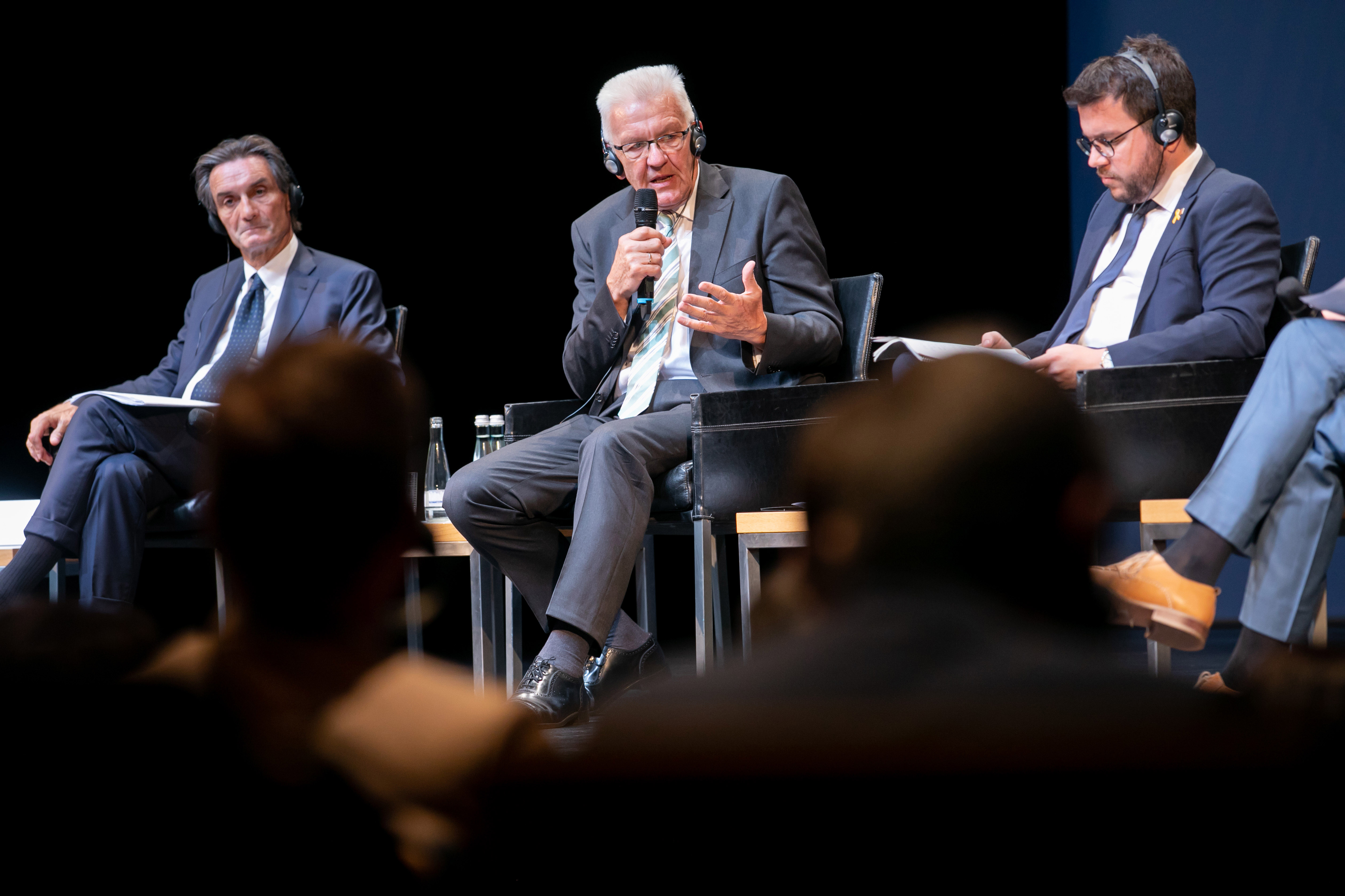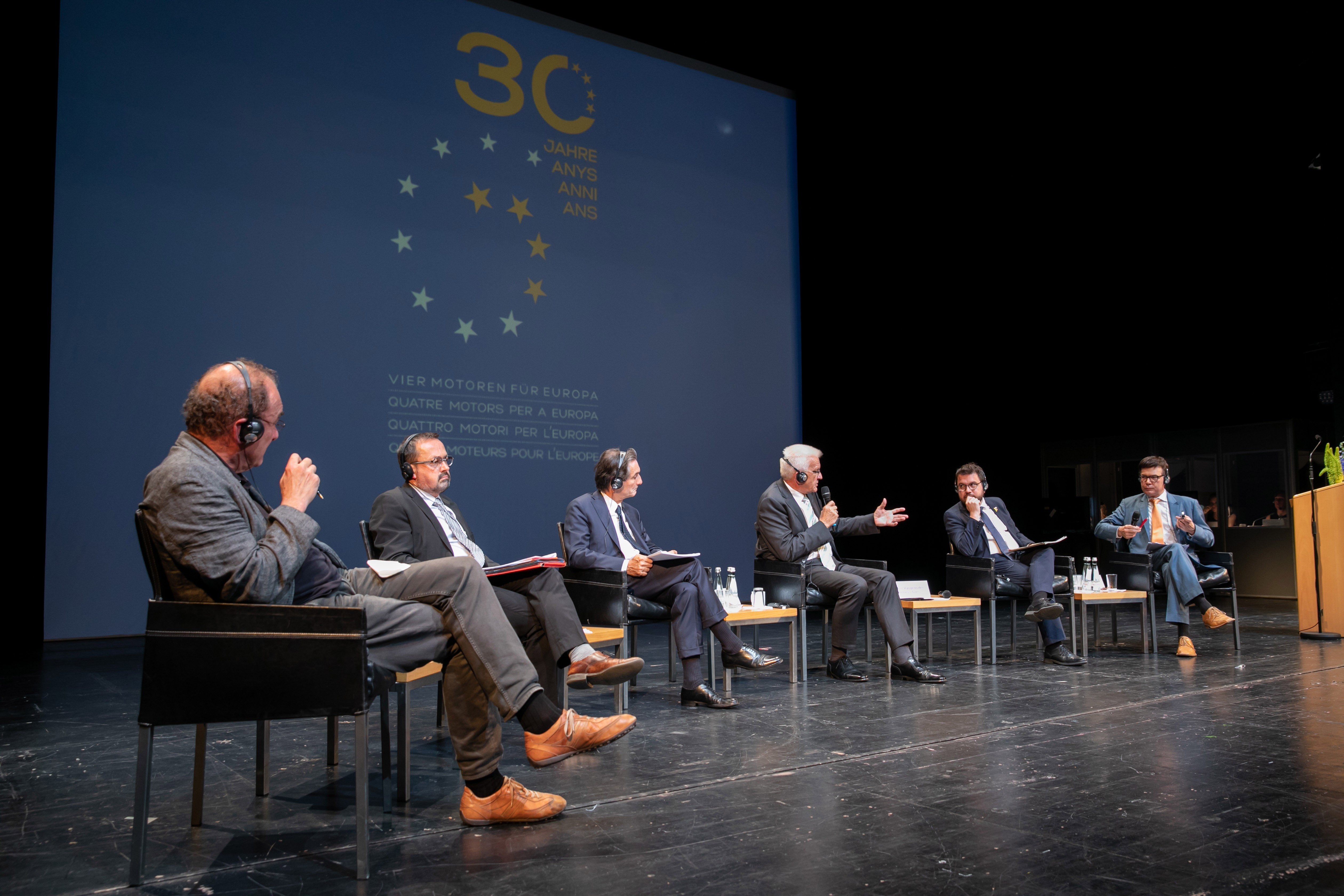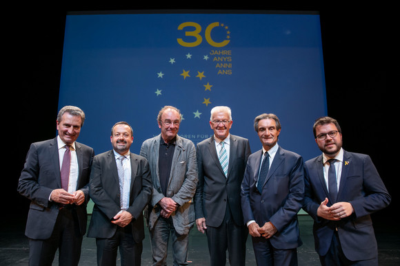 Mit einem Festakt im Schauspiel Stuttgart wurde das 30-jährige Jubiläum der „Vier Motoren für Europa“ gefeiert. Die multilaterale Arbeitsgemeinschaft besteht aus Baden-Württemberg, Katalonien, der Lombardei und Auvergne-Rhône-Alpes.