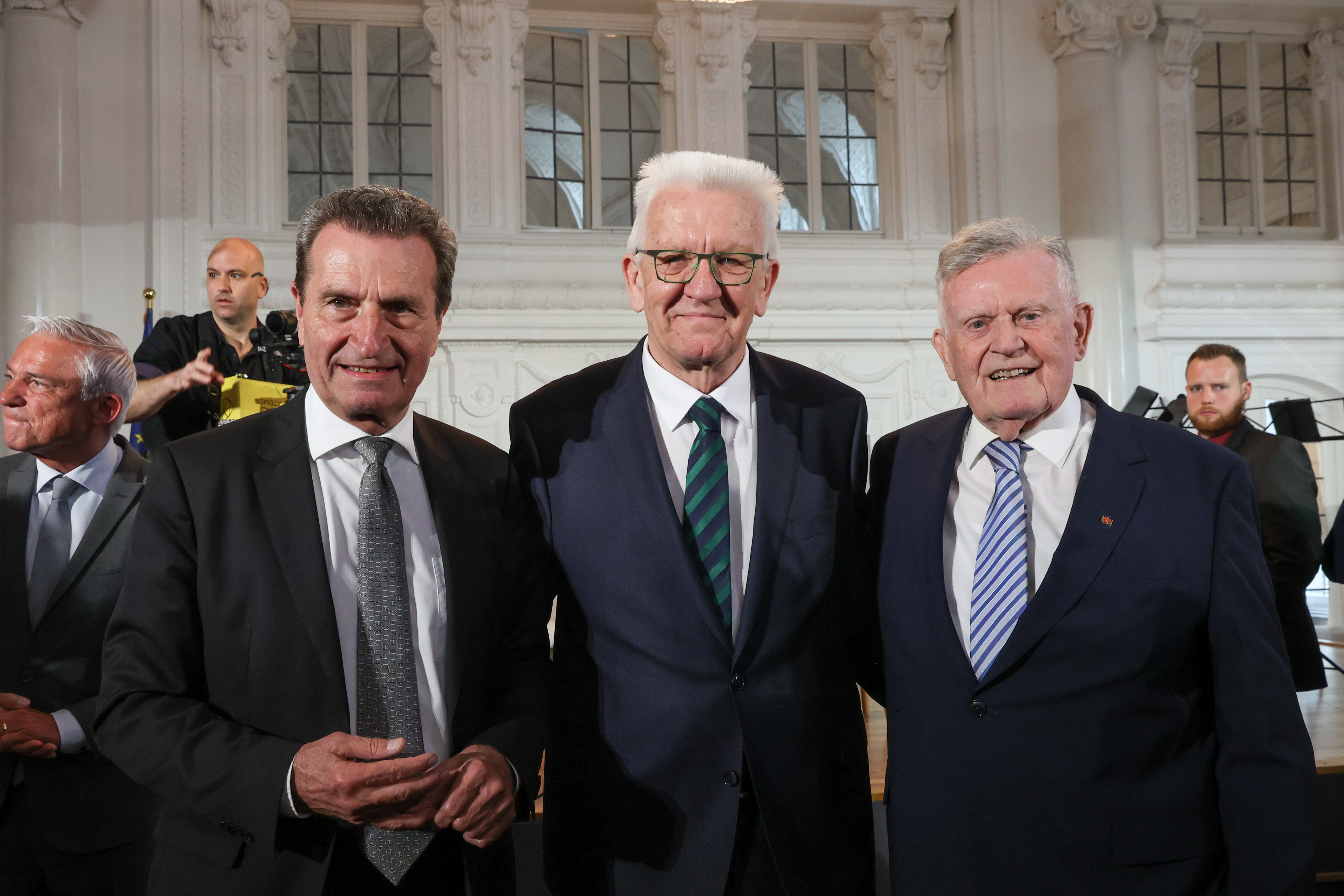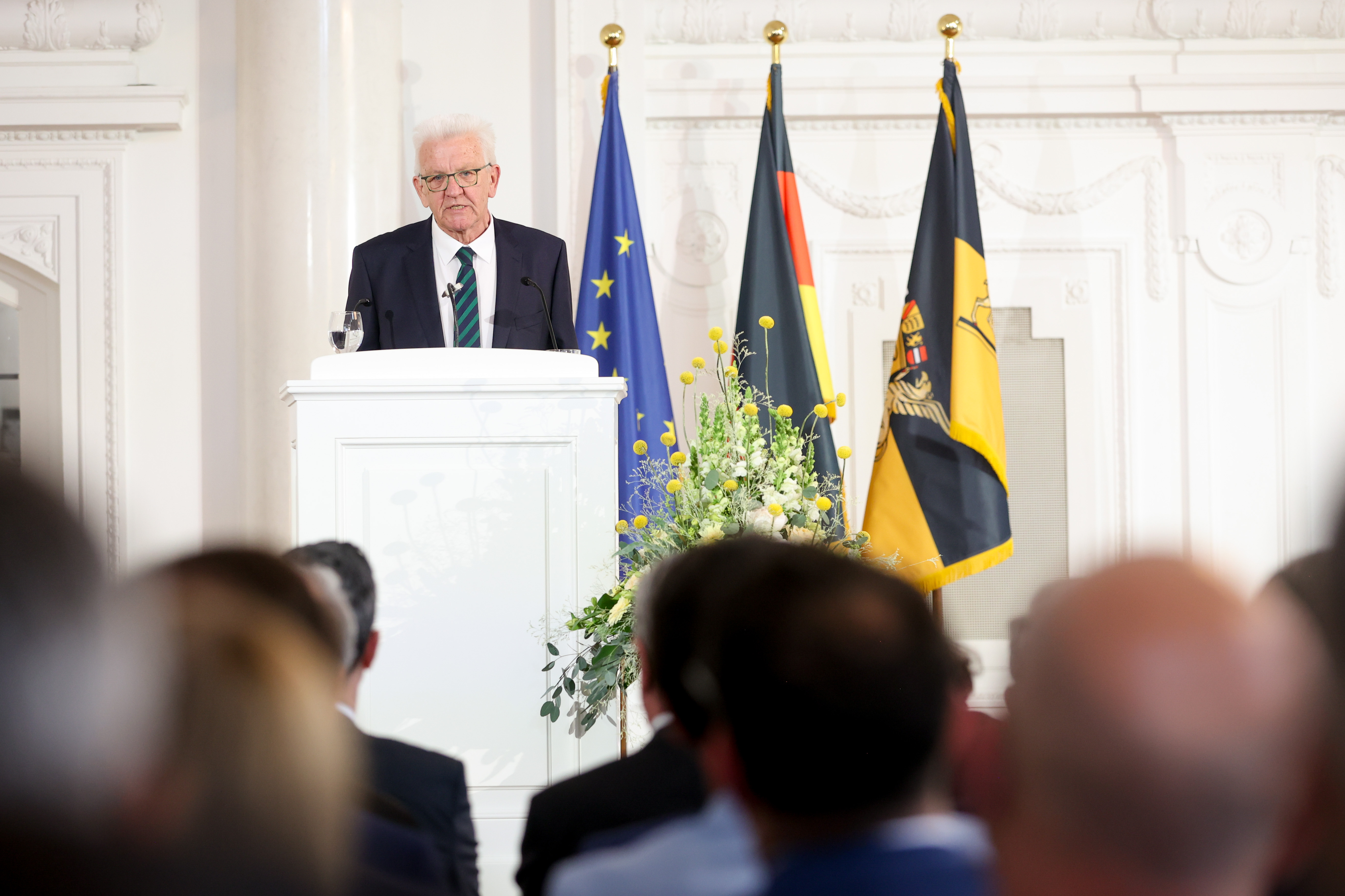 Aus Anlass des 75. Geburtstags von Ministerpräsident Winfried Kretschmann hat im Neuen Schloss in Stuttgart ein Festakt stattgefunden. Neben Mitgliedern der Landesregierung haben Landtagsabgeordnete, Vertreterinnen und Vertreter aus Justiz, Verwaltung, Wirtschaft, Wissenschaft, Kunst und Kultur sowie der Kommunen, Parteien, Kirchen, Verbände, des Sports, der Medien und Zivilgesellschaft teilgenommen.