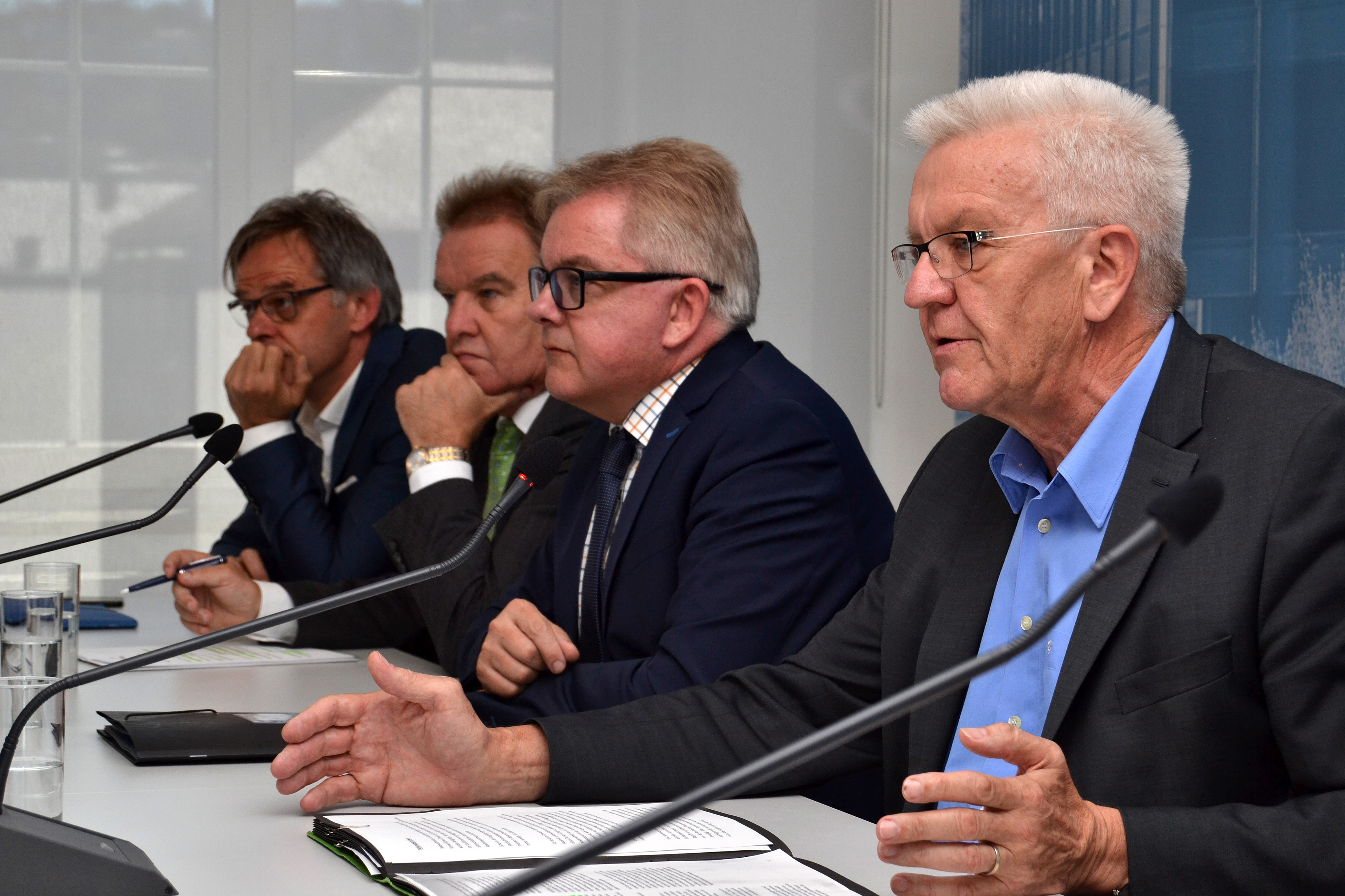 Ministerpräsident Winfried Kretschmann, Umweltminister Franz und Untersteller und Justizminister Guido Wolf haben in der Regierungspressekonferenz in Stuttgart über das geplante UNESCO-Biosphärenreservat Schwarzwald sowie die Bewährungs- und Gerichtshilfe berichtet und Fragen der Journalisten beantwortet.