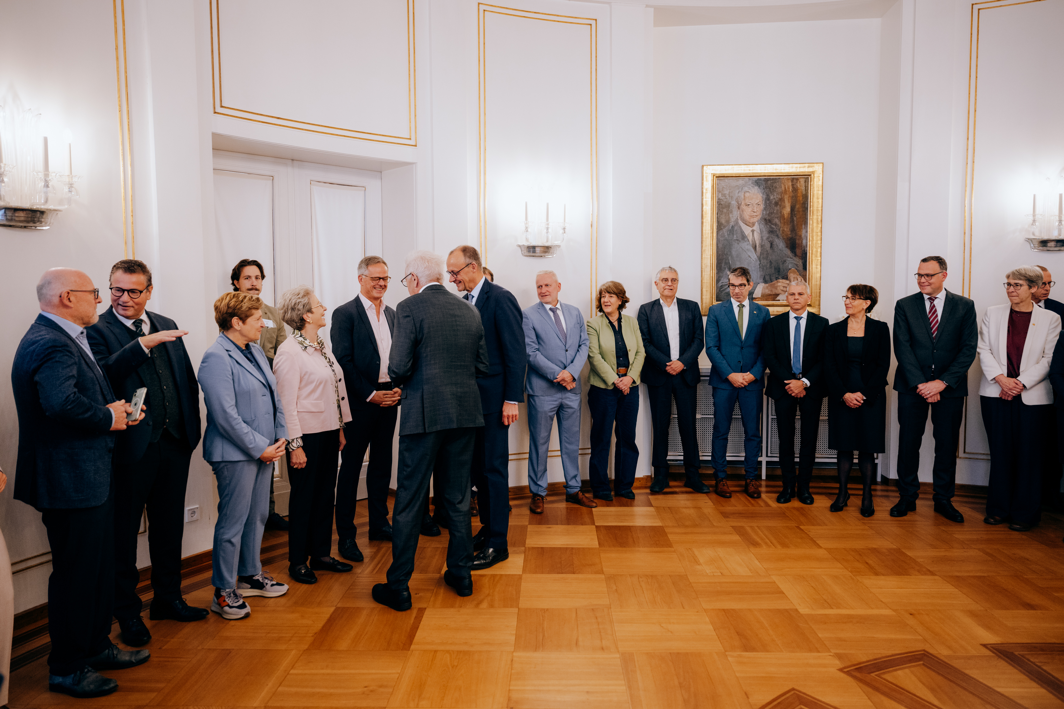 Bundeskanzler Friedrich Merz ist im Rahmen eines Antrittsbesuchs am Dienstag, 21. Oktober 2025, nach Baden-Württemberg gekommen. Ministerpräsident Winfried Kretschmann begrüßte ihn in der Villa Reitzenstein in Stuttgart, wo er zusammen mit dem Staatsminister für Bund-Länder-Zusammenarbeit, Dr. Michael Meister, eine Kabinettssitzung besuchte. Im Anschluss begaben sich der Bundeskanzler und der Ministerpräsident zum Spatenstich für Europas größten KI-Innovationspark, dem IPAI CAMPUS in Heilbronn.