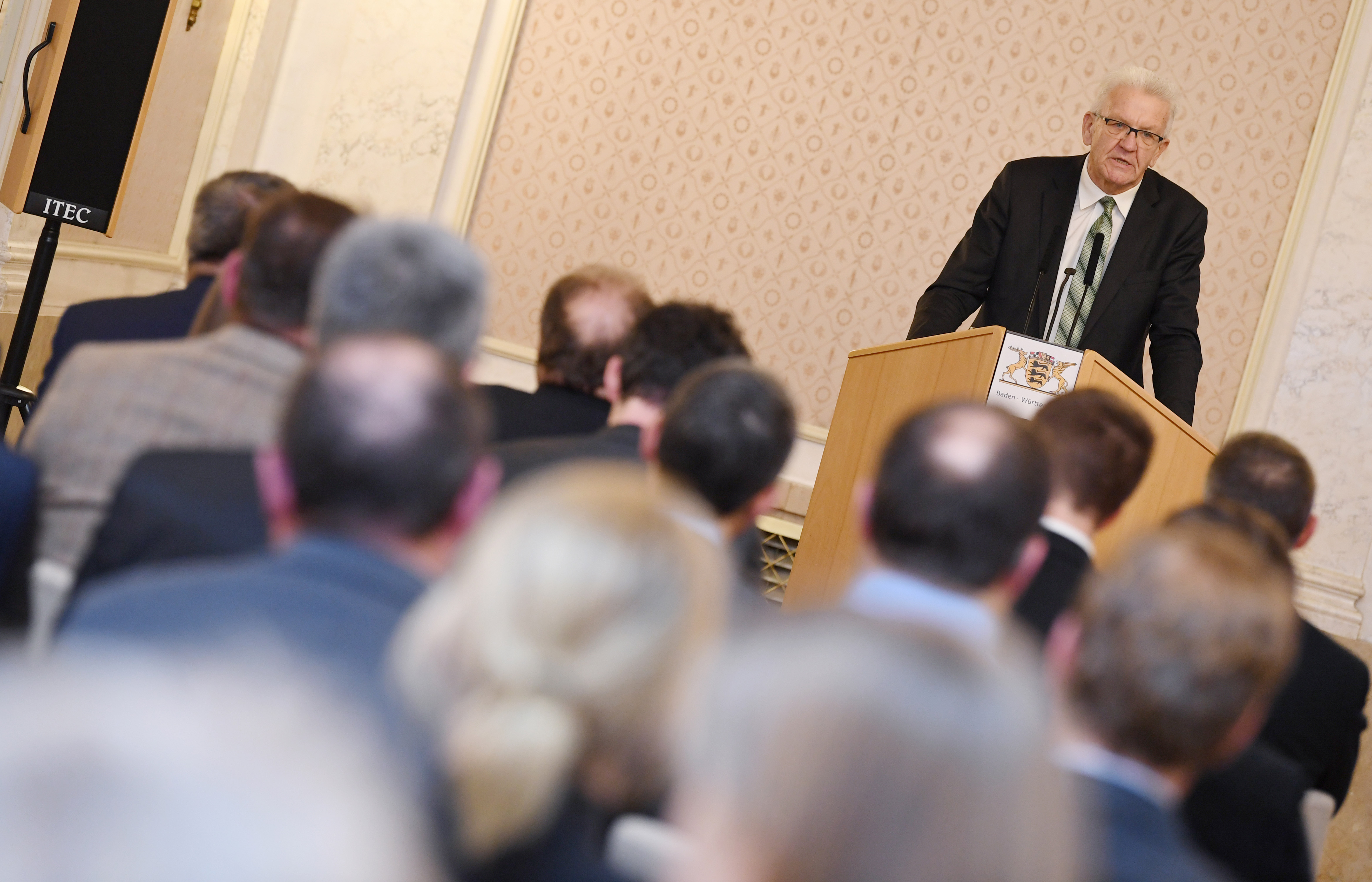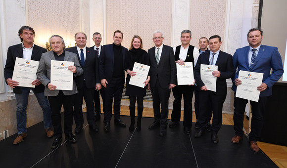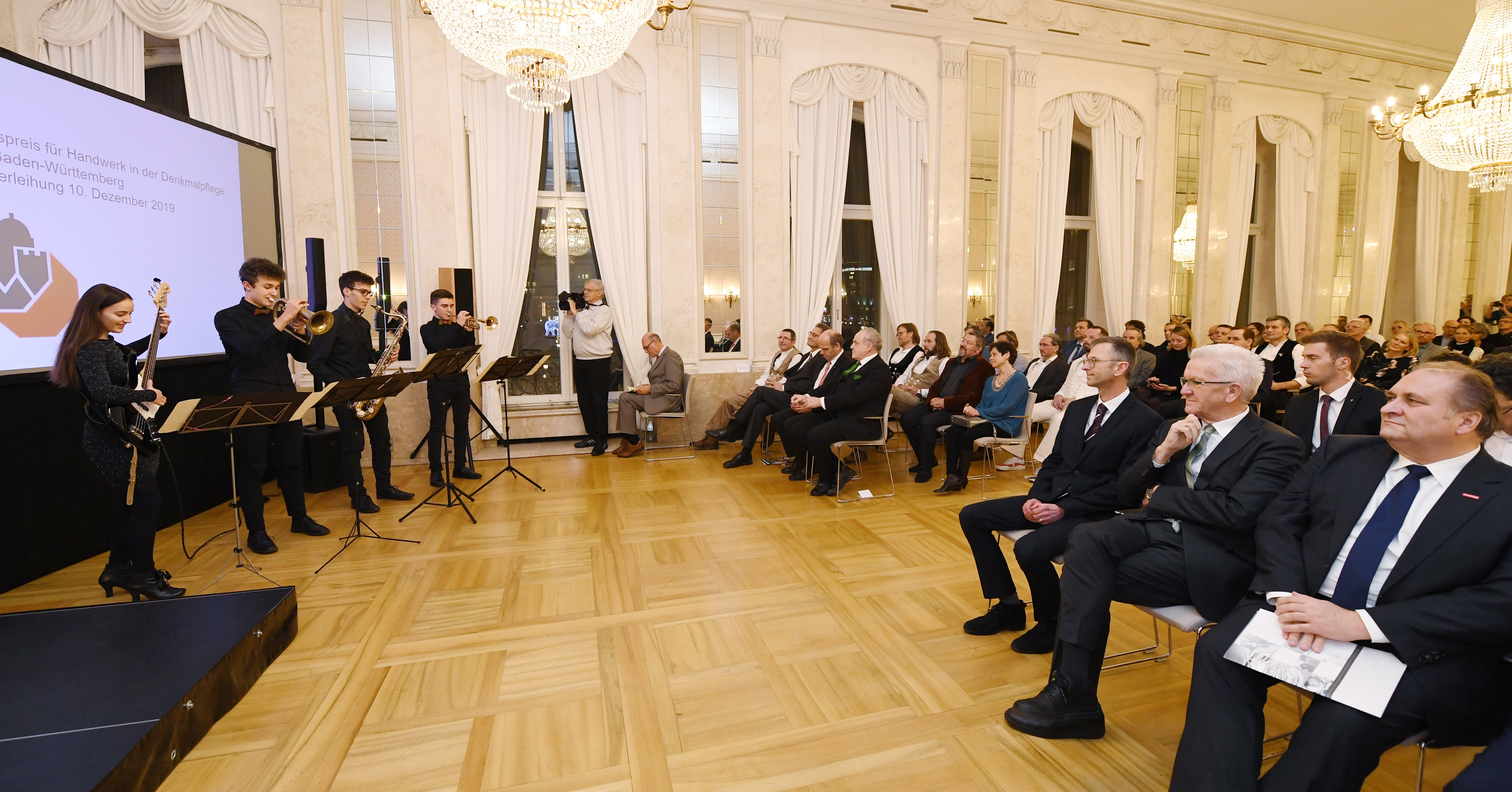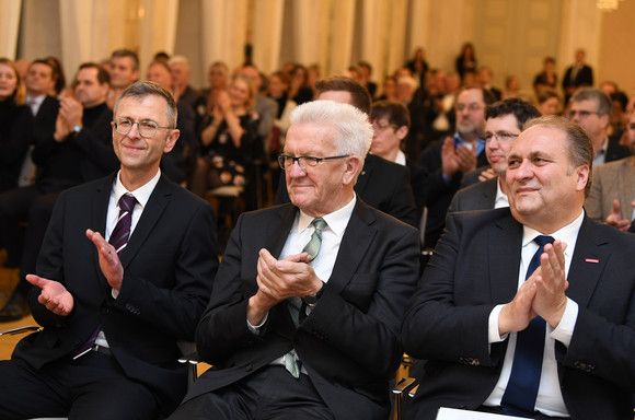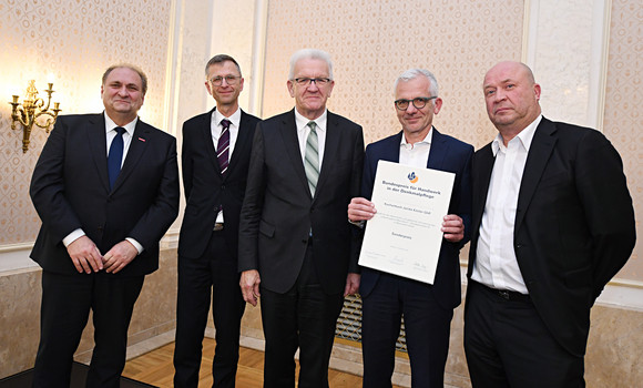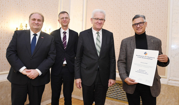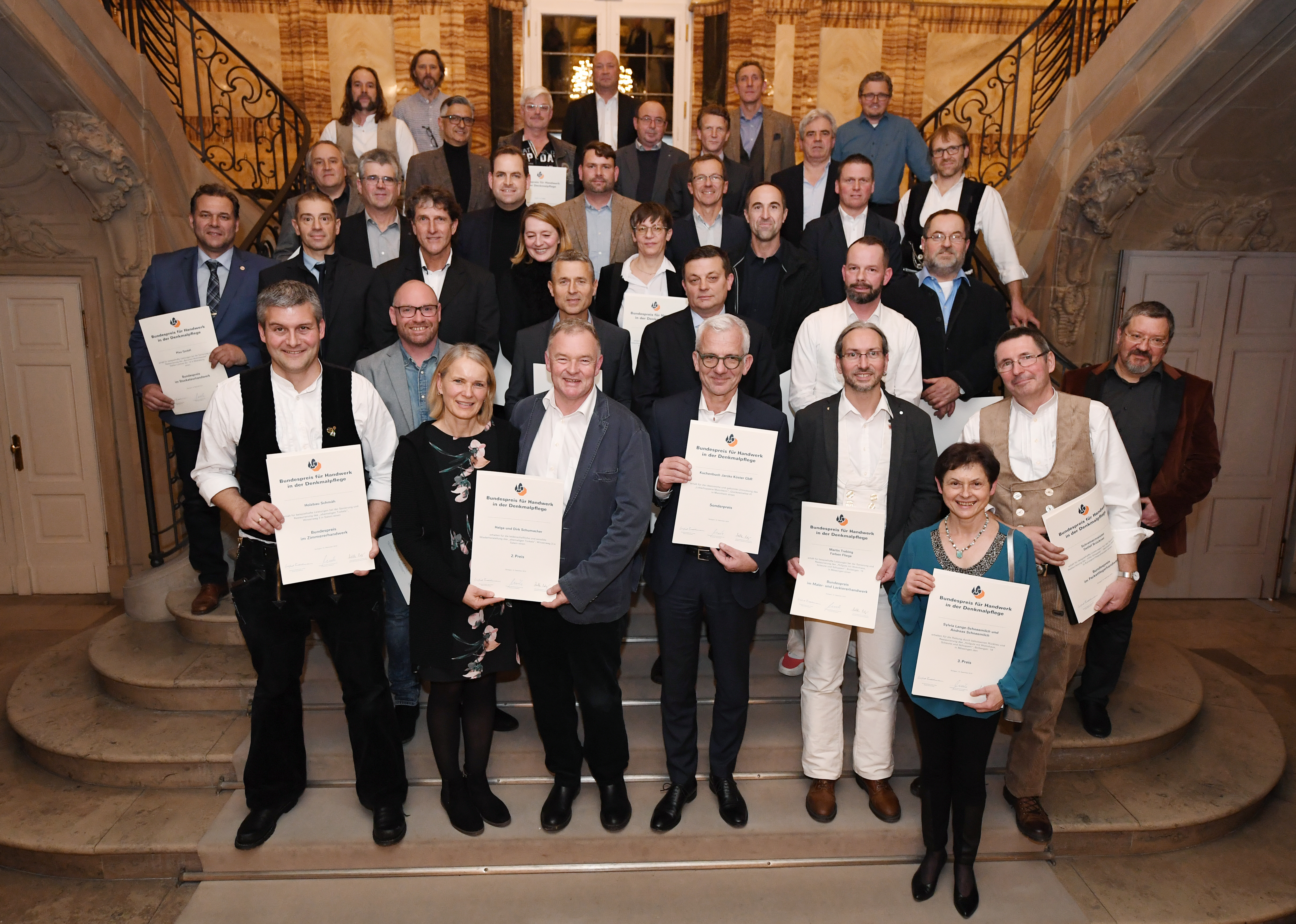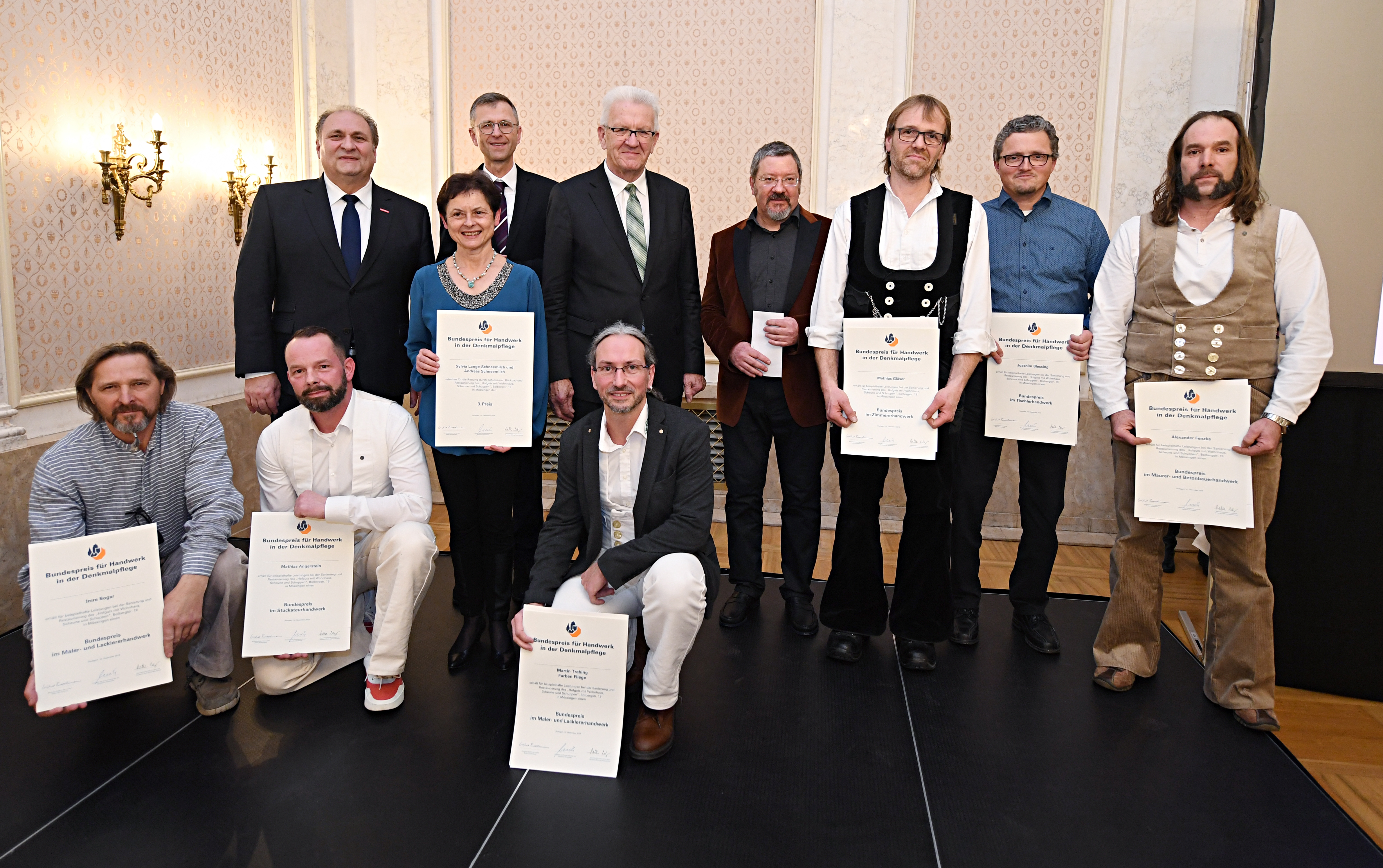 Ministerpräsident Winfried Kretschmann lud anlässlich der Verleihung des Bundespreises für Handwerk in der Denkmalpflege ins Neue Schloss in Stuttgart. Der Preis wird seit 1993 für beispielhafte Leistungen in der Baudenkmalpflege verliehen.