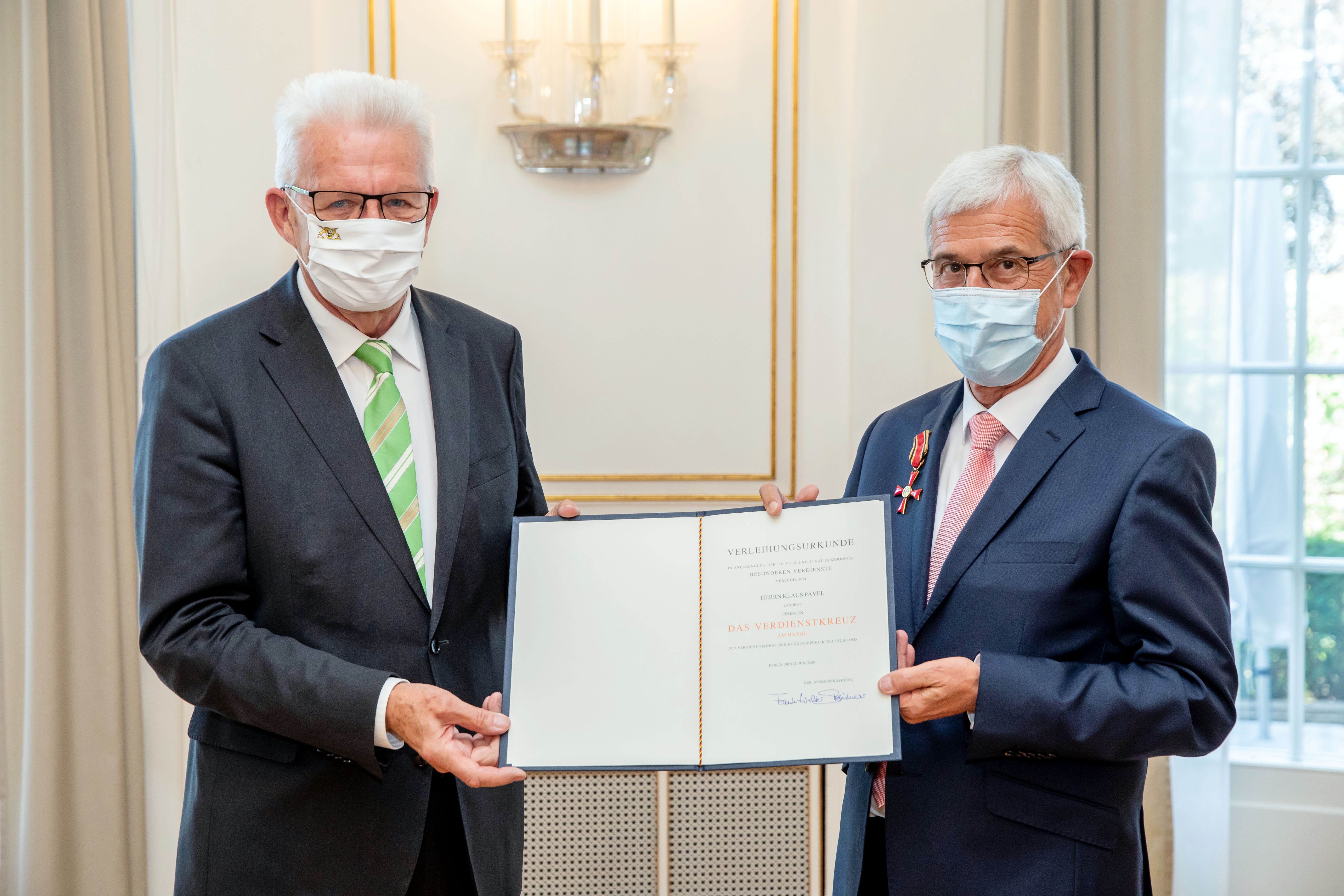 Ministerpräsident Kretschmann hat dem scheidenden Landrat des Ostalbkreises, Klaus Pavel, das Bundesverdienstkreuz überreicht und seine vielfältigen Verdienste gewürdigt.