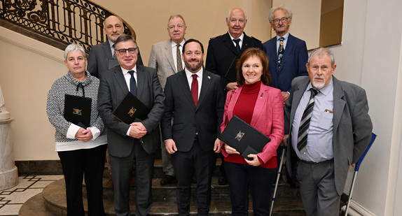 Staatsrätin Barbara Bosch hat dem Gesundheitswissenschaftler Prof. Dr. Bernd Kühlmuß das Bundesverdienstkreuz überreicht und sein vielseitiges und herausragendes Engagement gewürdigt.