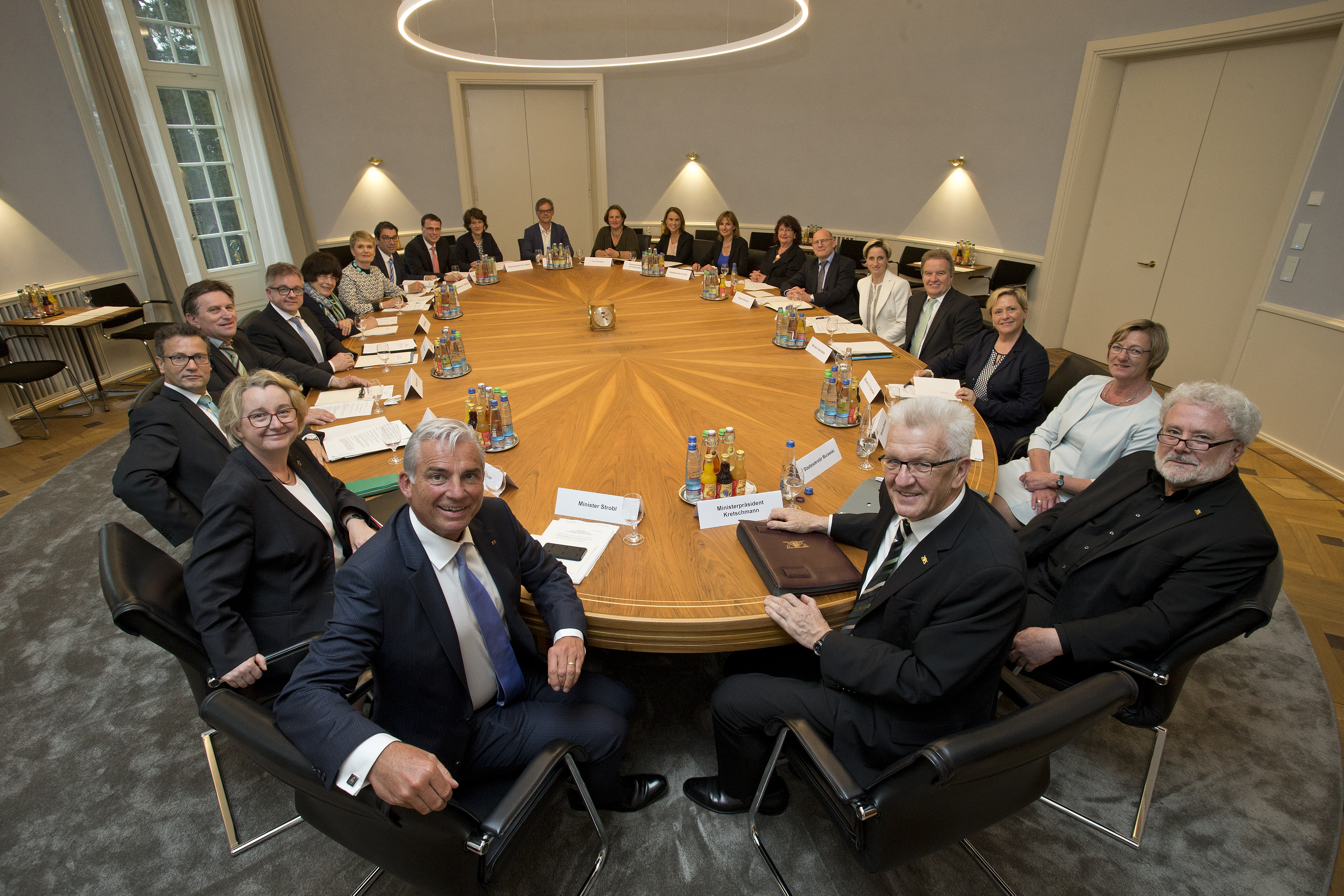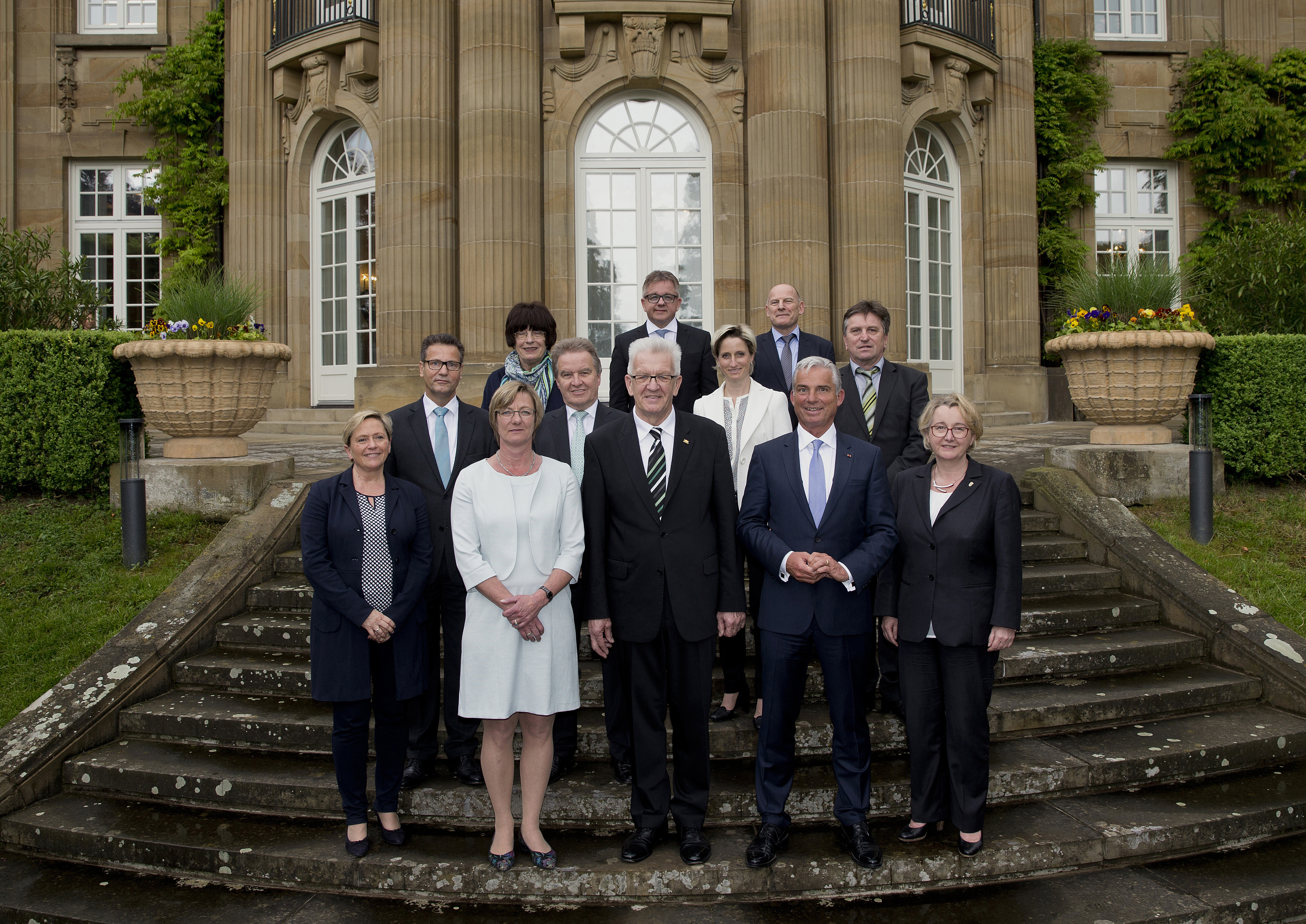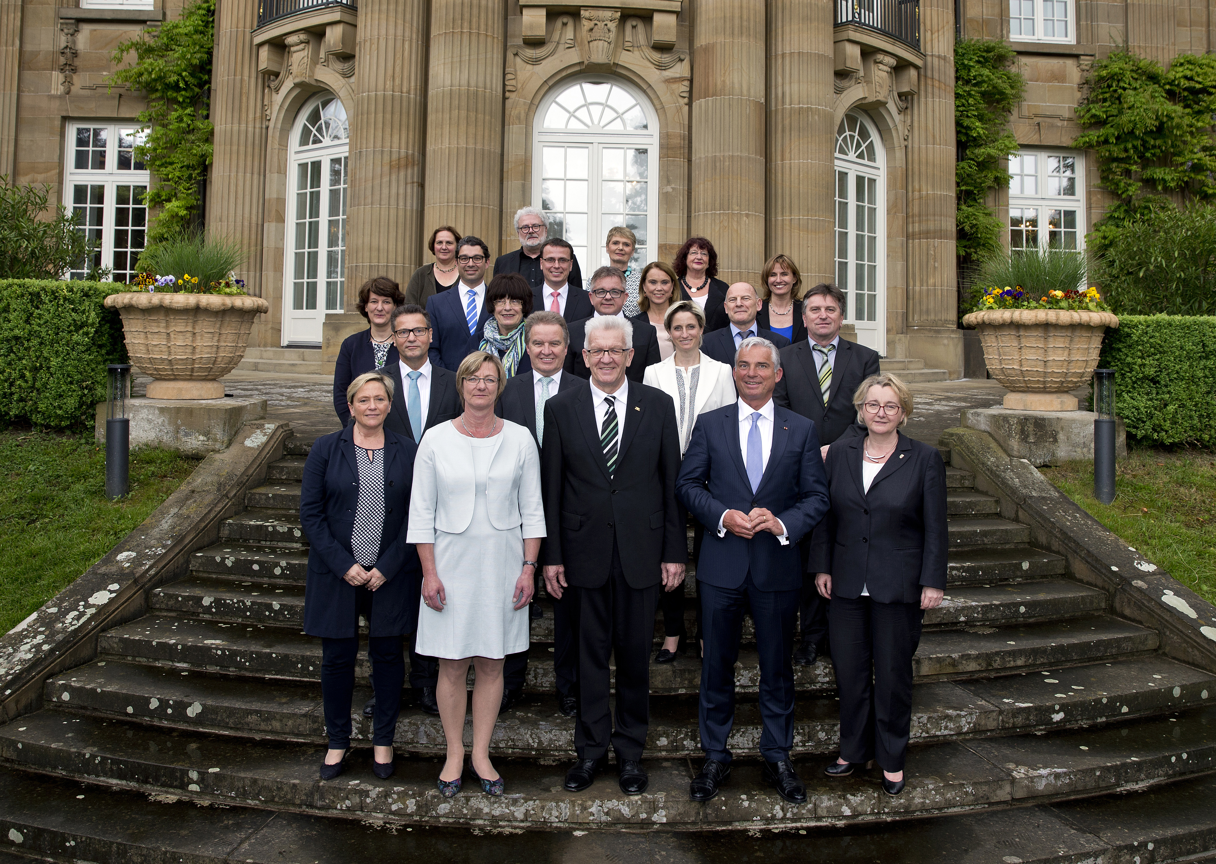 Die Landesregierung hat unter Führung von Ministerpräsident Winfried Kretschmann ihre Arbeit aufgenommen. Neben Ministerpräsident Kretschmann besteht die Landesregierung aus zehn Ministerinnen und Ministern sowie einer Staatsrätin mit Stimmrecht in der Regierung. Sieben politische Staatssekretärinnen und Staatssekretäre sowie ein Staatsminister unterstützen die Landesregierung in ihrer Arbeit.