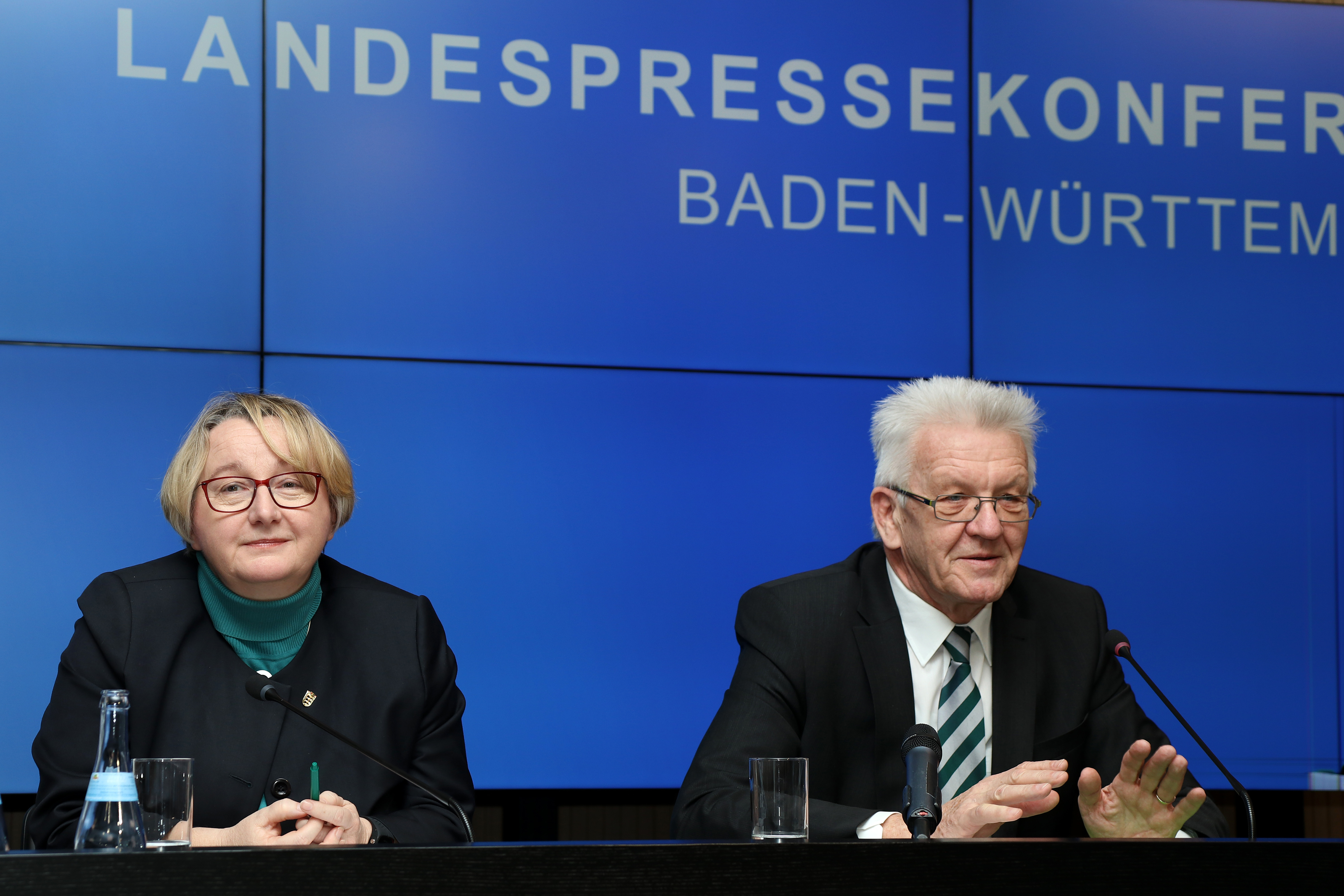 Ministerpräsident Winfried Kretschmann und Wissenschaftsministerin Theresia Bauer haben in der Regierungspressekonferenz in Stuttgart die Ideen zur Weiterentwicklung des länderübergreifenden Universitätsverbunds Eucor – The European Campus zu einer Europäischen Universität vorgestellt und Fragen der Journalisten beantwortet.