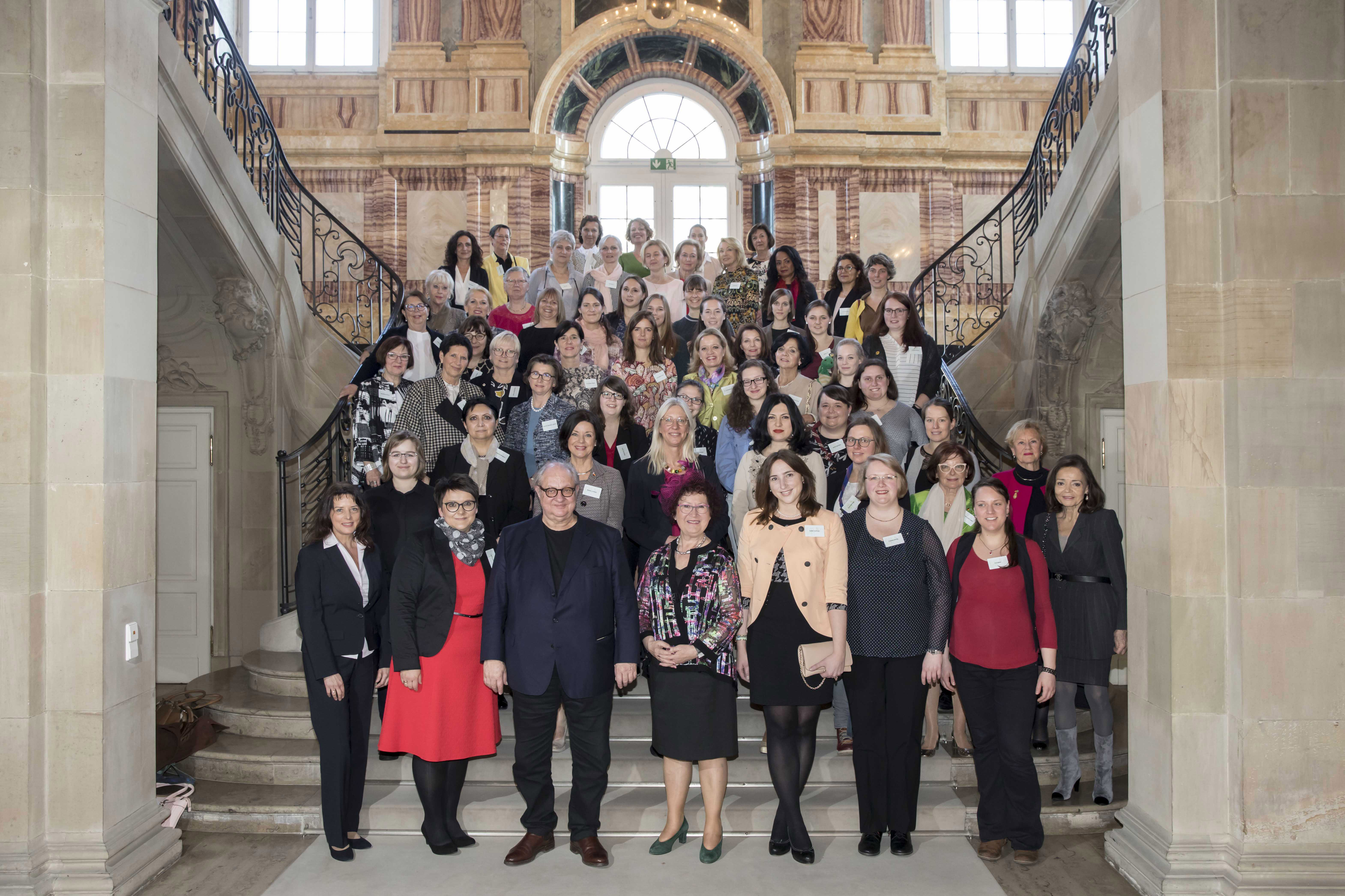 Zum traditionellen Frühjahrskaffee hat Gerlinde Kretschmann im Neuen Schloss in Stuttgart die Damen des Konsularischen Korps, Partnerinnen der Mitglieder der Landesregierung, Vertreterinnen der Landespressekonferenz und Vertreterinnen von ehrenamtlichen Projekten in der kirchlichen Jugendarbeit empfangen.