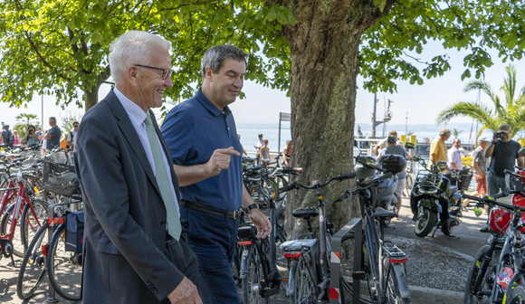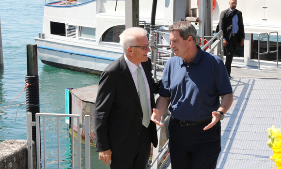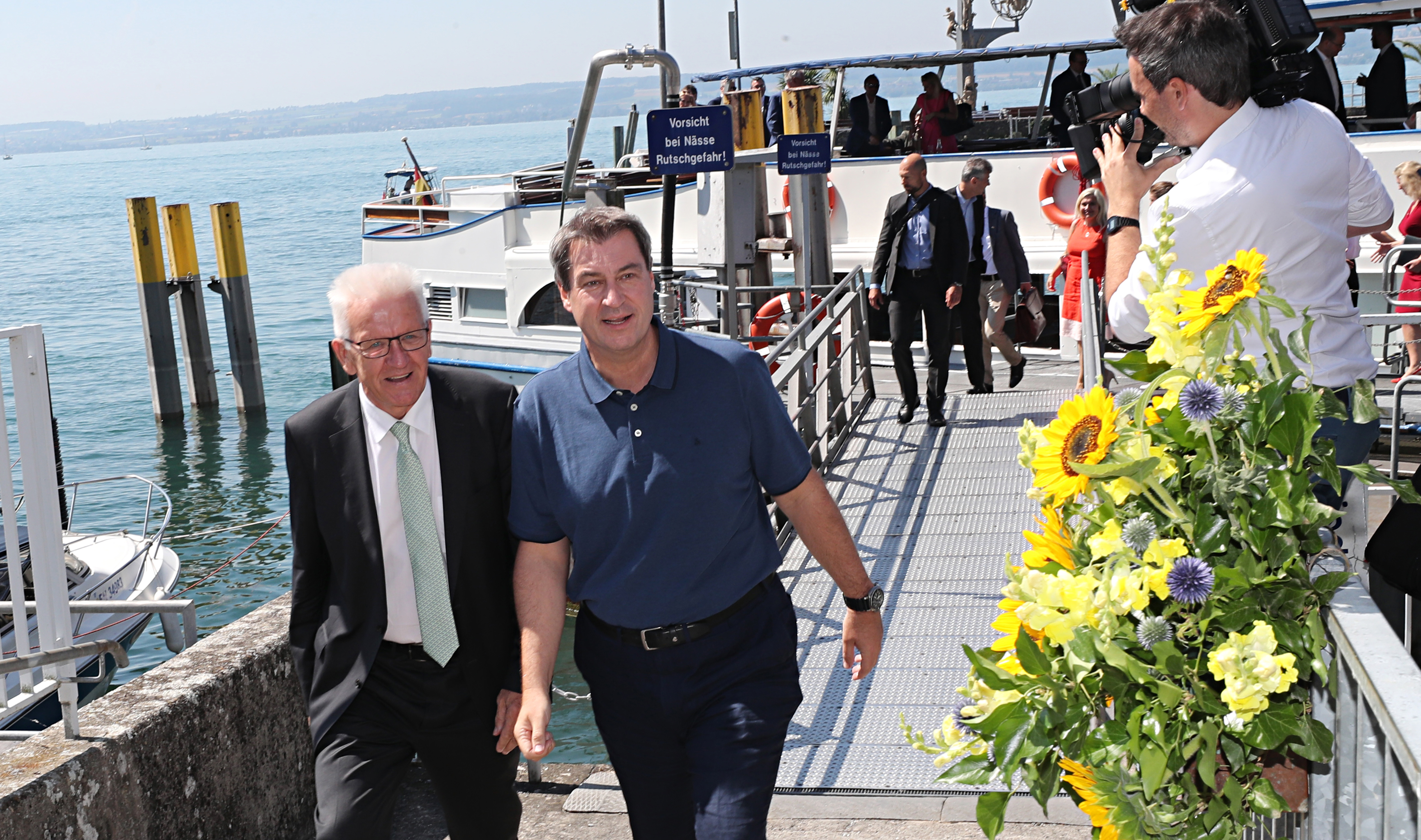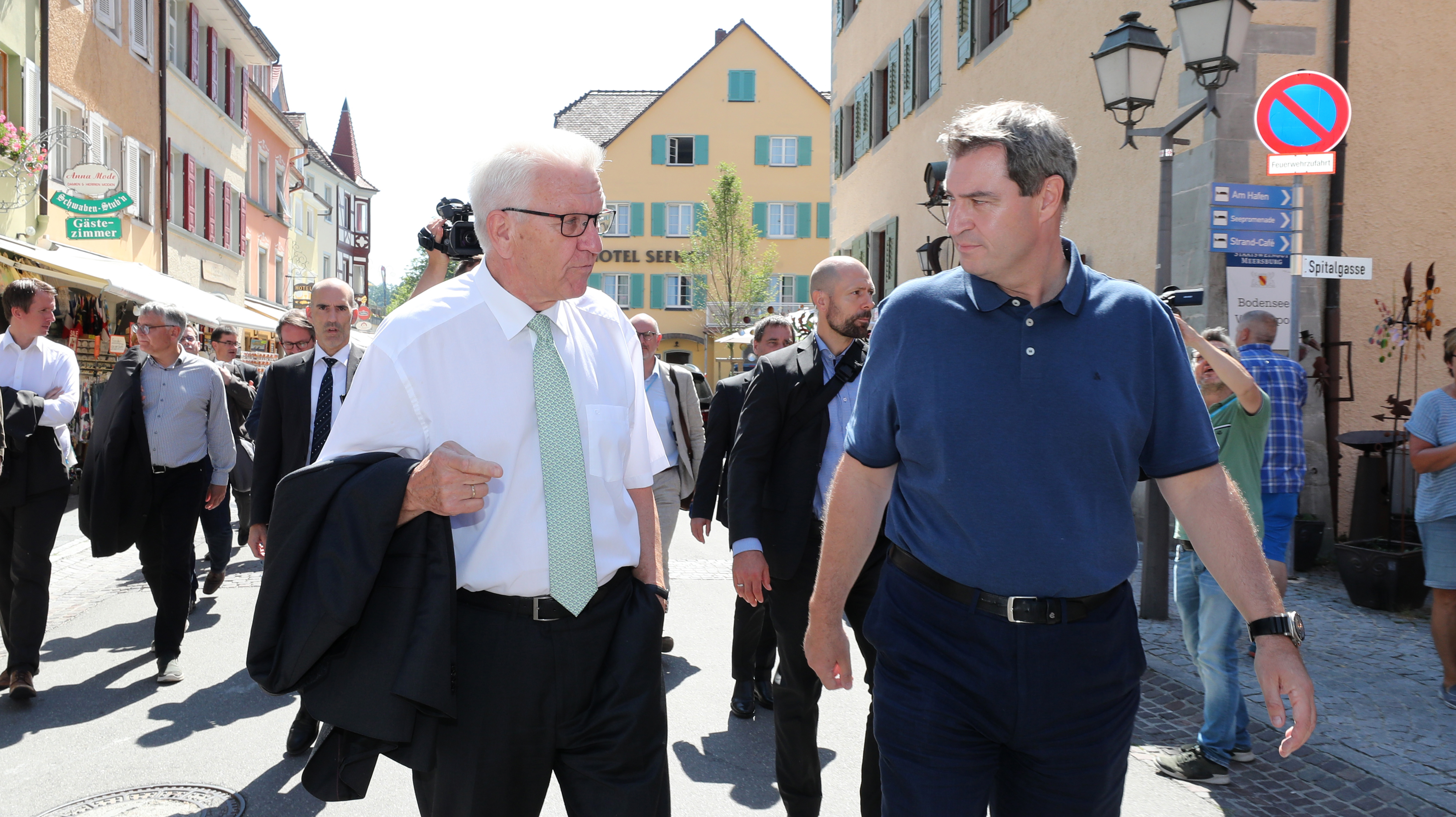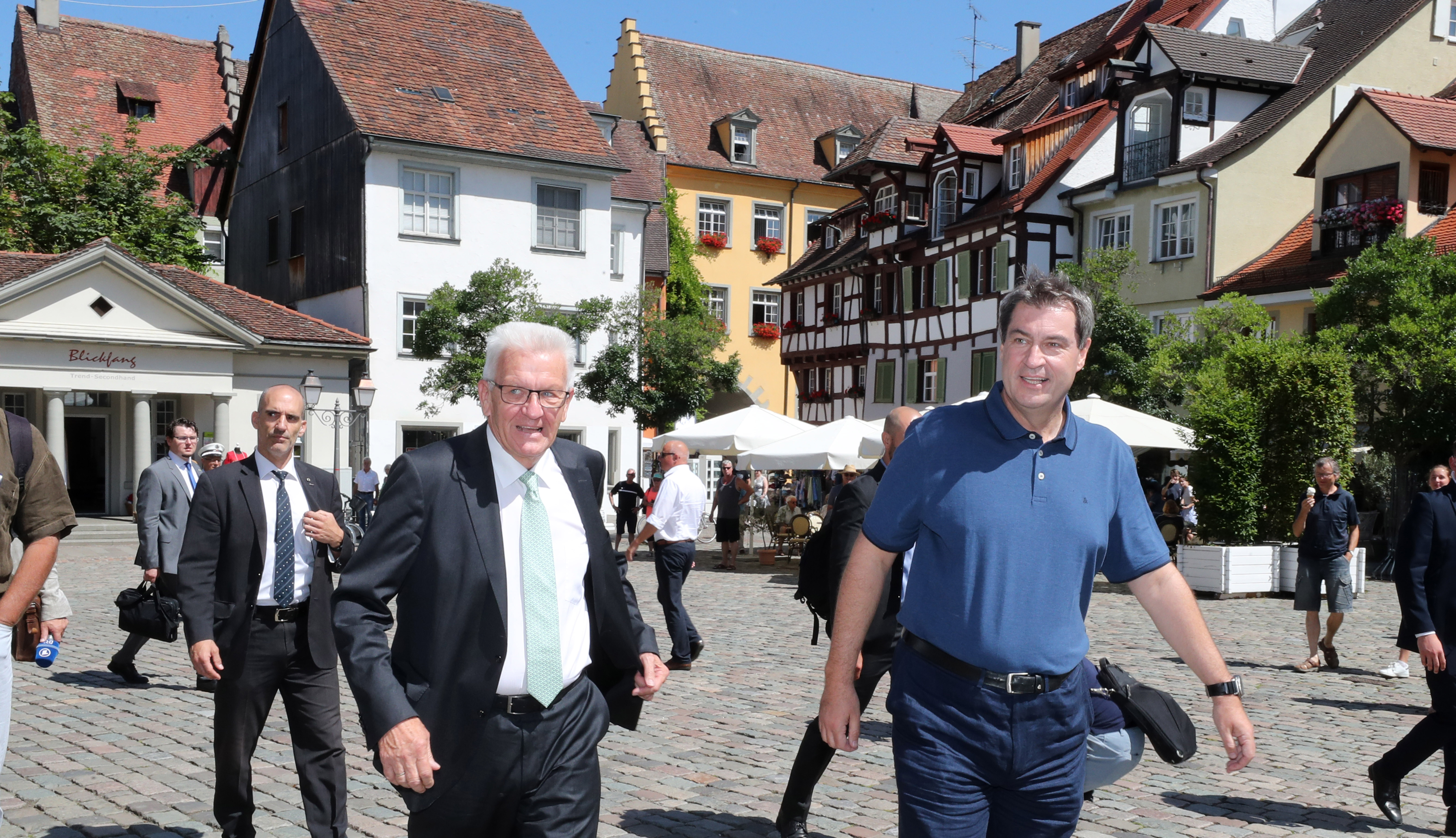 Die Regierungen von Baden-Württemberg und Bayern sind im Neuen Schloss in Meersburg zu einer gemeinsamen Kabinettssitzung zusammenkommen.