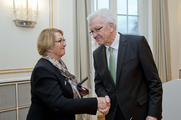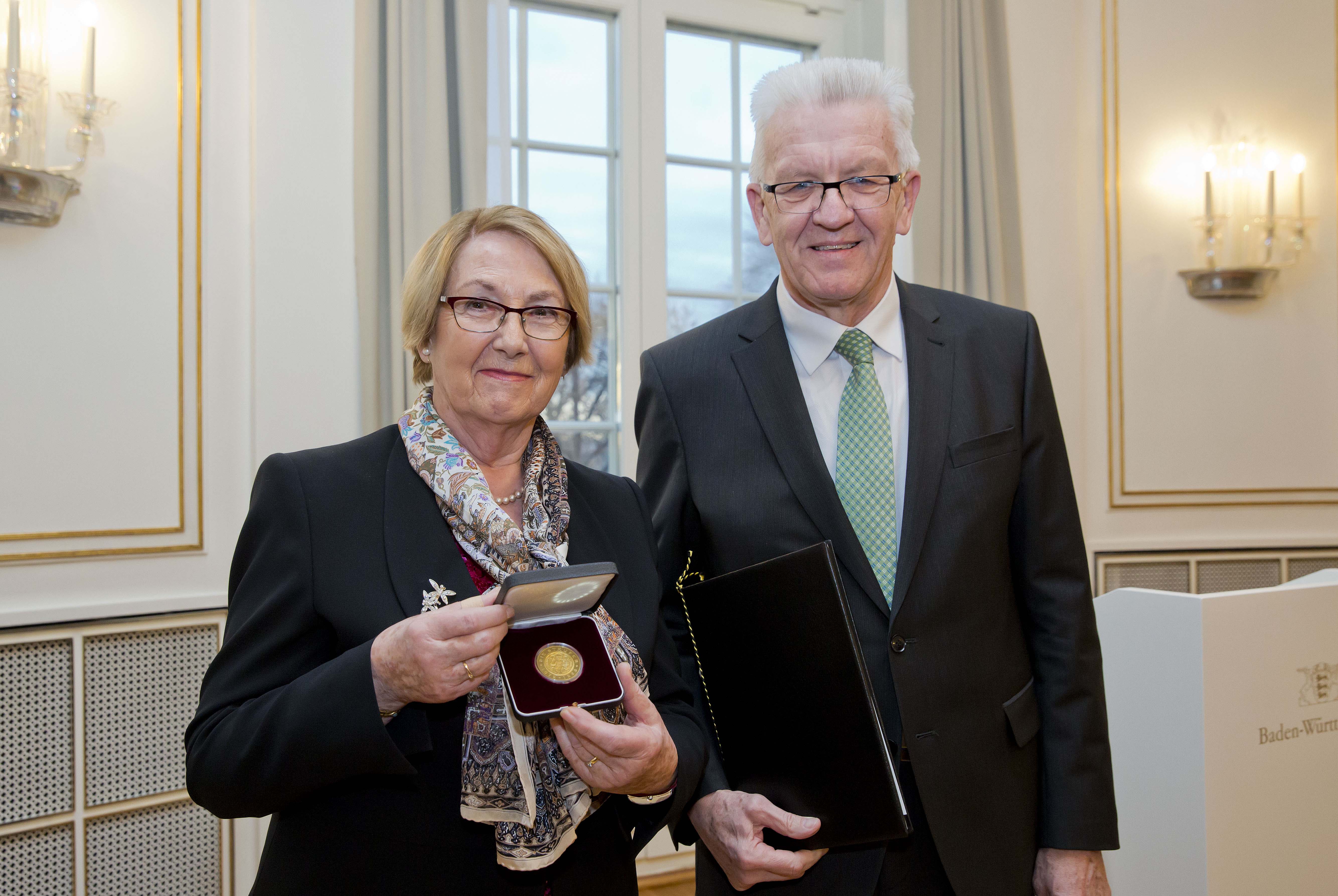 Ministerpräsident Winfried Kretschmann hat der ehemaligen Sozialministerin Barbara Schäfer-Wiegand die Große Staufermedaille in Gold des Landes Baden-Württemberg verliehen und ihren großen Einsatz für den sozialen Zusammenhalt in unserem Land gewürdigt.