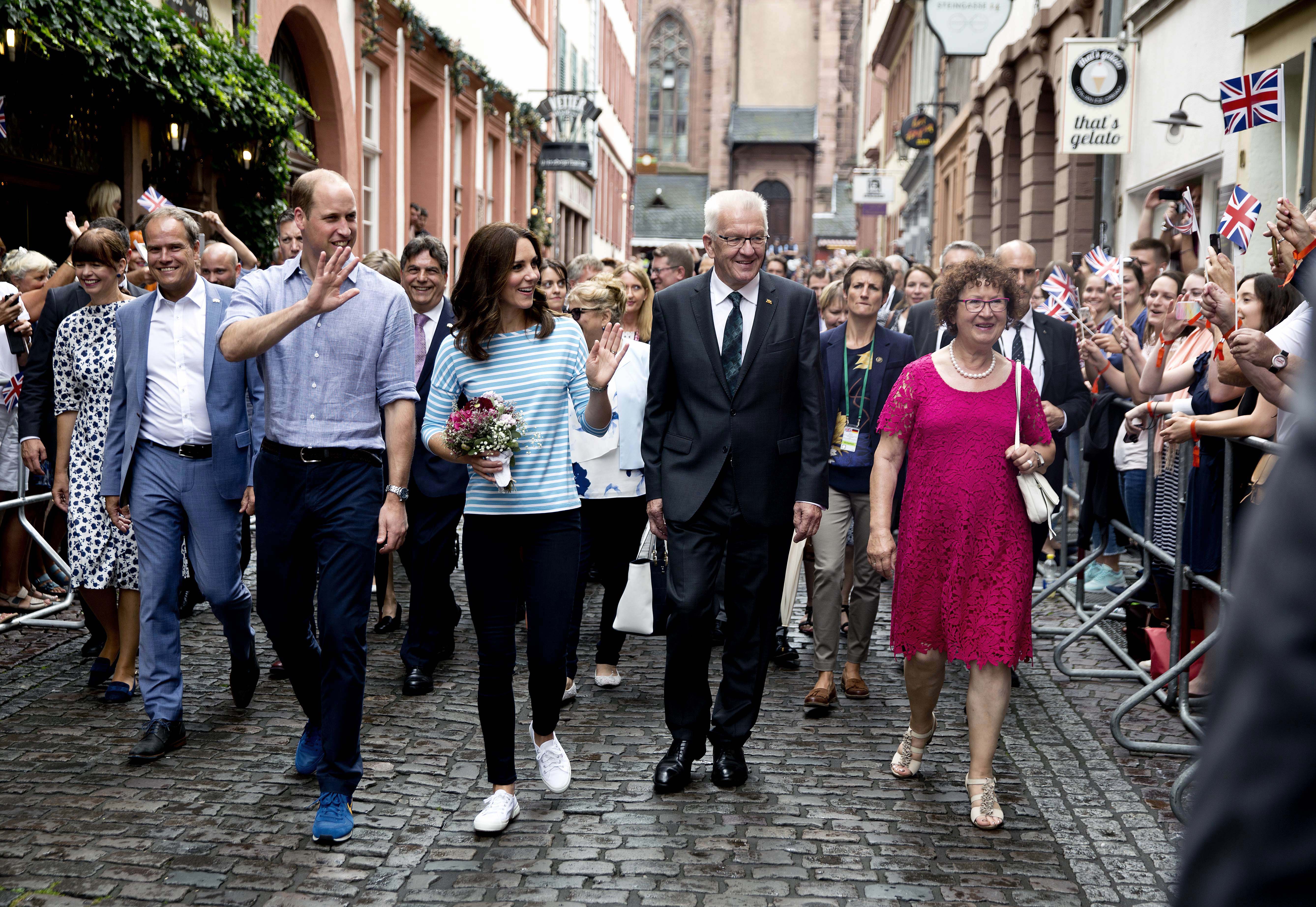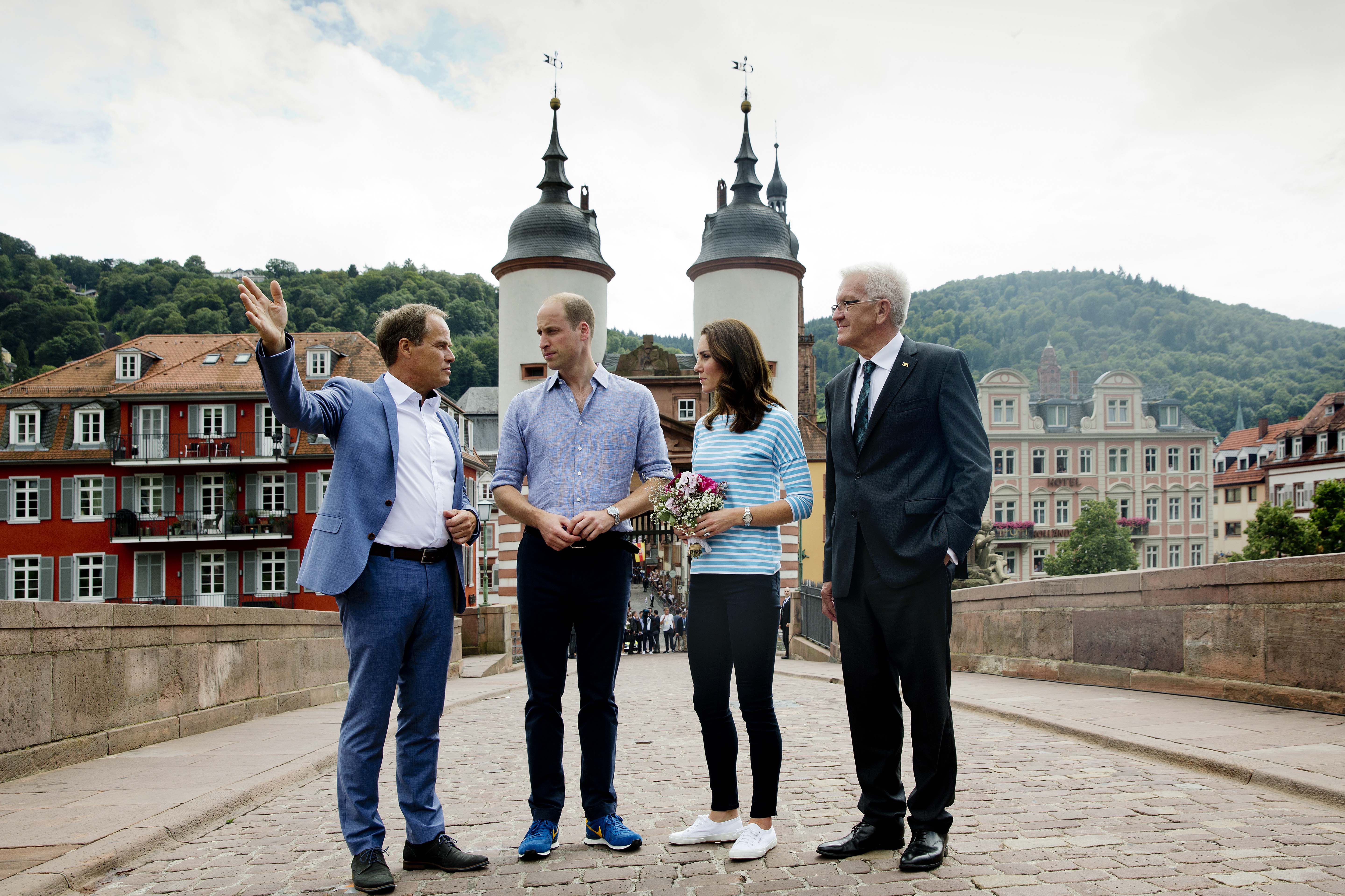 Prinz William und Catherine, Herzog und Herzogin von Cambridge, haben Heidelberg besucht. Ministerpräsident Winfried Kretschmann und seine Ehefrau Gerlinde begleiteten das Herzogpaar im Deutschen Krebsforschungszentrum, zum Marktplatz und auf dem Spaziergang zur Alten Brücke.
