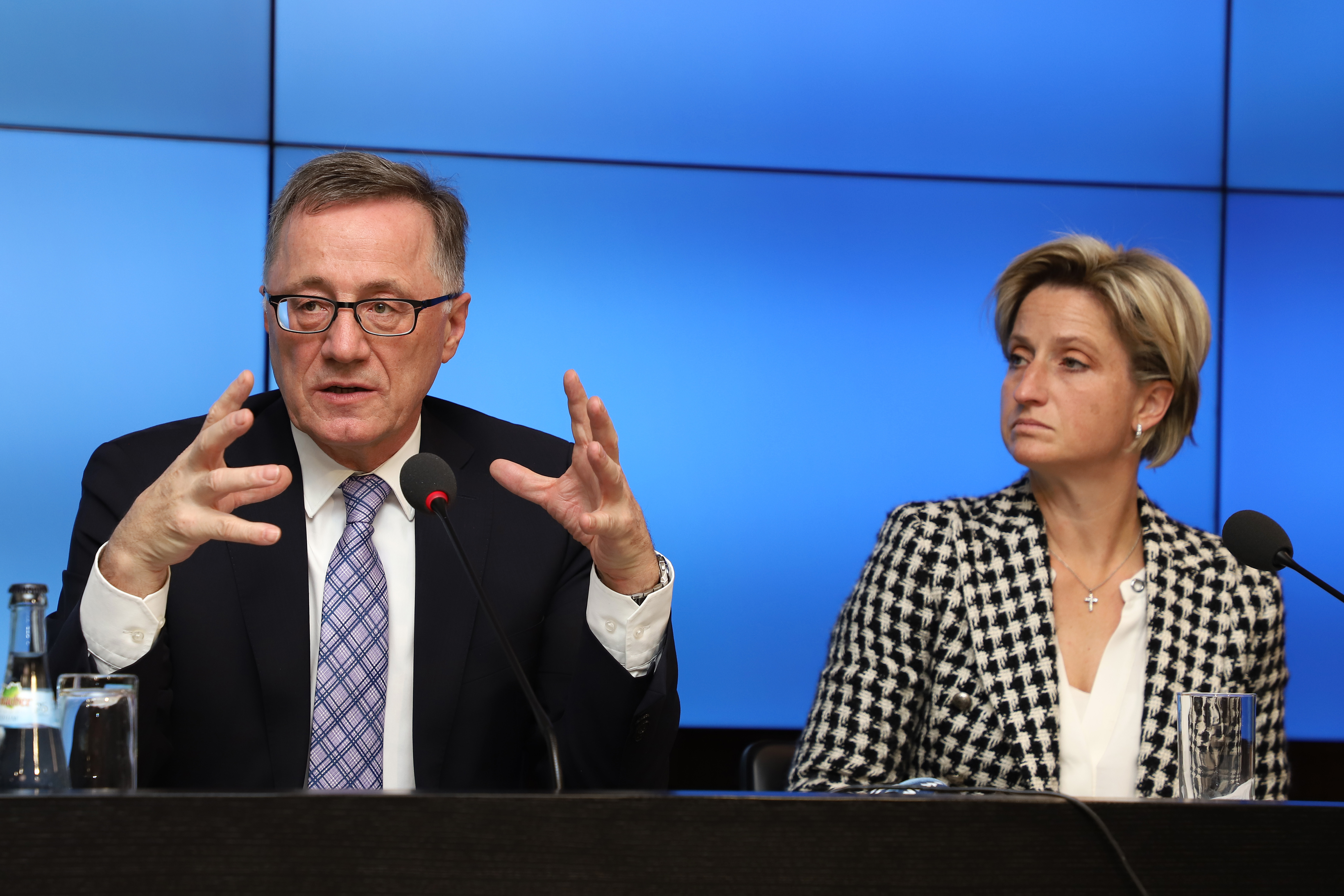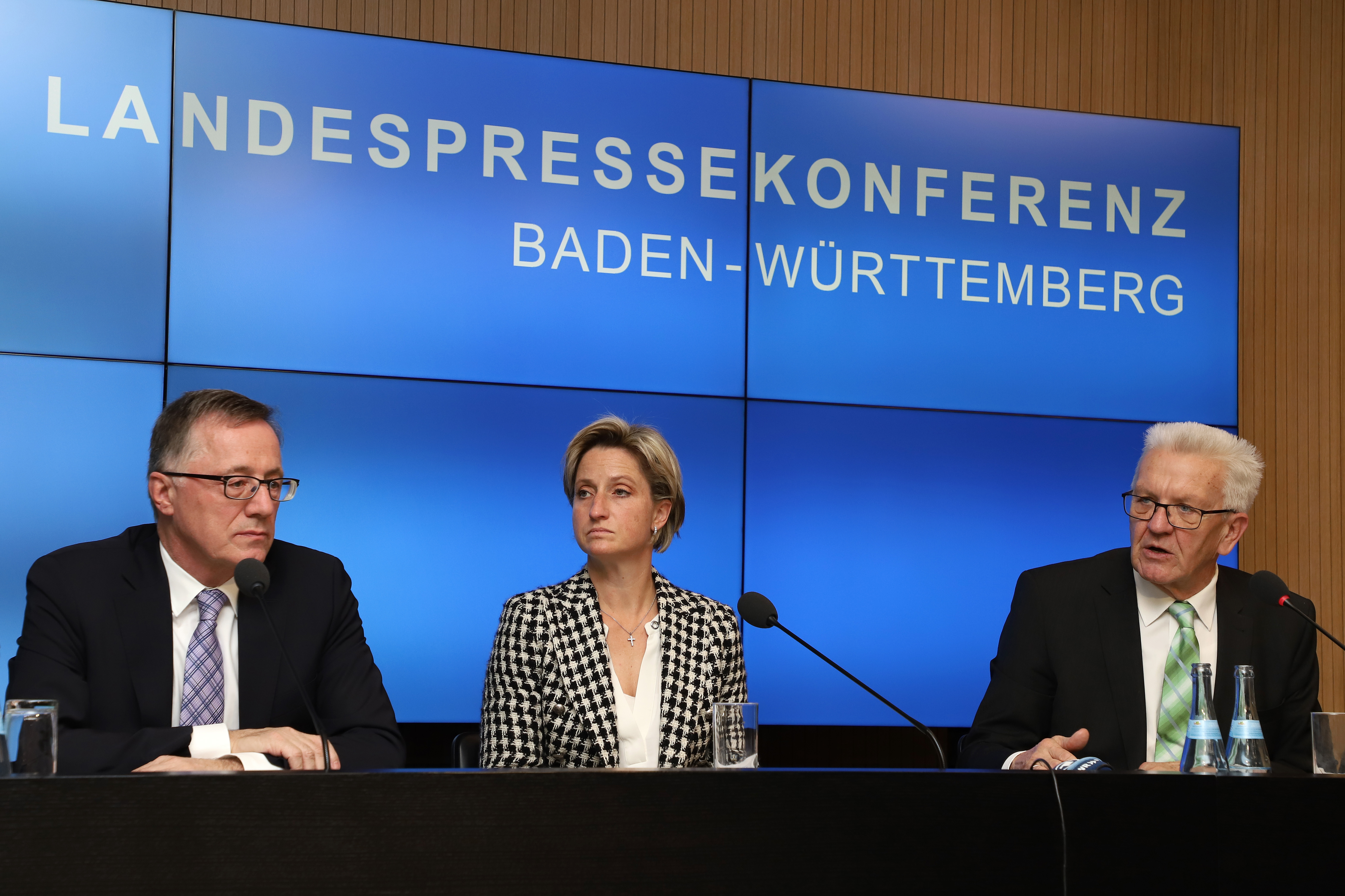 Ministerpräsident Winfried Kretschmann, Wirtschaftsministerin Dr. Nicole Hoffmeister-Kraut und der Technologiebeauftragte der Landesregierung, Prof. Dr. Wilhelm Bauer, haben in der Regierungspressekonferenz das Impulspapier zur künftigen Innovationspolitik des Landes vorgestellt und Fragen der Journalisten beantwortet.