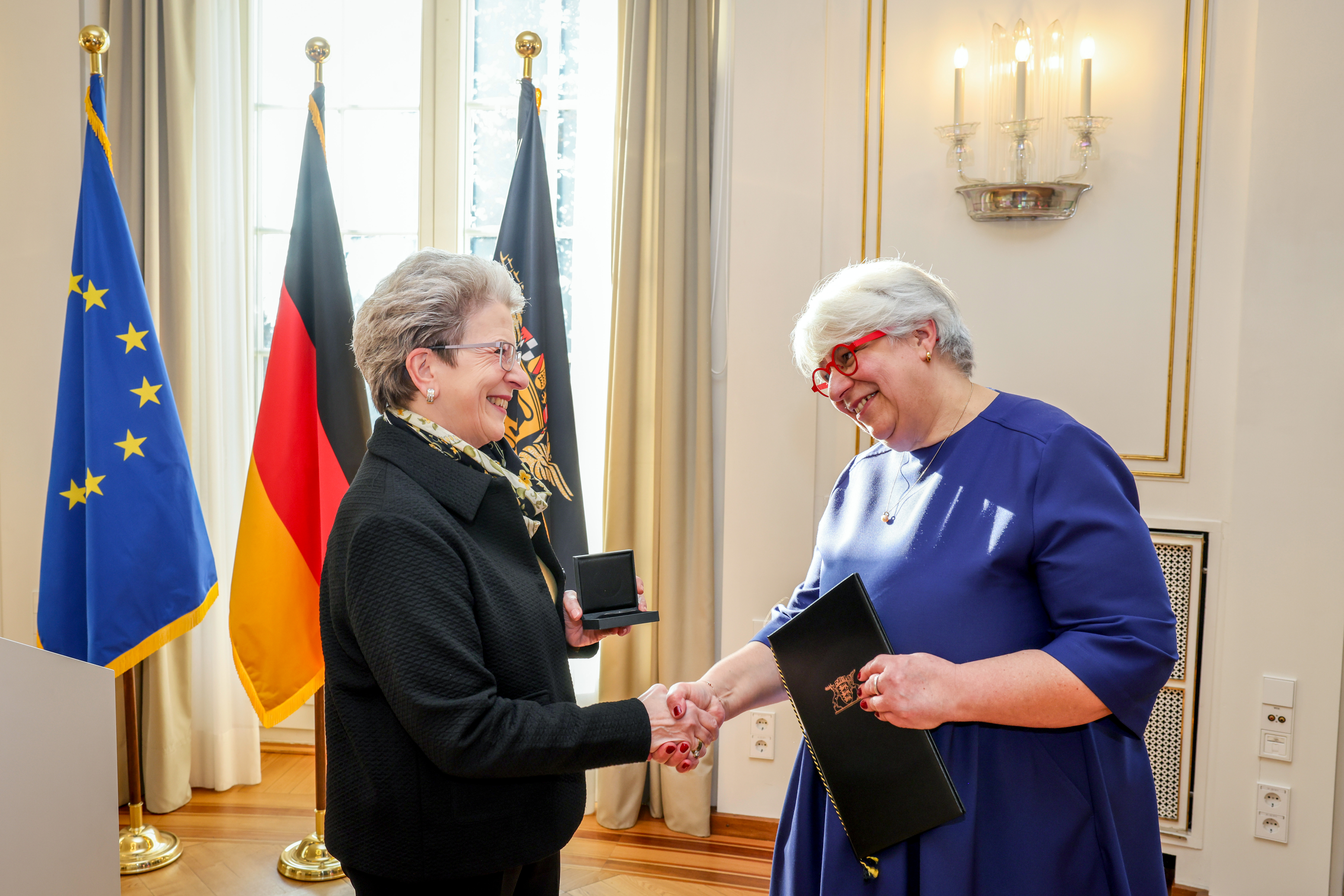 Die Staatsrätin für Zivilgesellschaft und Bürgerbeteiligung, Barbara Bosch, hat Irene Armbruster die Staufermedaille überreicht, eine besondere und persönliche Ehrung des Ministerpräsidenten für Verdienste um das Land Baden-Württemberg.
