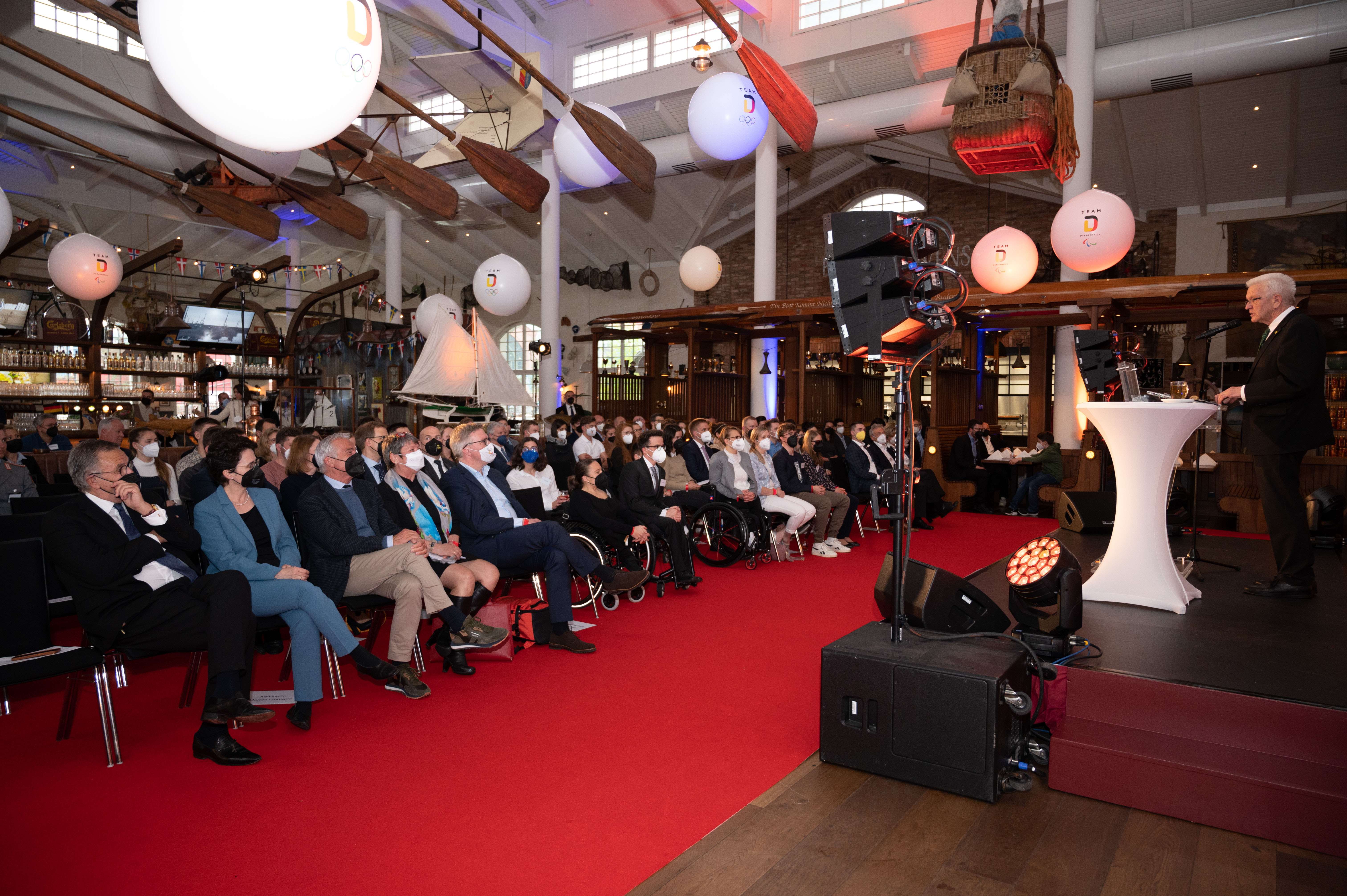 Ministerpräsident Winfried Kretschmann hat im Europa-Park in Rust die baden-württembergischen Athletinnen und Athleten der Olympischen und Paralympischen Sommerspiele 2020 in Tokio und Winterspiele 2022 in Peking empfangen.