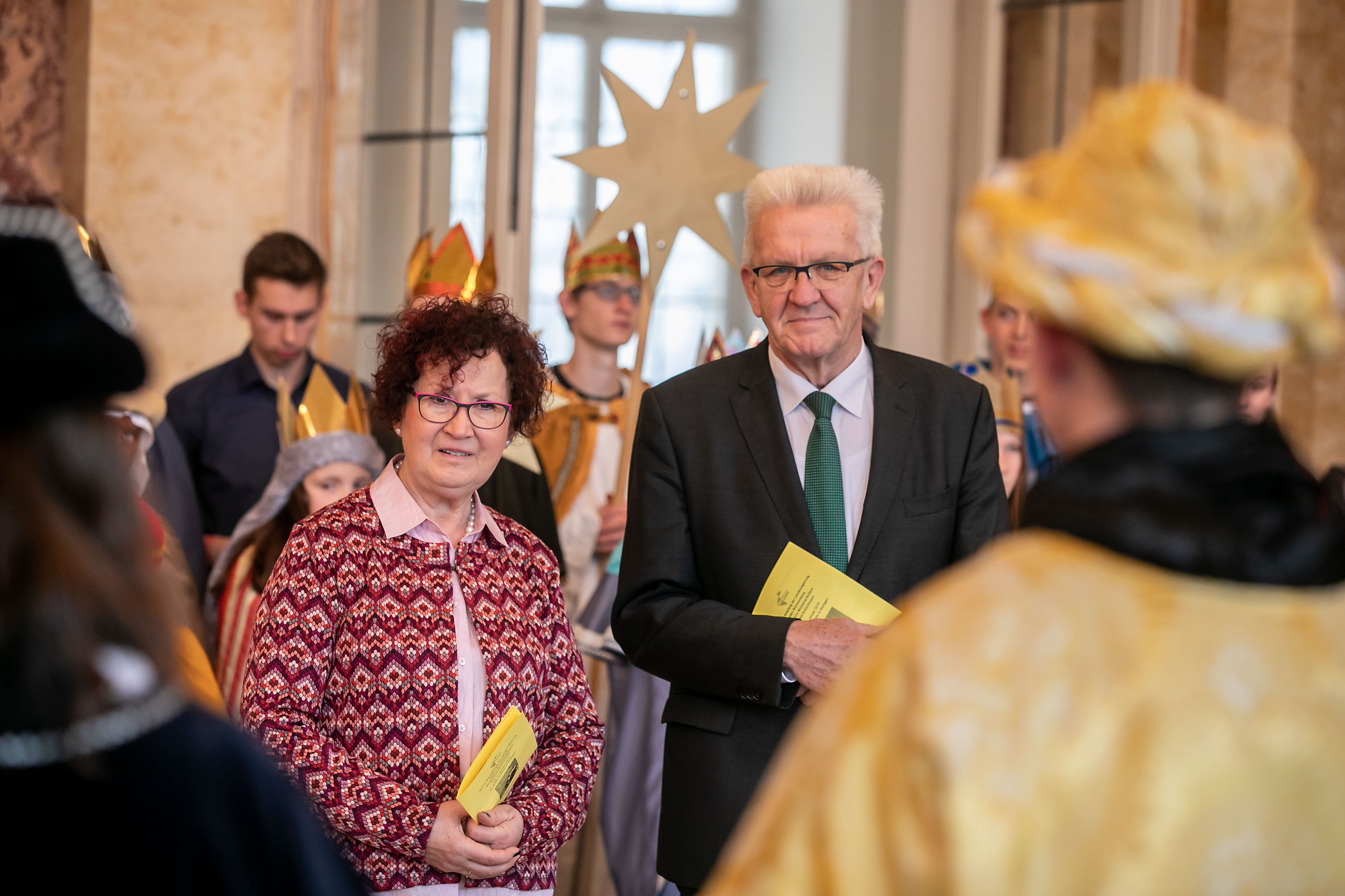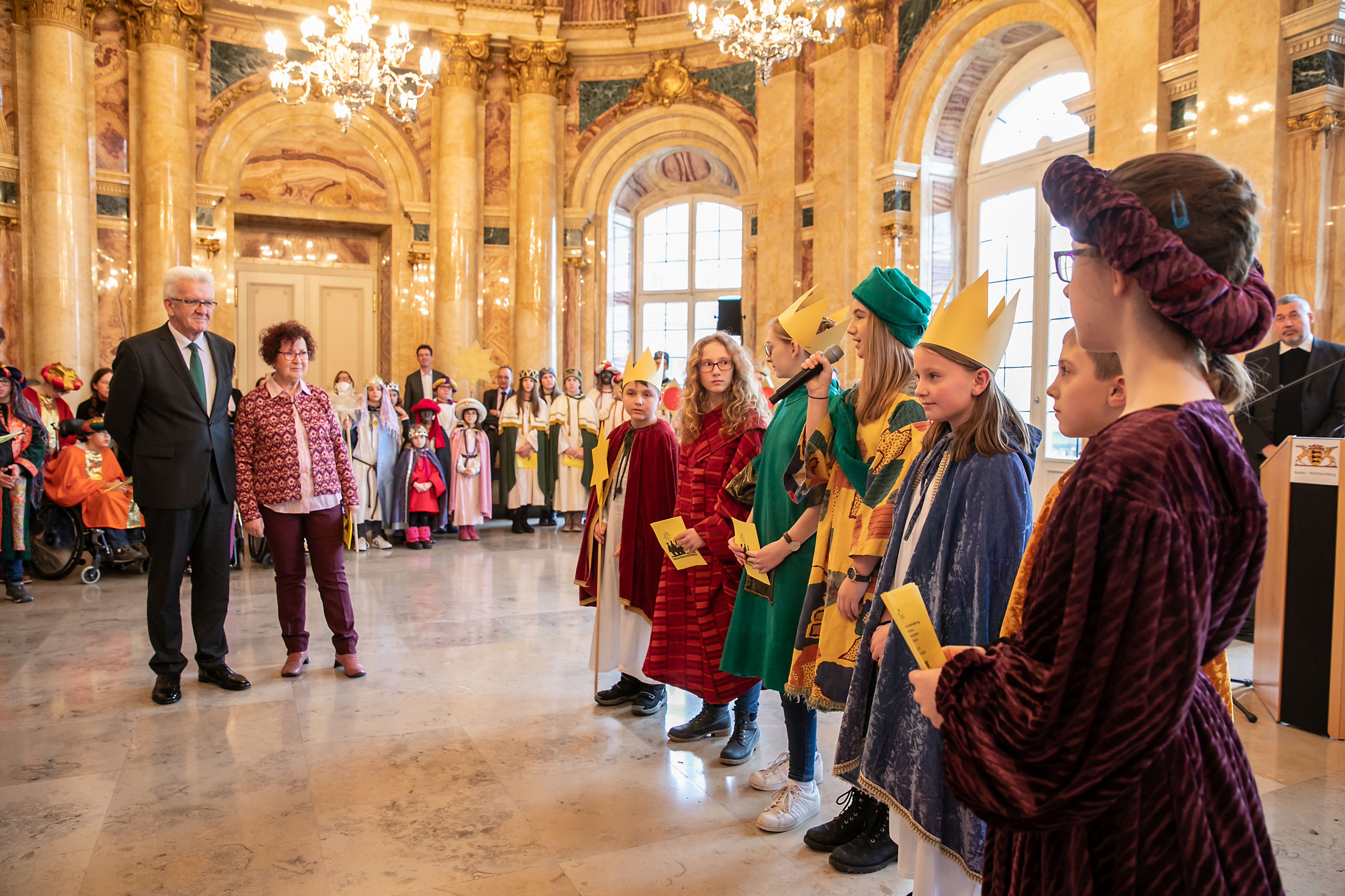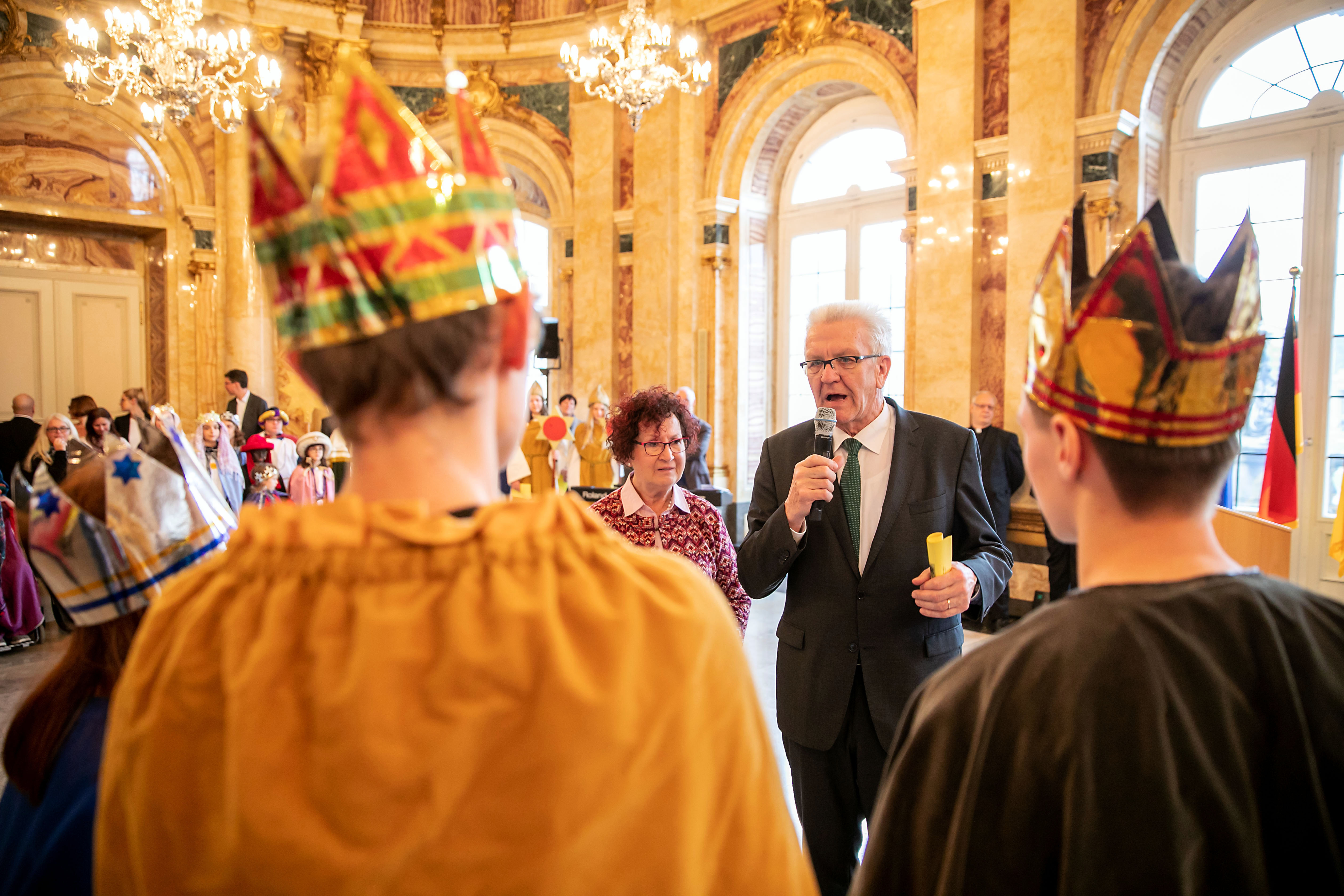Ministerpräsident Winfried Kretschmann (r.) und seine Frau Gerlinde (l.) beim Sternsingerempfang im Neuen Schloss  (bild: Staatsministerium Baden-Württemberg)