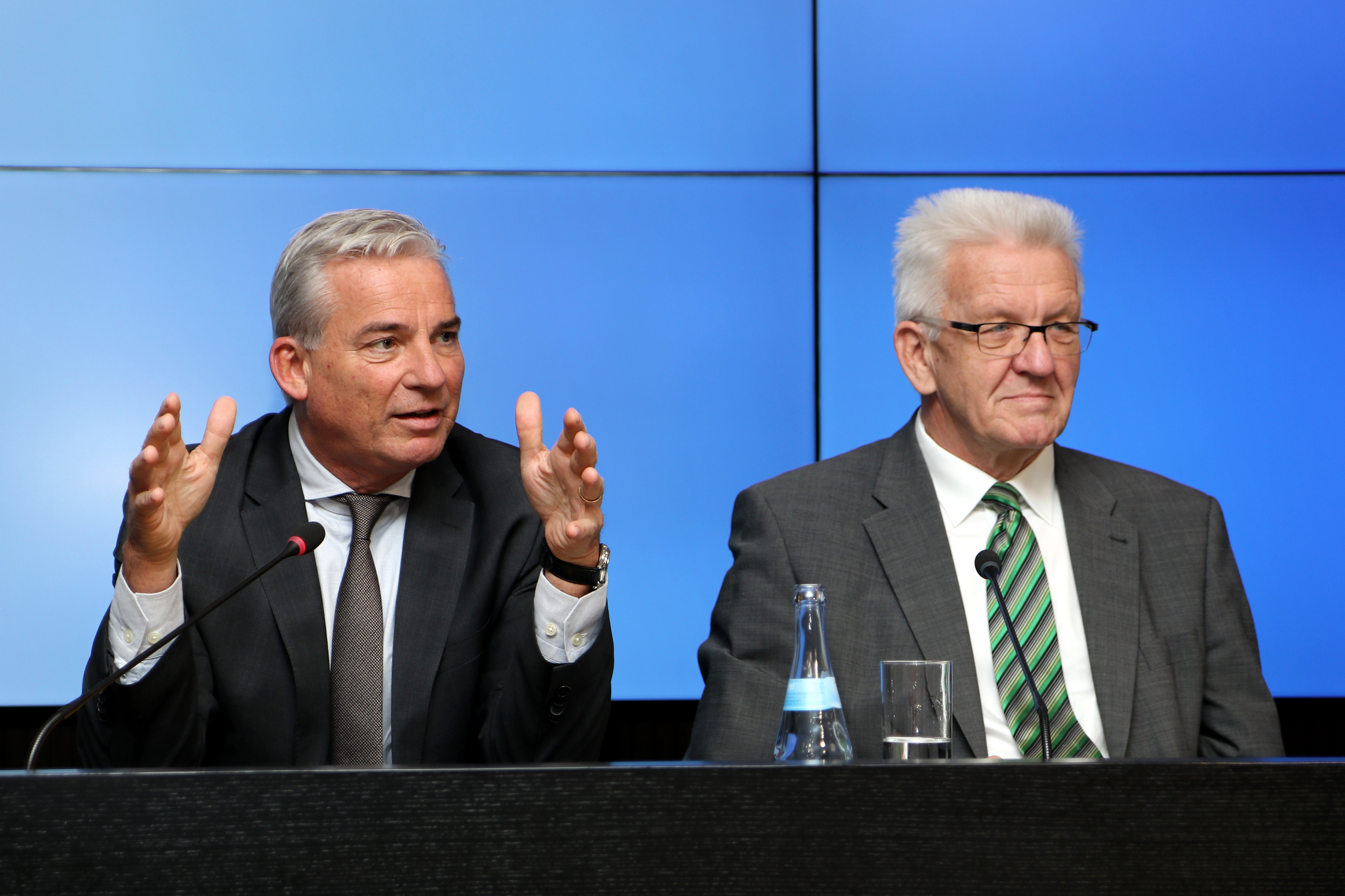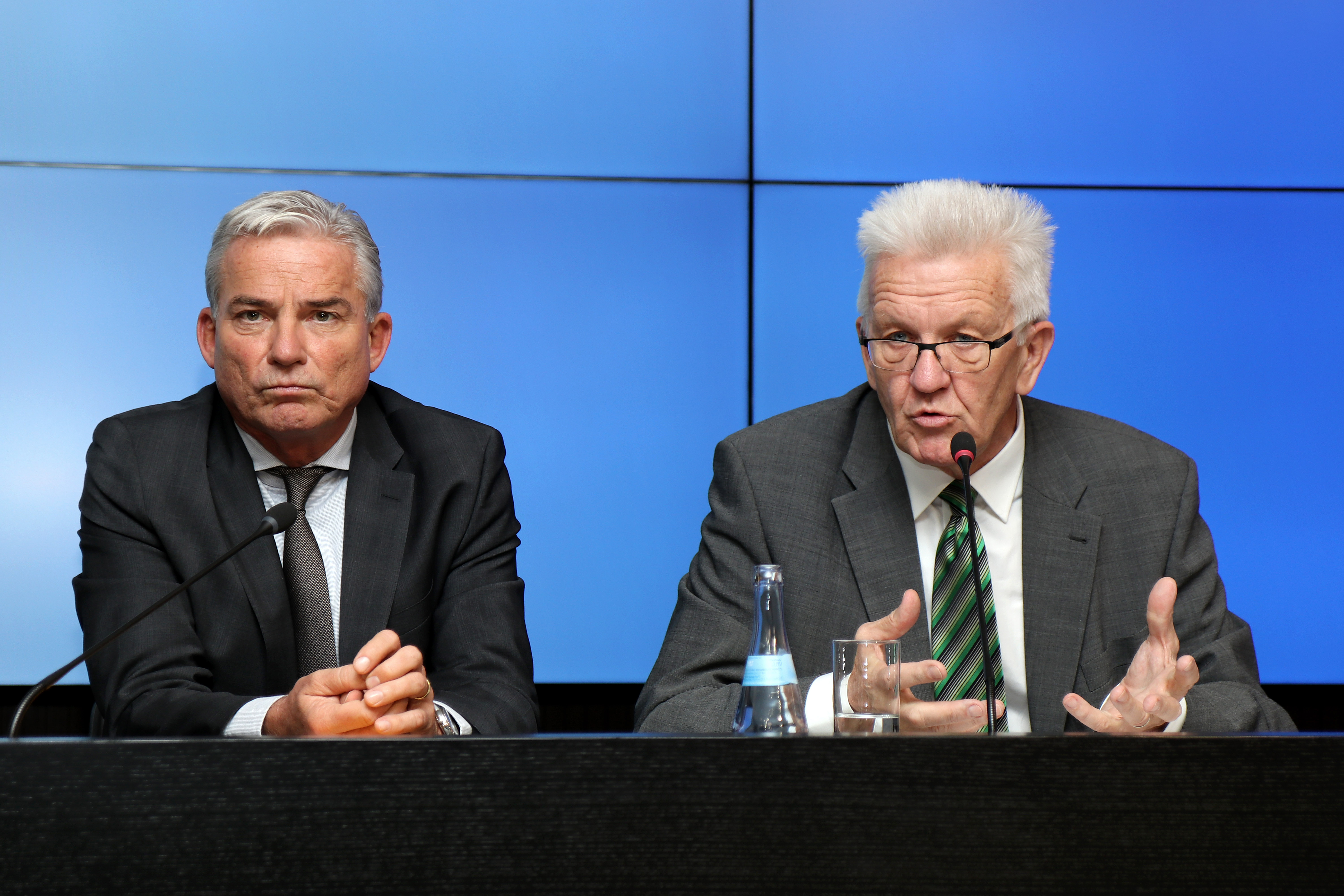 Ministerpräsident Winfried Kretschmann (r.) und Digitalisierungsminister Thomas Strobl (l.)