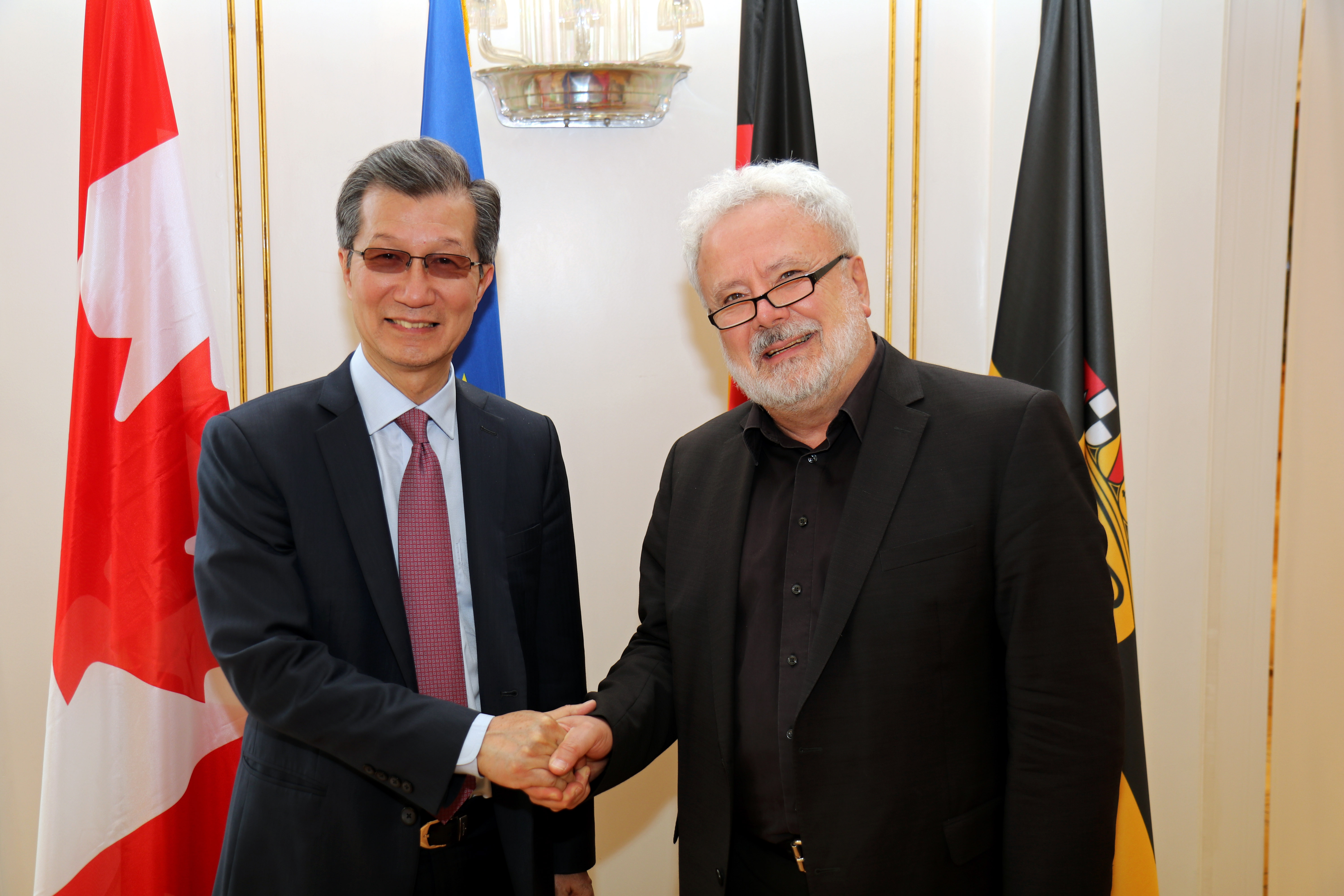 Staatsminister Klaus-Peter Murawski hat Handelsminister Michael Chan aus Ontario (Kanada) zu einem Gespräch in der Villa Reitzenstein in Stuttgart empfangen. Baden-Württemberg unterhält seit 1987 eine Partnerschaft mit der Provinz Ontario, Kanada.