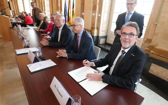 Dr. Torsten Tomppert, Vorstand des Landesverbands der Freien Berufe Baden-Württemberg, bei der Unterzeichnung des Bündnisses (Bild: Staatsministerium Baden-Württemberg)