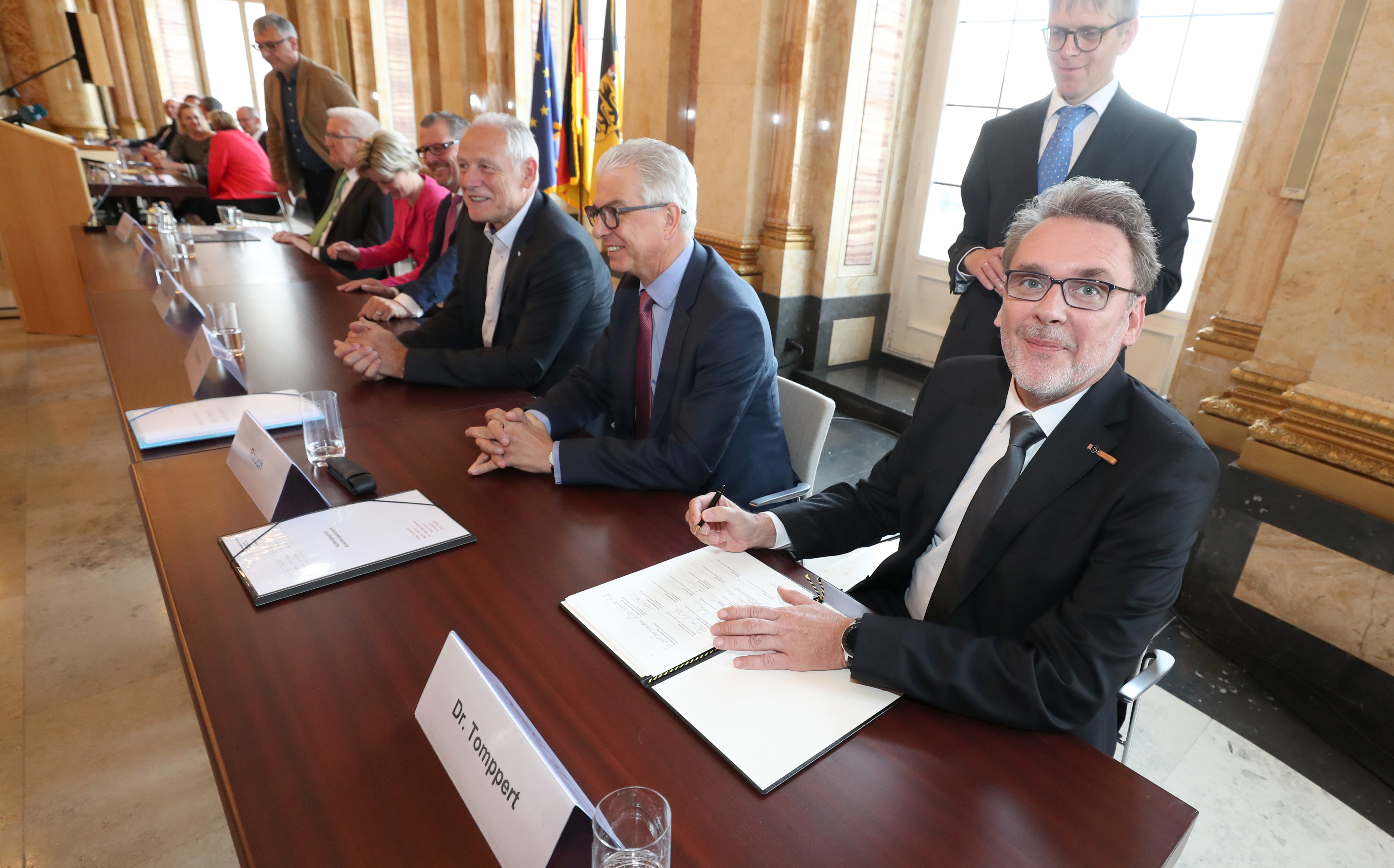Dr. Peter Kurz, Präsident des Städtetags Baden-Württemberg, bei der Unterzeichnung des Bündnisses