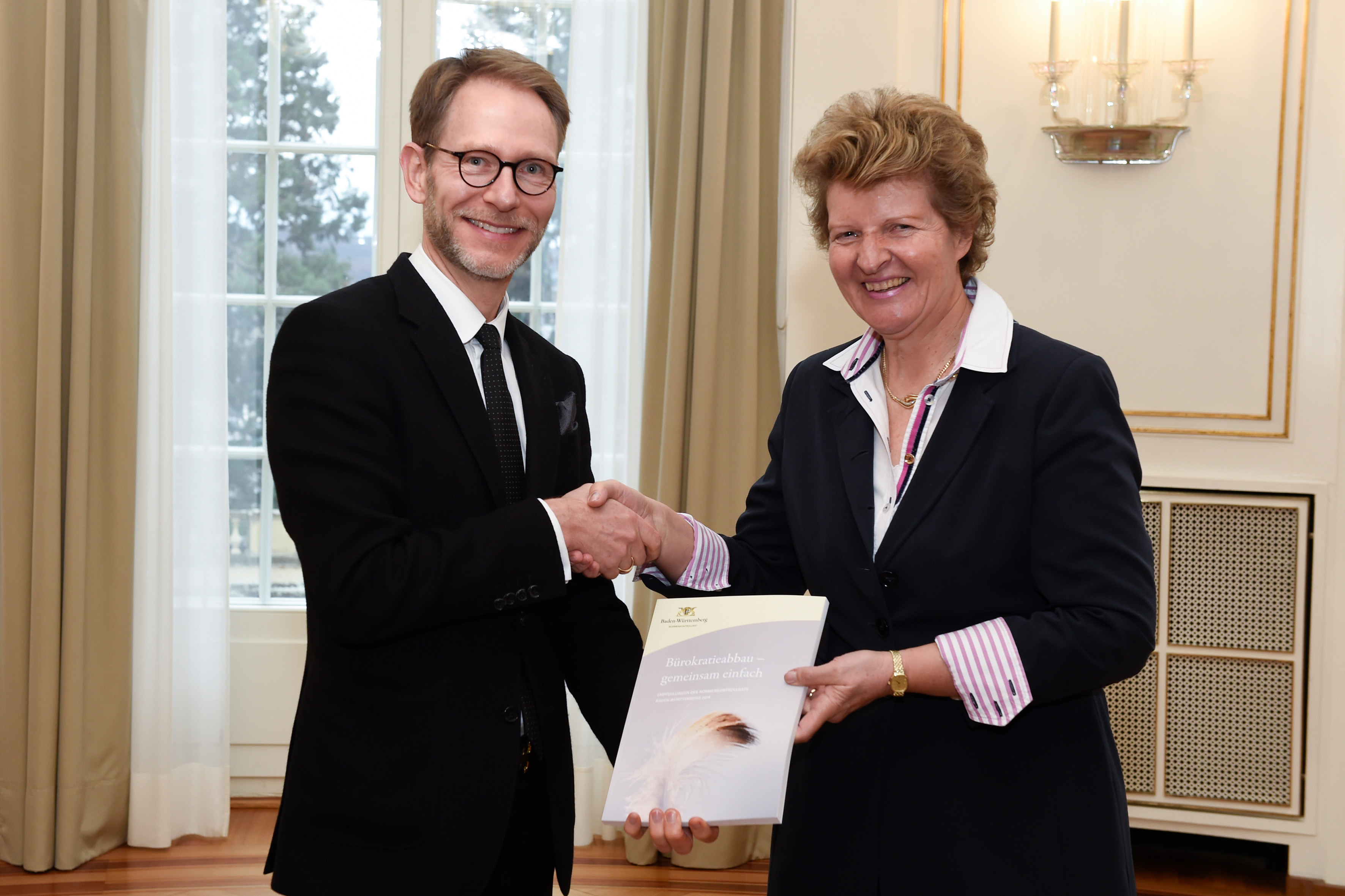 Der Normenkontrollrat Baden-Württemberg hat der Landesregierung seinen ersten Empfehlungsbericht übergeben. Damit liegen die ersten konkreten Vorschläge zum Bürokratieabbau auf dem Tisch. Die Fachministerien werden diese nun eingehend prüfen.
