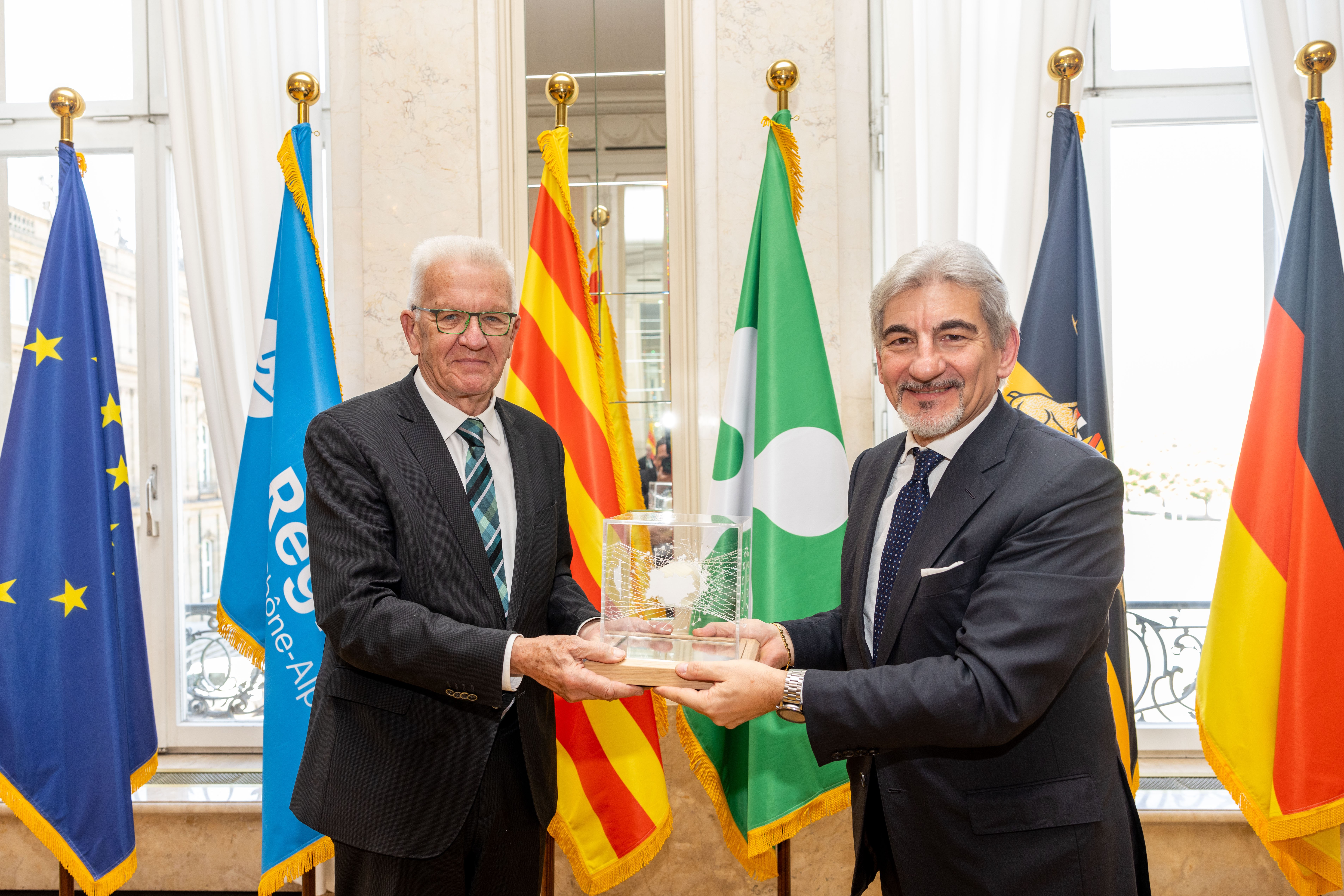 Baden-Württemberg hat im Neuen Schloss in Stuttgart die Präsidentschaft der „Vier Motoren für Europa“ an die Lombardei übergeben. Am 11. April 2024 fand aus diesem Anlass die Veranstaltung „Four Motors for Europe – Artificial Intelligence as an opportunity for society“ im Mercedes-Benz Museum in Stuttgart statt.