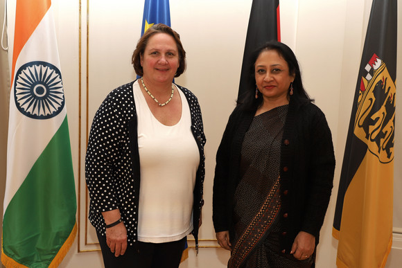 Staatsministerin Theresa Schopper hat die indische Botschafterin Mukta Dutta Tomar zu einem Gespräch in der Villa Reitzenstein in Stuttgart empfangen.