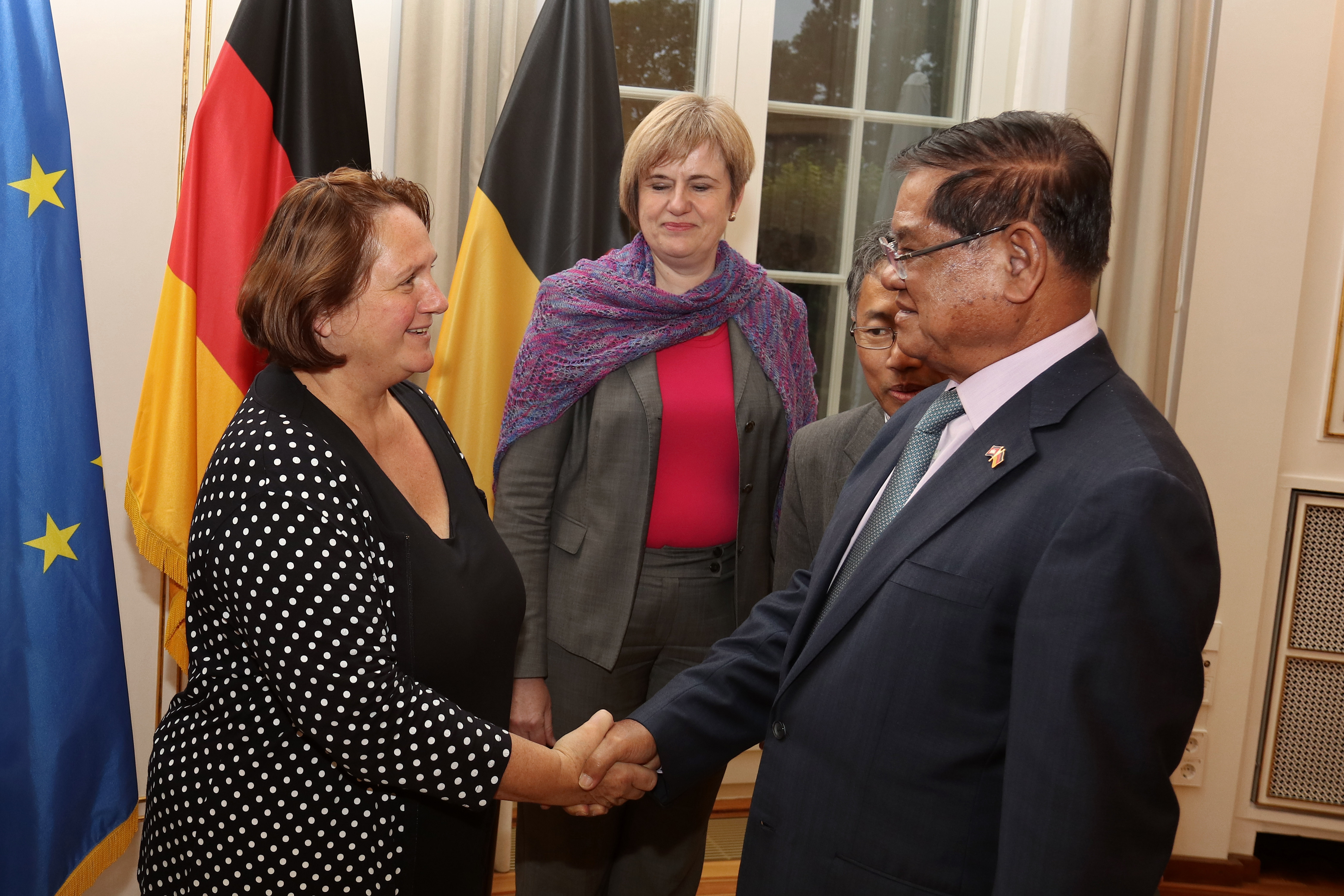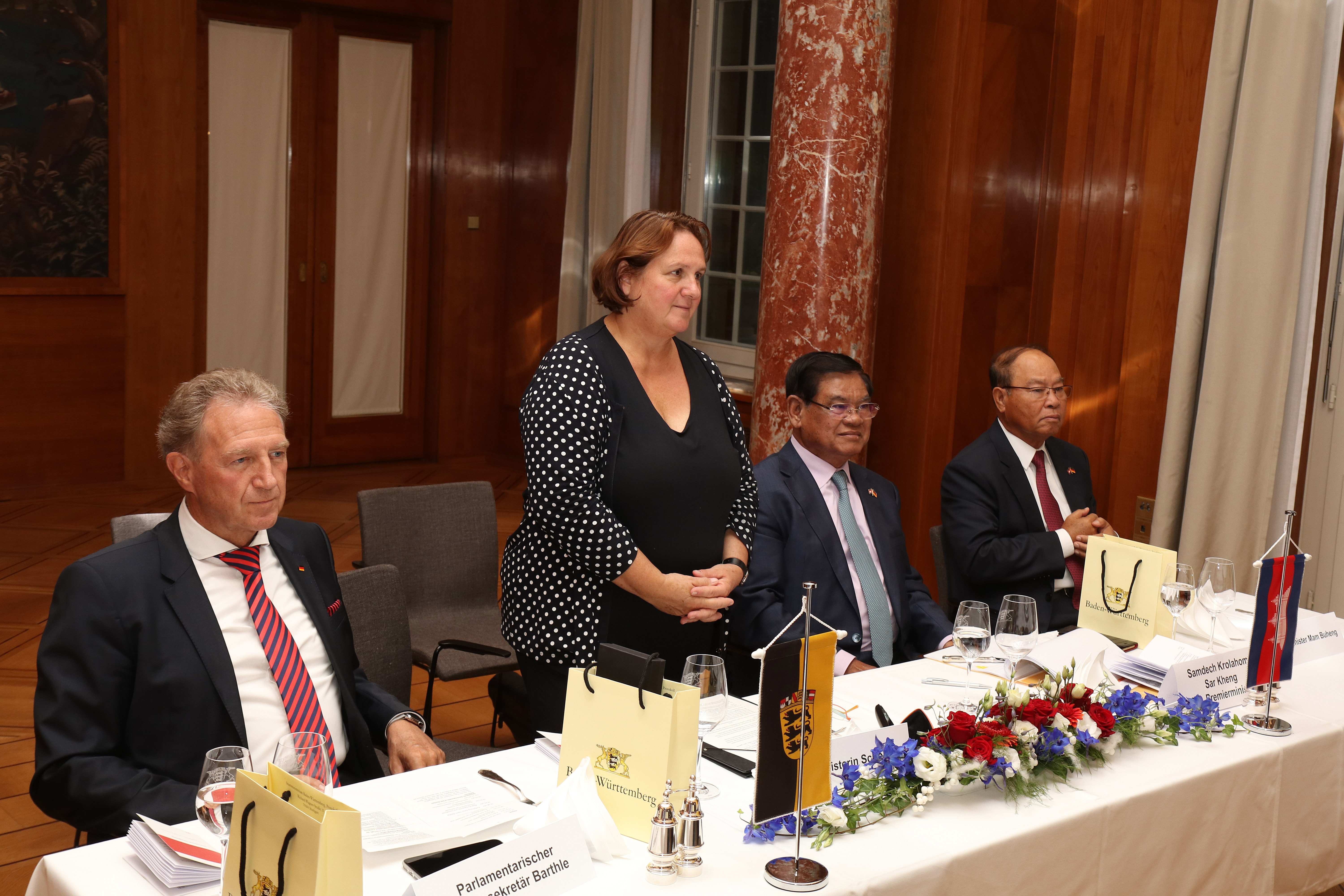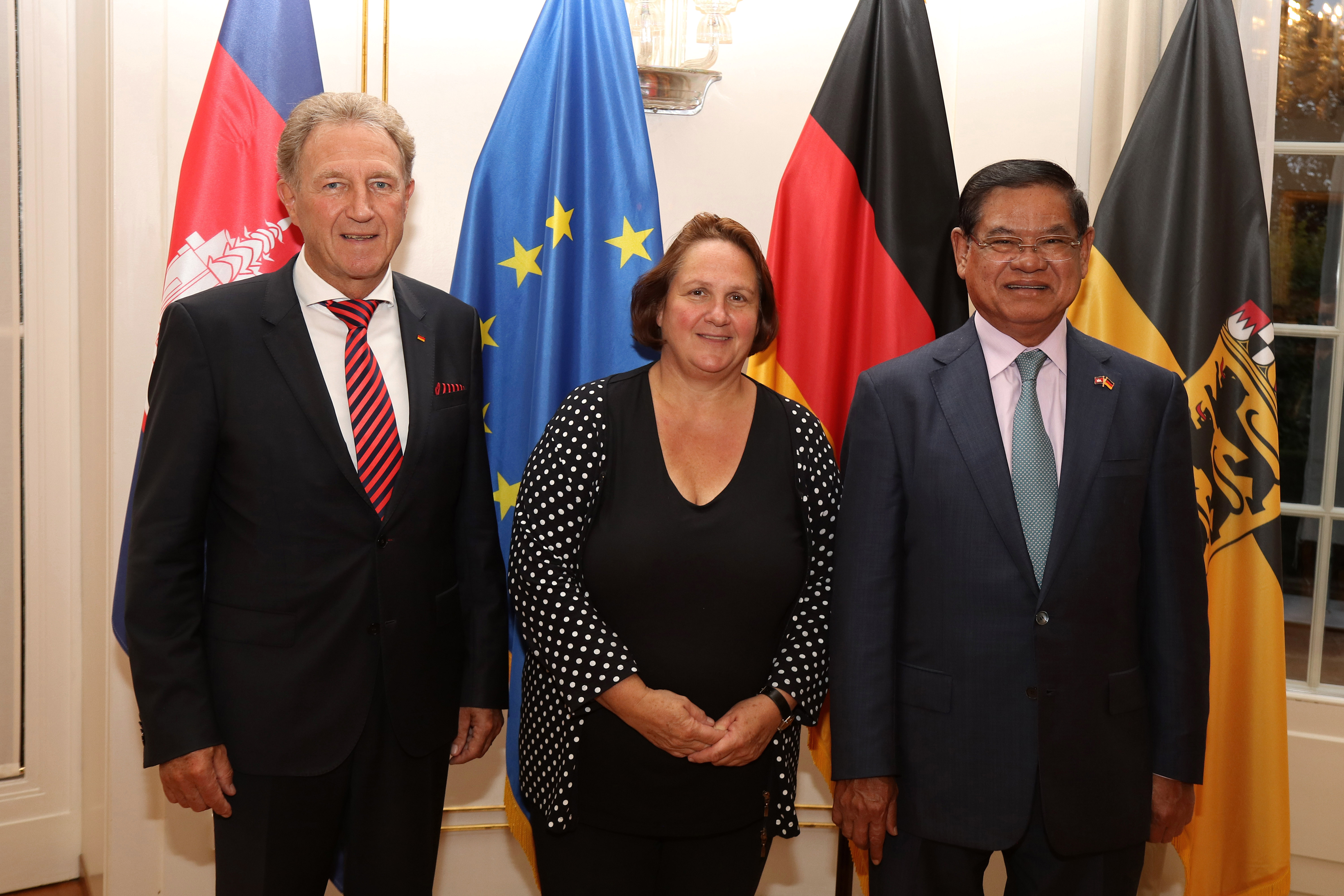 Staatsministerin Theresa Schopper hat den stellvertretenden Premierminister und Minister des Inneren von Kambodscha, Samdech Krolahom Sar Kheng, mit einer Delegation in der Villa Reitzenstein in Stuttgart empfangen.