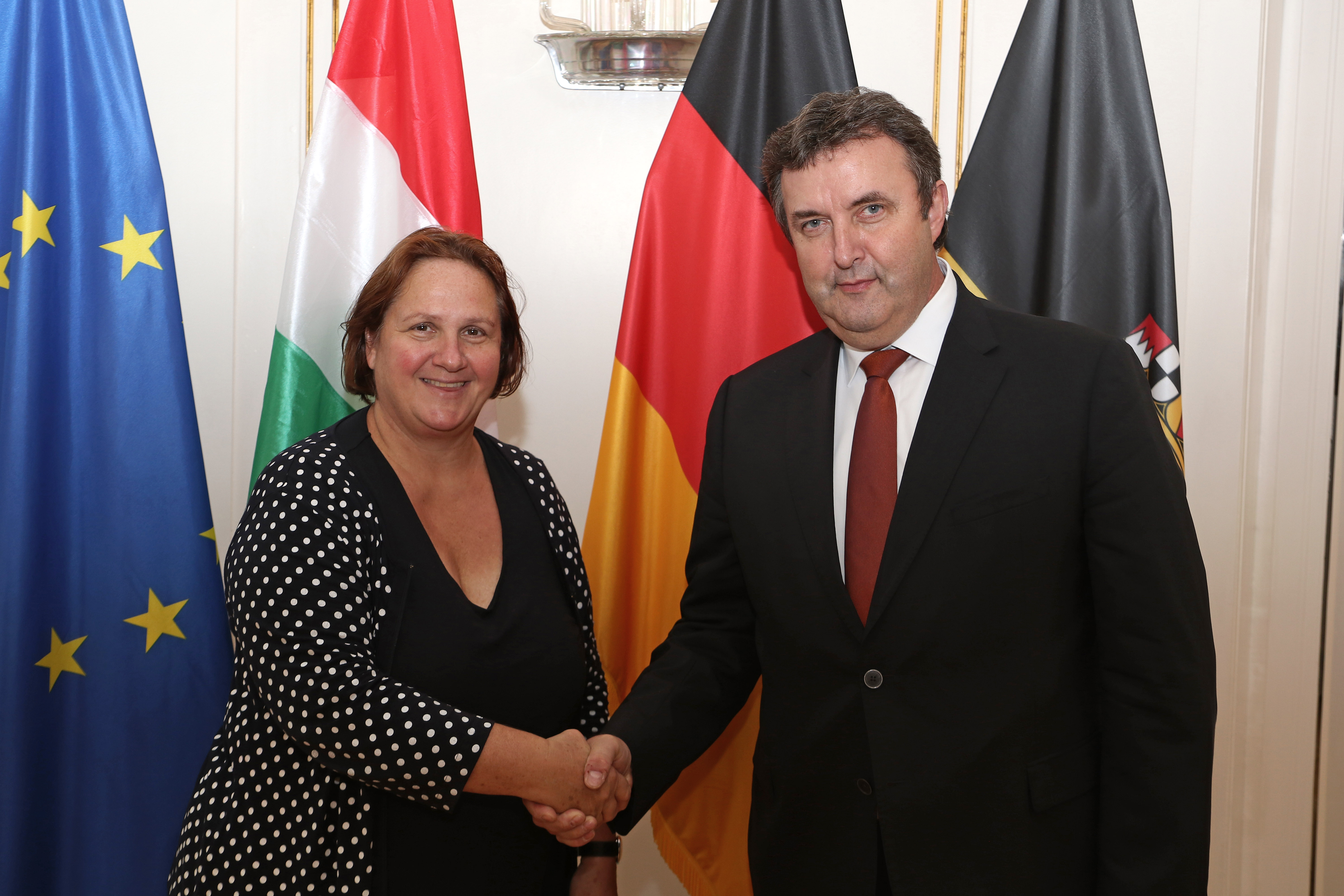 Staatsministerin Theresa Schopper hat den ungarischen Minister für Innovation und Technologie, Dr. László Palkovics, zu einem Gespräch in der Villa Reitzenstein in Stuttgart empfangen.
