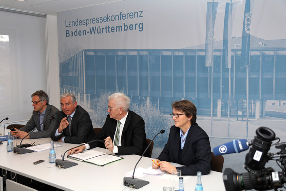 Ministerpräsident Winfried Kretschmann und der Minister für Inneres, Digitalisierung und Migration, Thomas Strobl, haben in der Regierungspressekonferenz in Stuttgart die jetzt anstehenden Schritte zur Stärkung der Sicherheit vorgestellt und Fragen der Journalisten beantwortet.