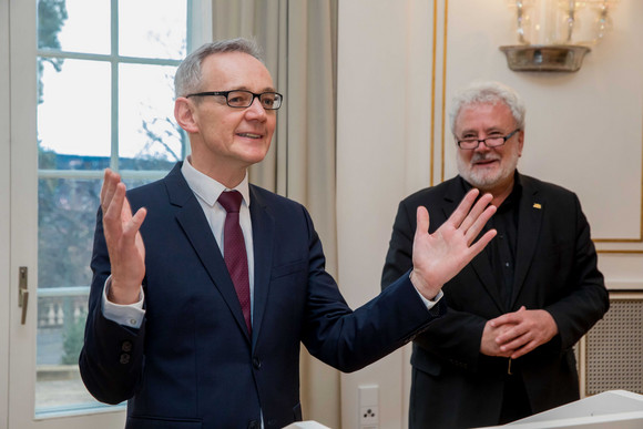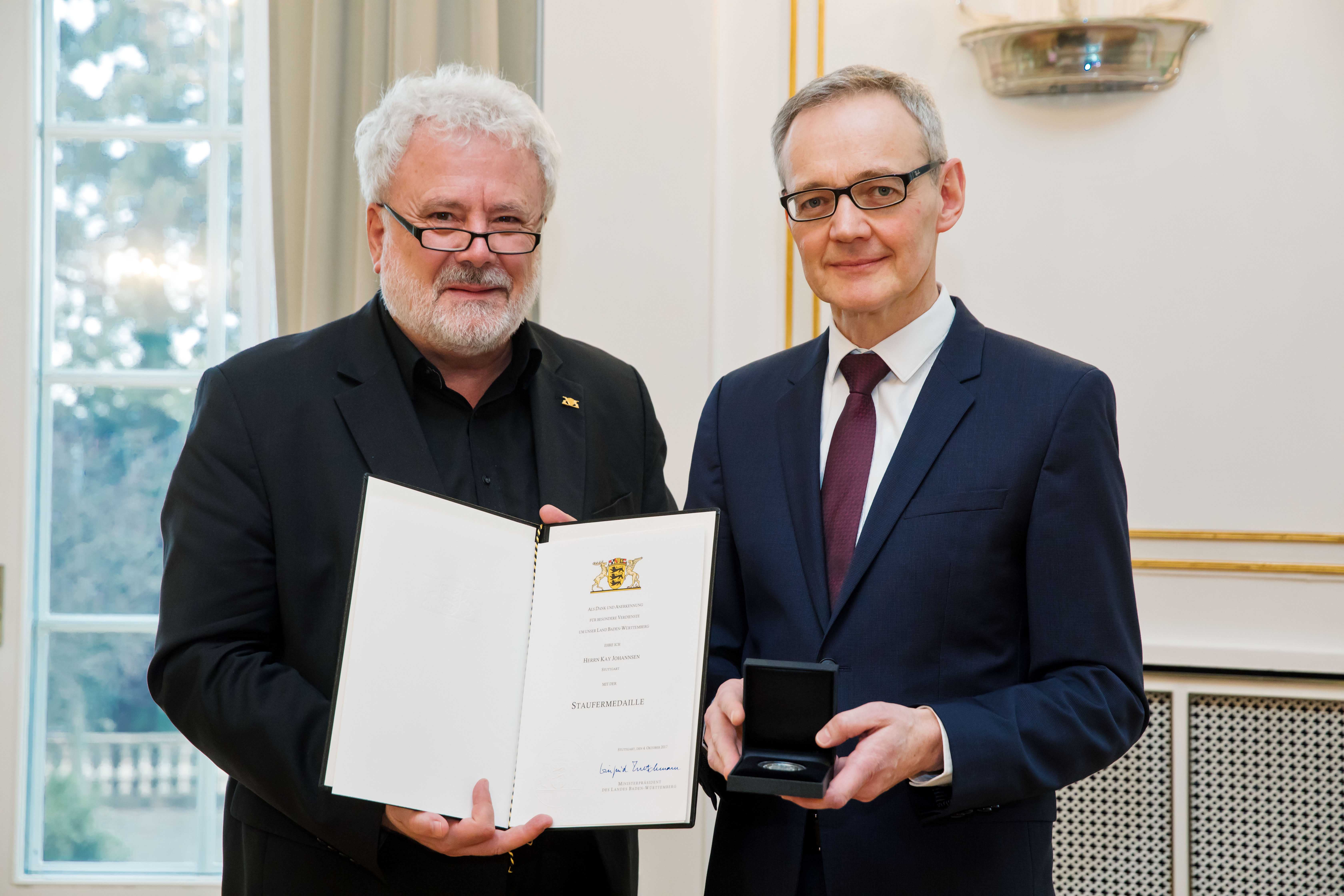 Staatsminister Klaus-Peter Murawski hat dem Organisten und Dirigenten Kay Johannsen die Staufermedaille überreicht und ihn als Brückenbauer und musikalischen Botschafter für Baden-Württemberg gewürdigt.