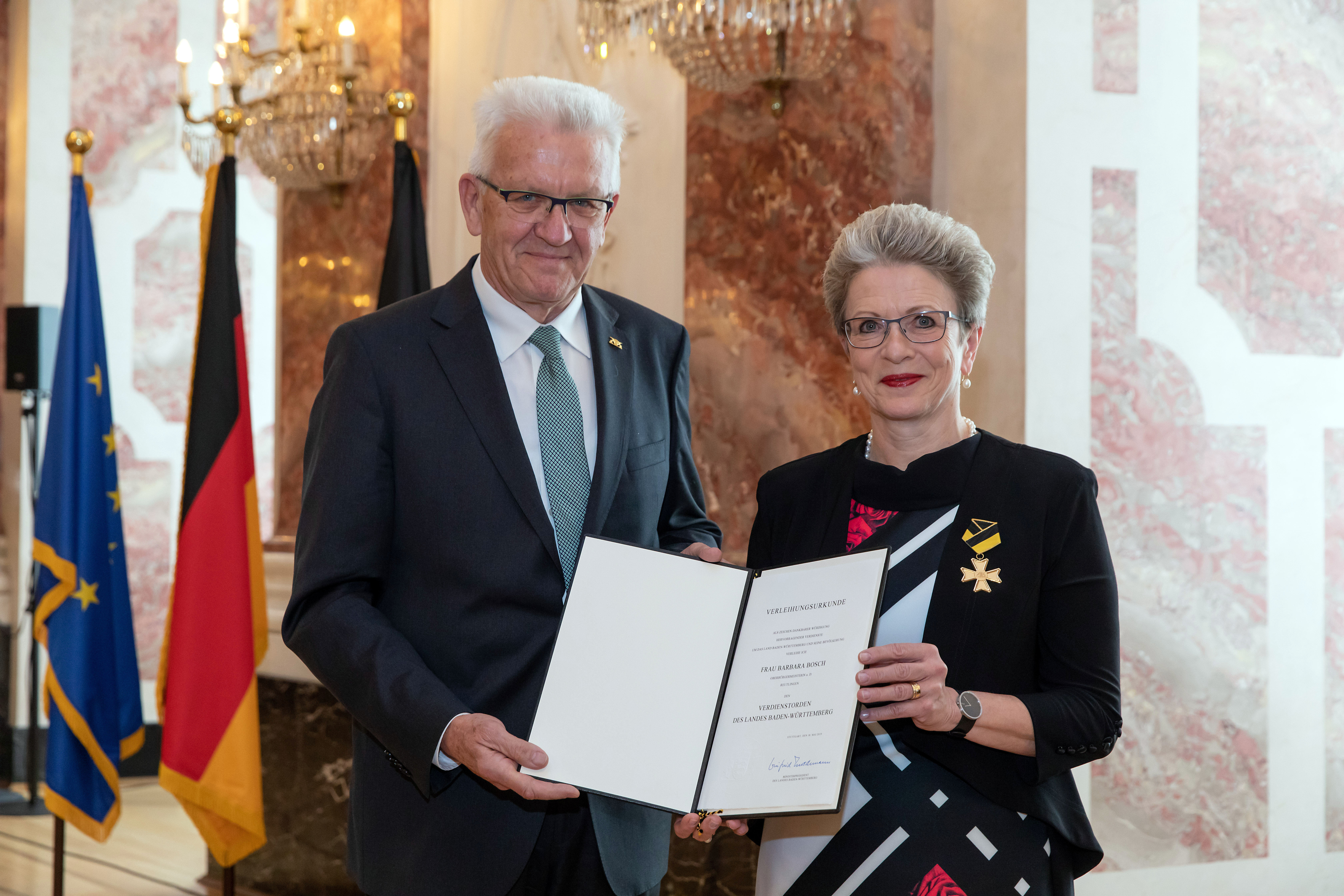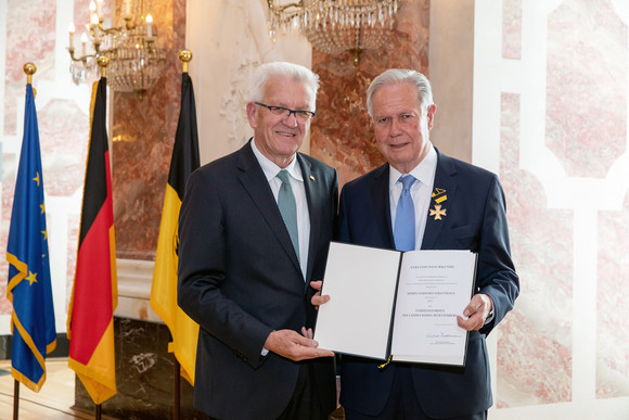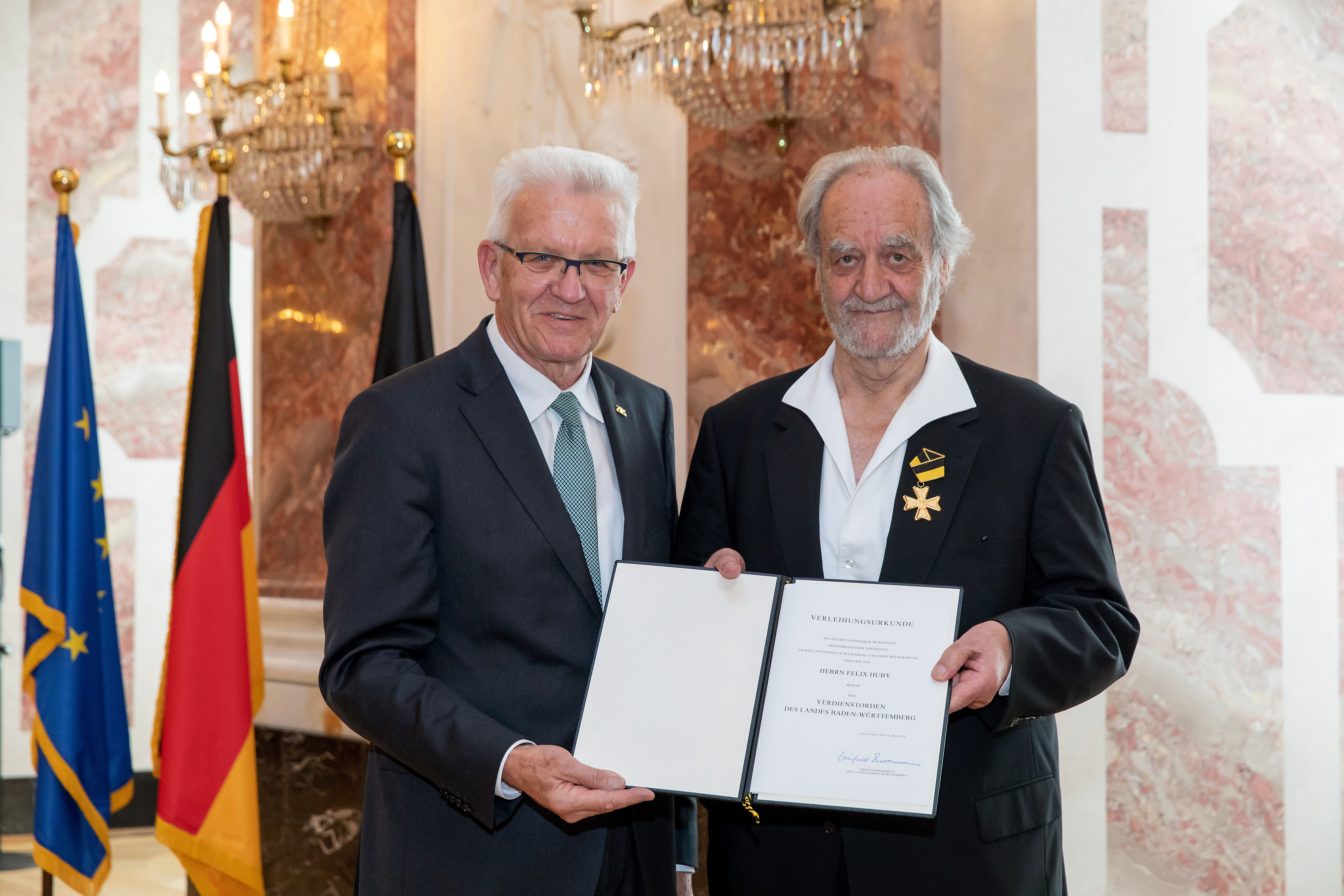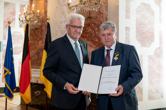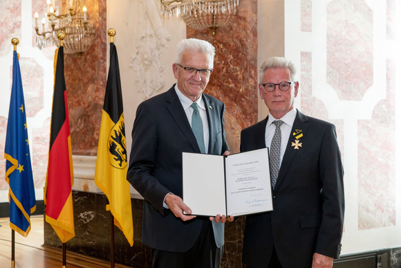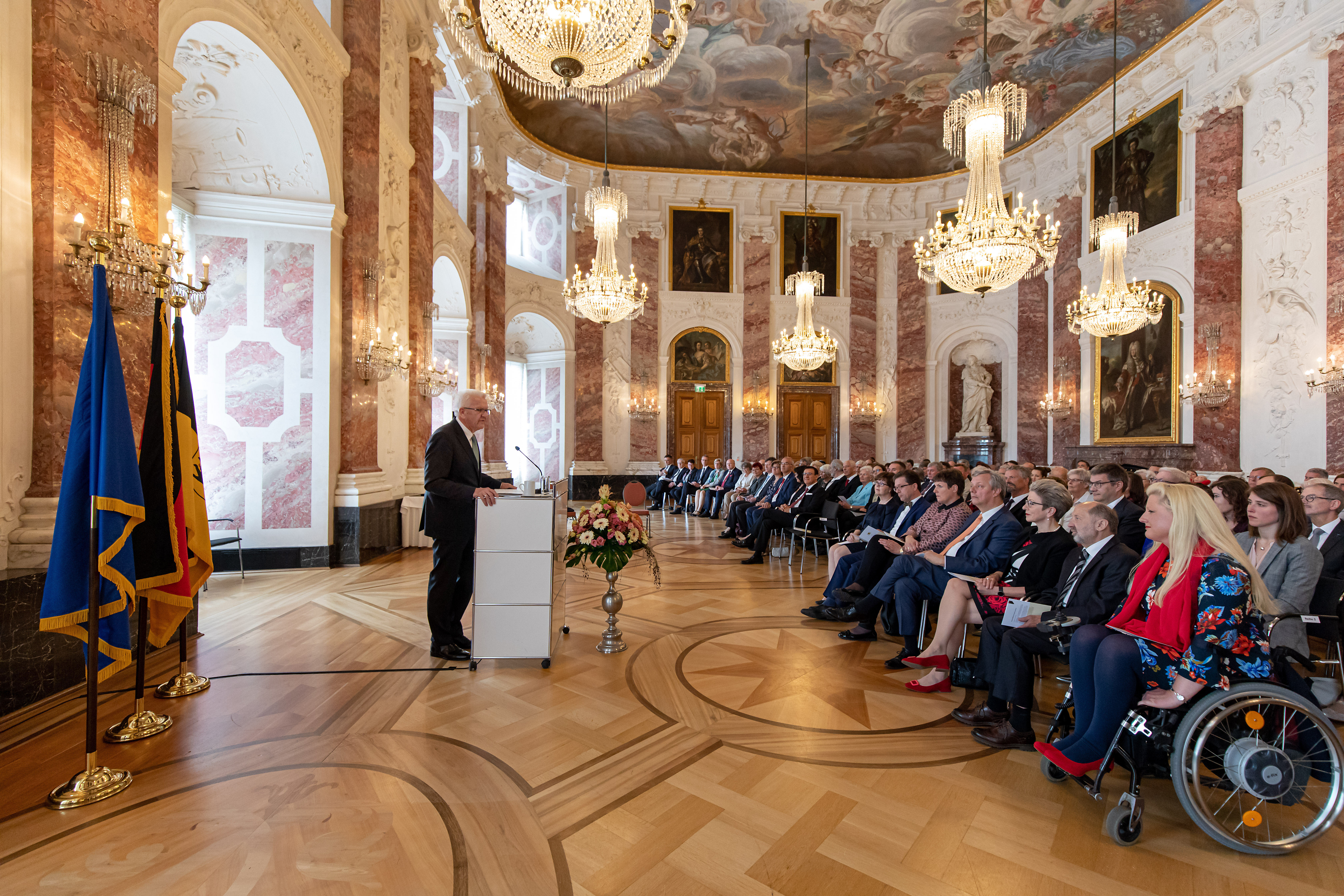 Ministerpräsident Winfried Kretschmann hat den Verdienstorden des Landes Baden-Württemberg an 18 verdiente Persönlichkeiten verliehen. Demokratie brauche Menschen, die mitreden, mitmachen und sich füreinander verantwortlich fühlen, erklärte Kretschmann.