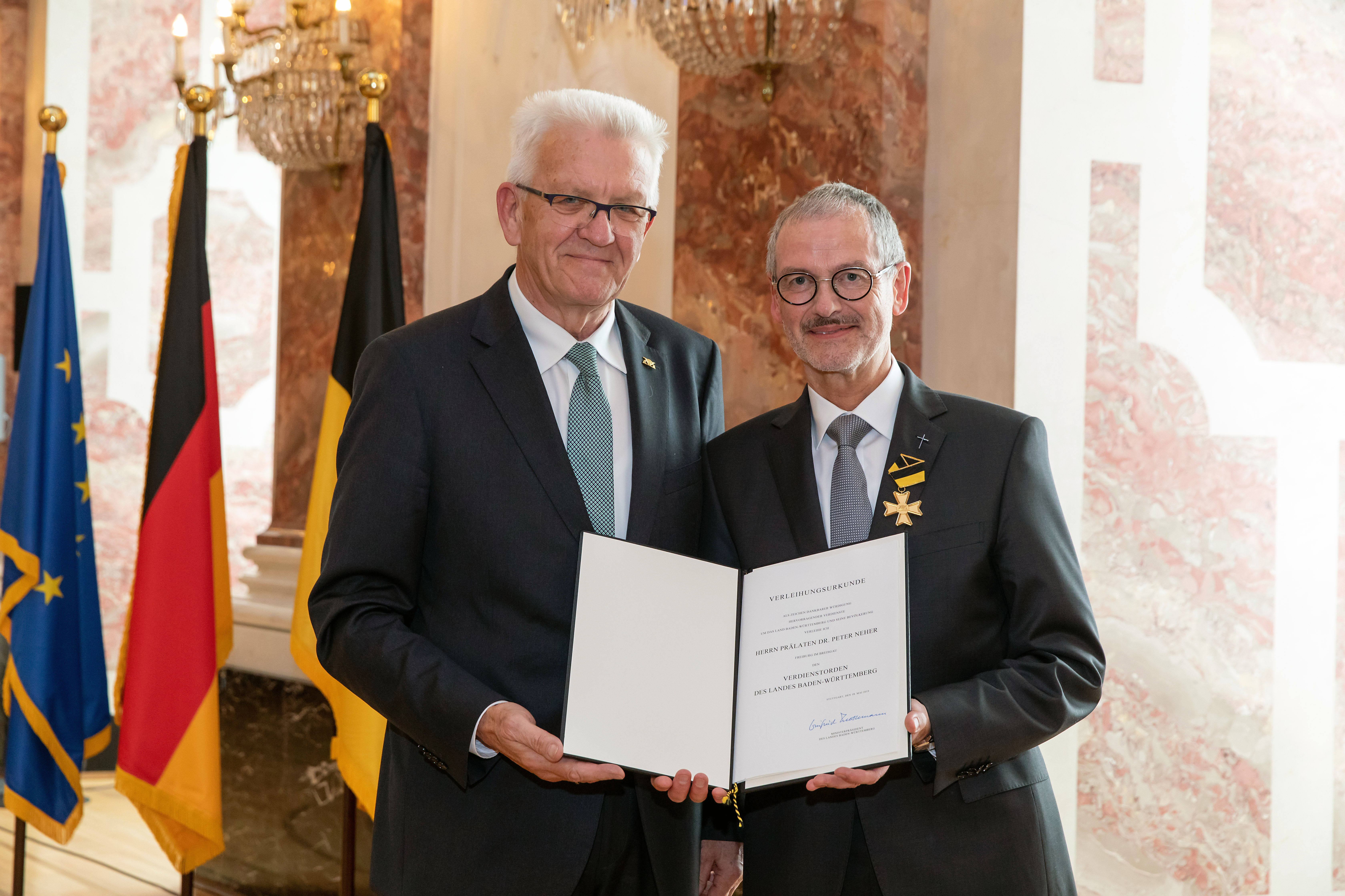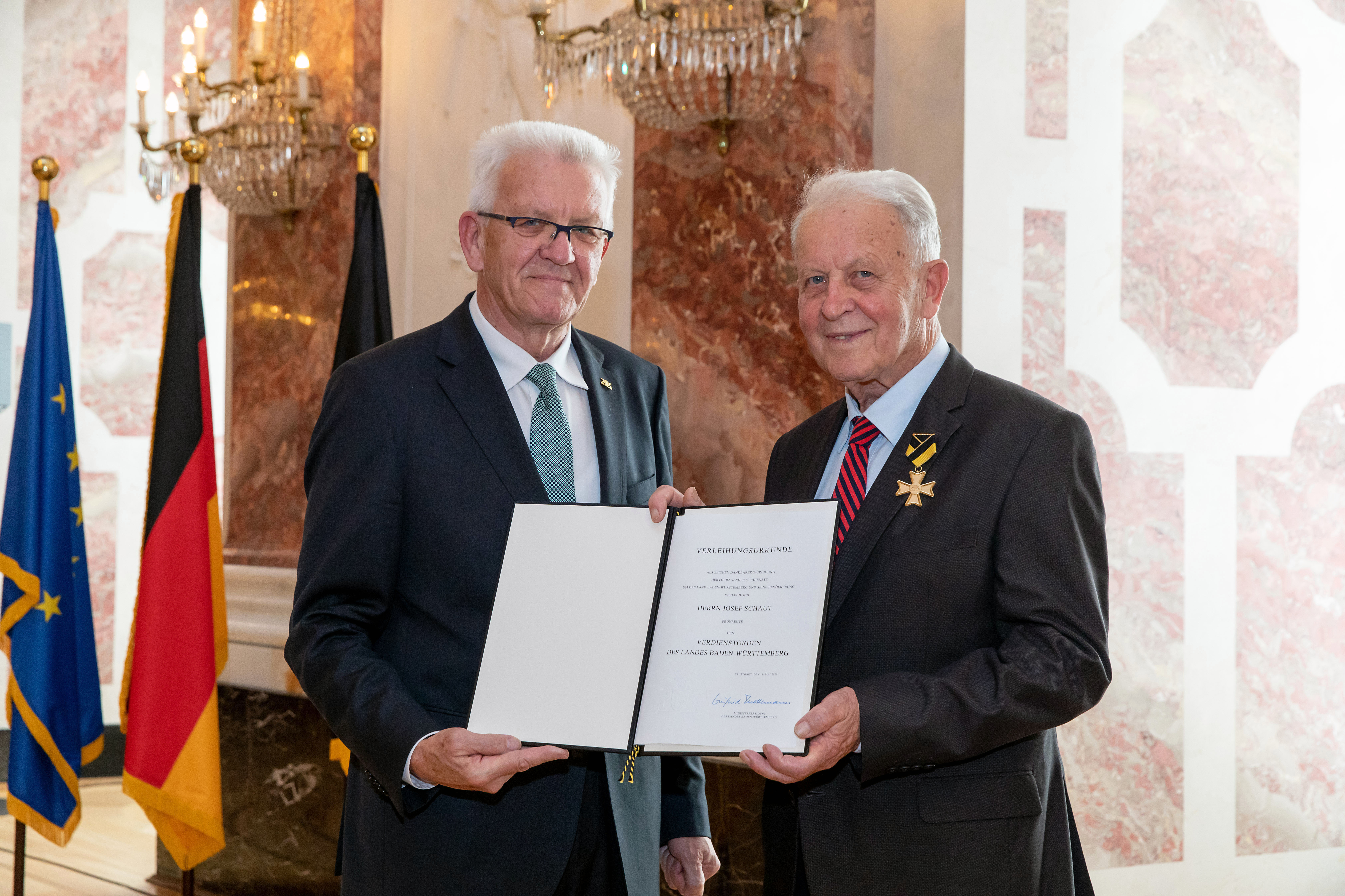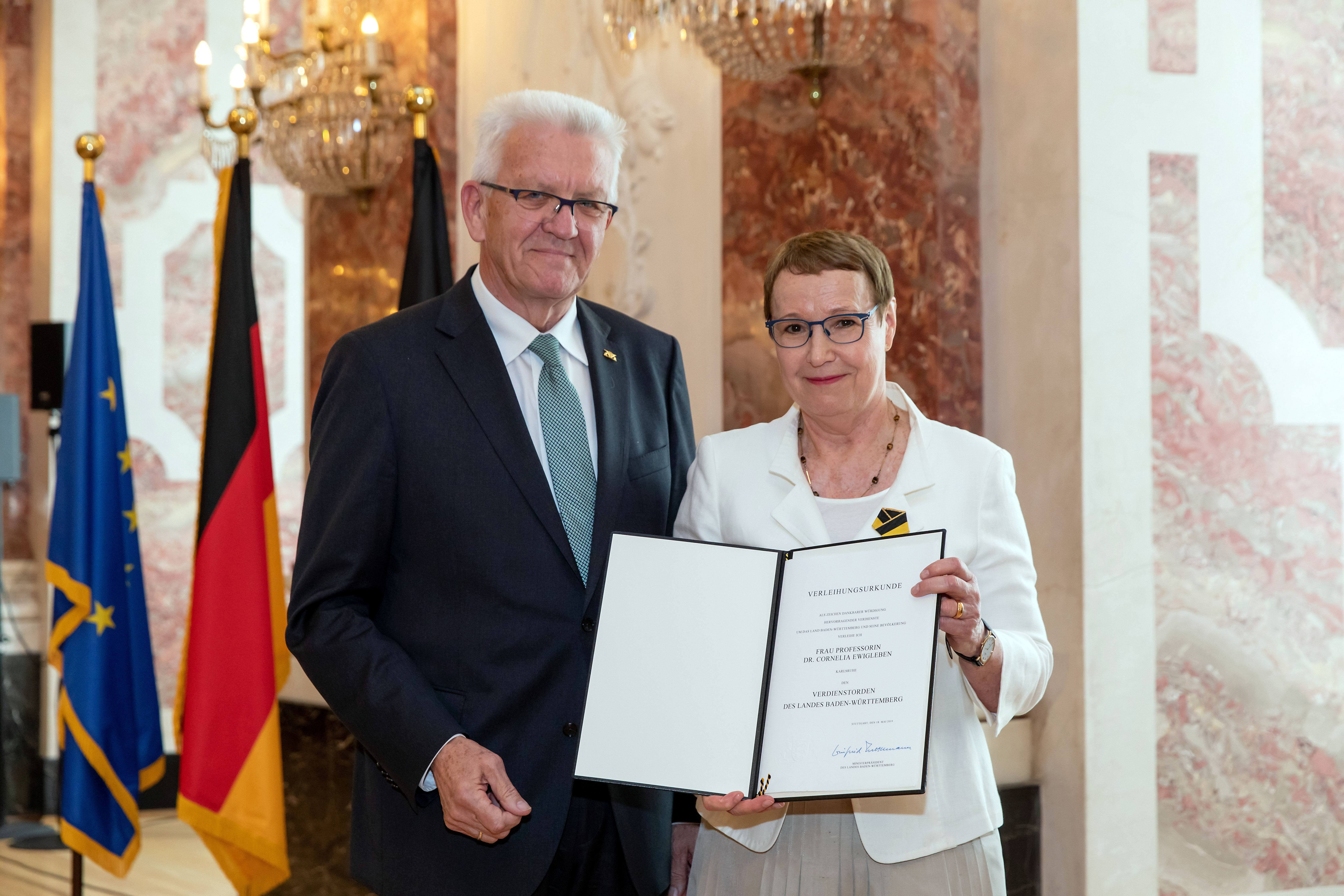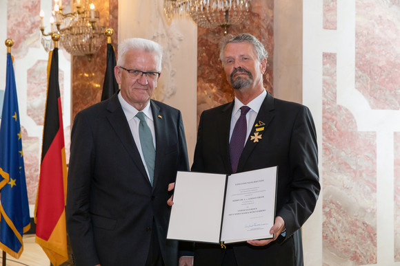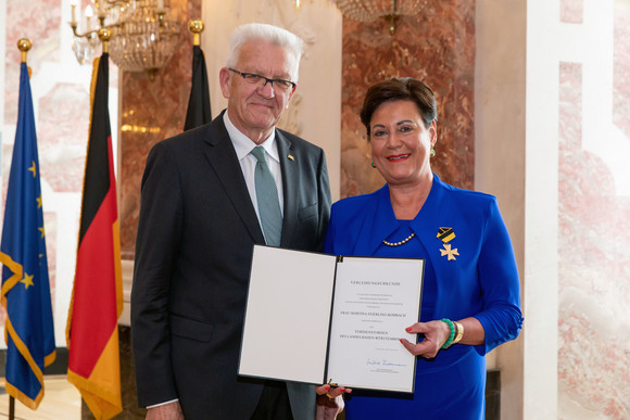 Ministerpräsident Winfried Kretschmann hat den Verdienstorden des Landes Baden-Württemberg an 18 verdiente Persönlichkeiten verliehen. Demokratie brauche Menschen, die mitreden, mitmachen und sich füreinander verantwortlich fühlen, erklärte Kretschmann.