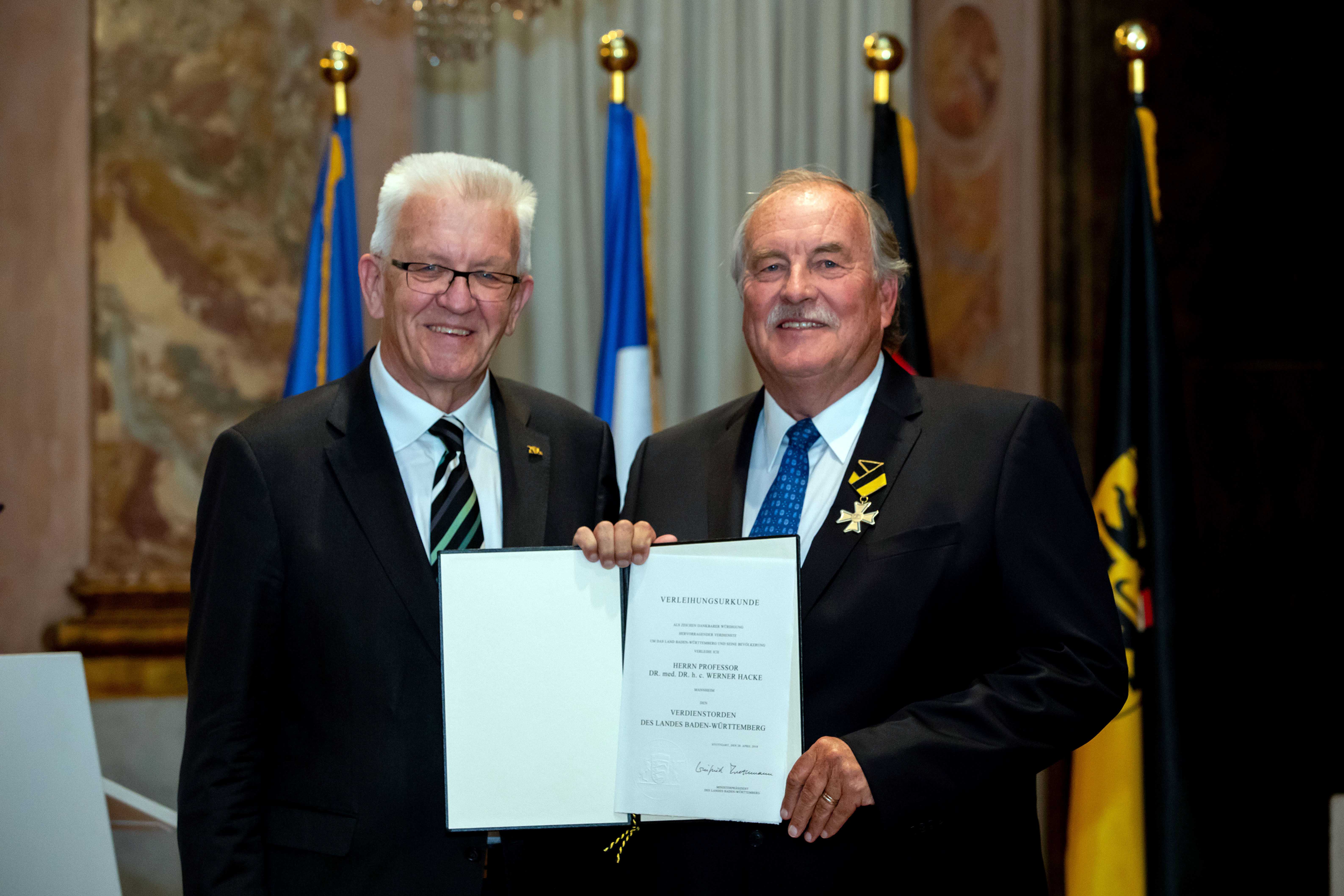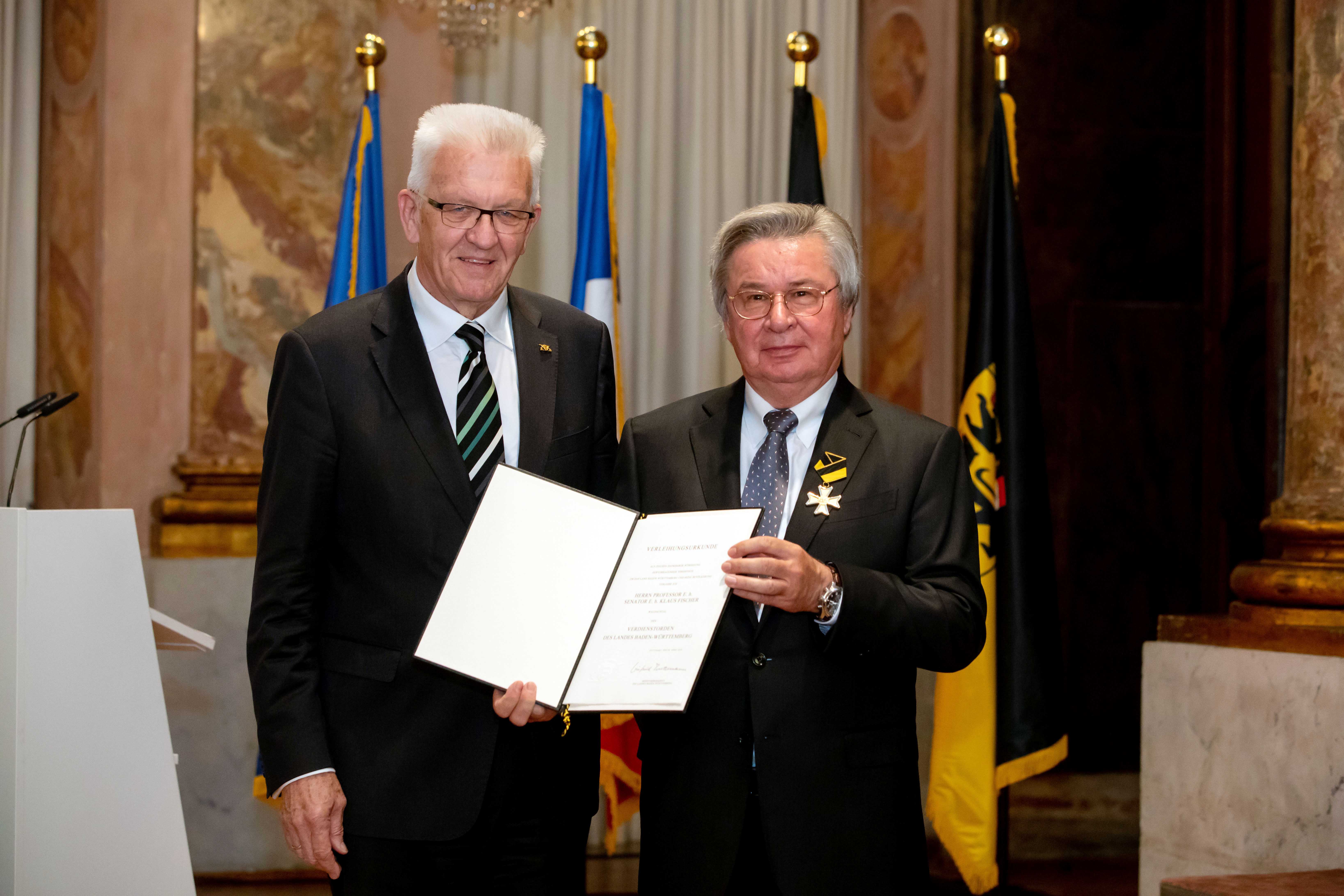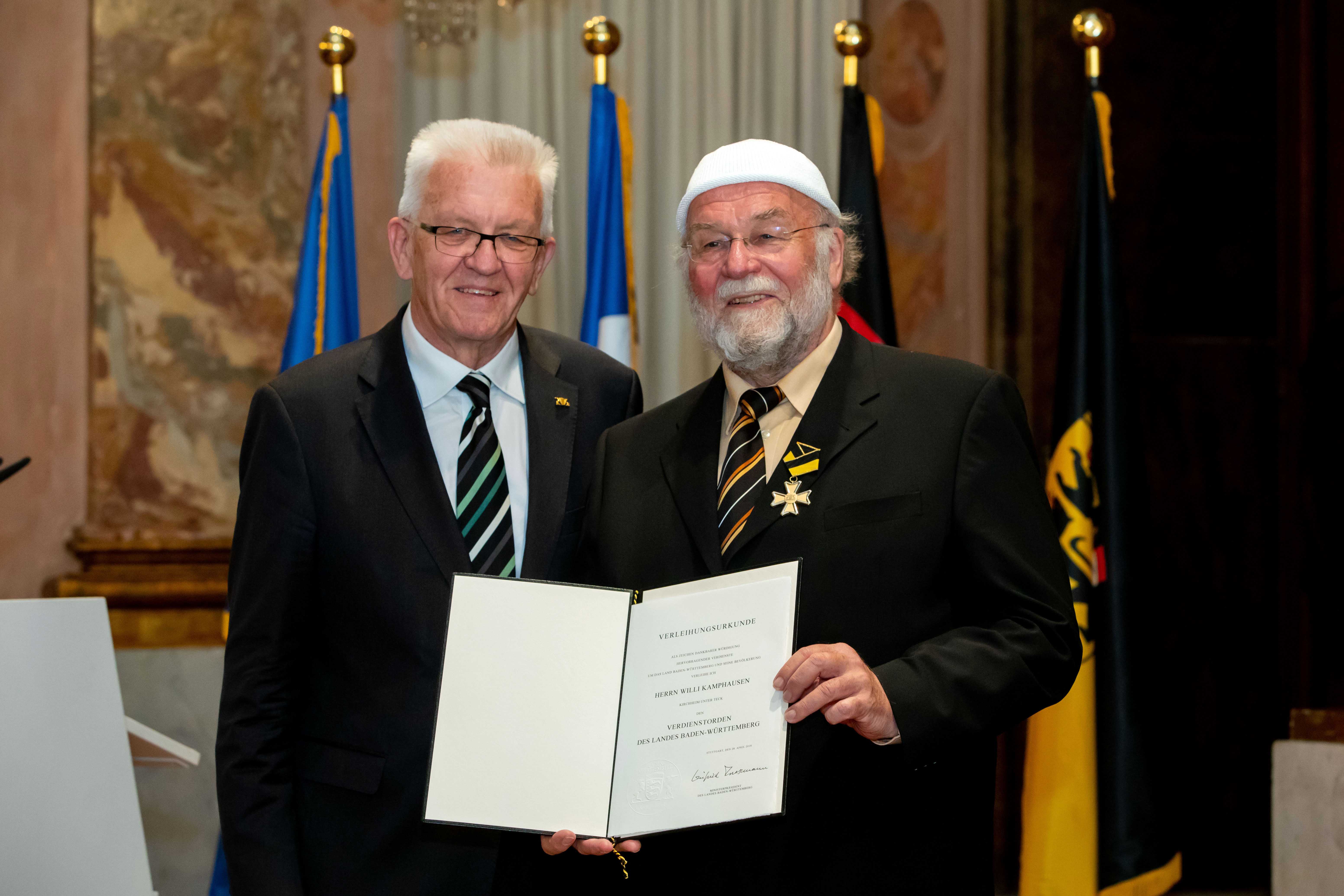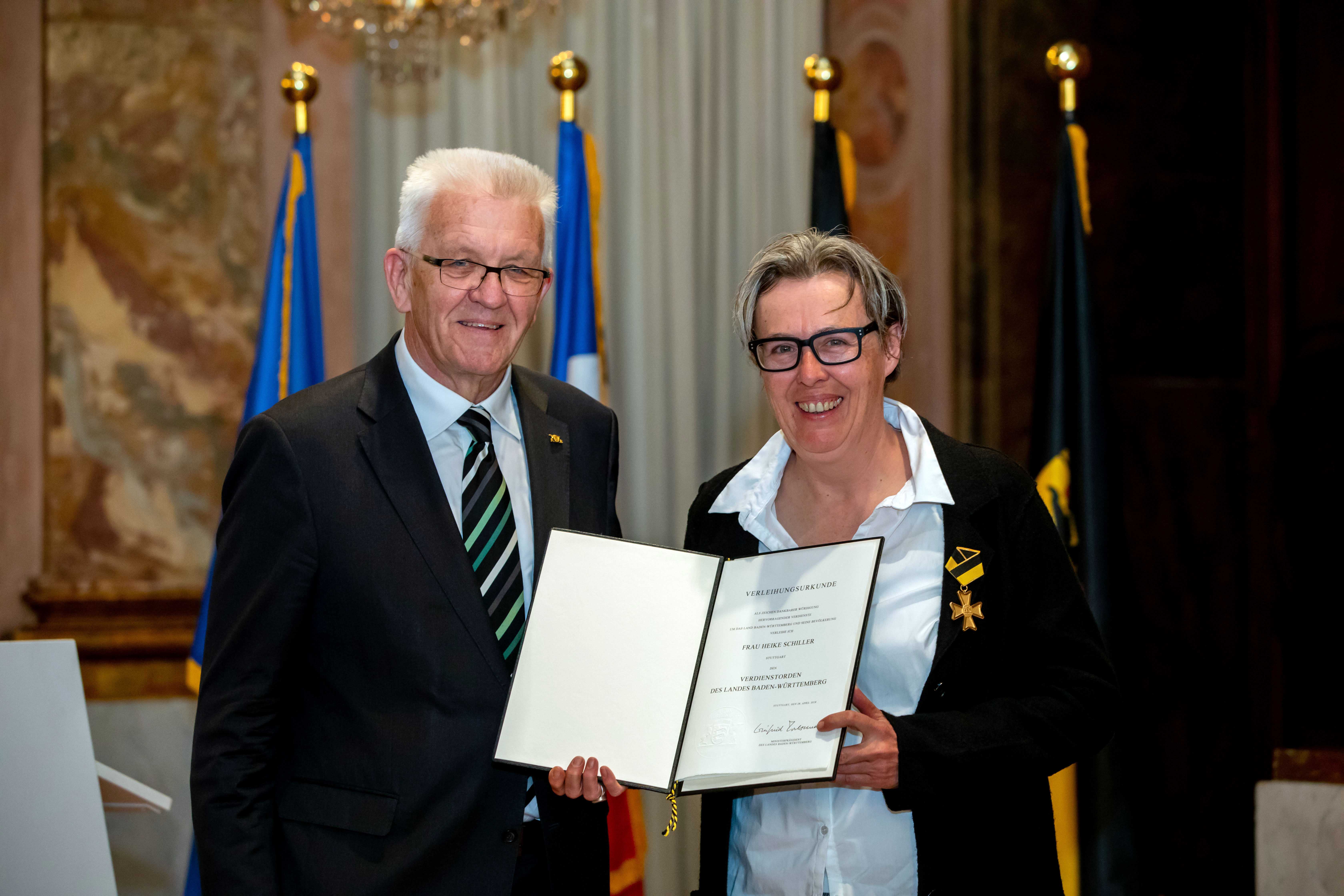 Ministerpräsident Winfried Kretschmann hat den Verdienstorden des Landes Baden-Württemberg an 19 verdiente Persönlichkeiten verliehen. Die Geehrten bildeten einen beindruckenden Querschnitt ehrenamtlichen Engagements, so Kretschmann.