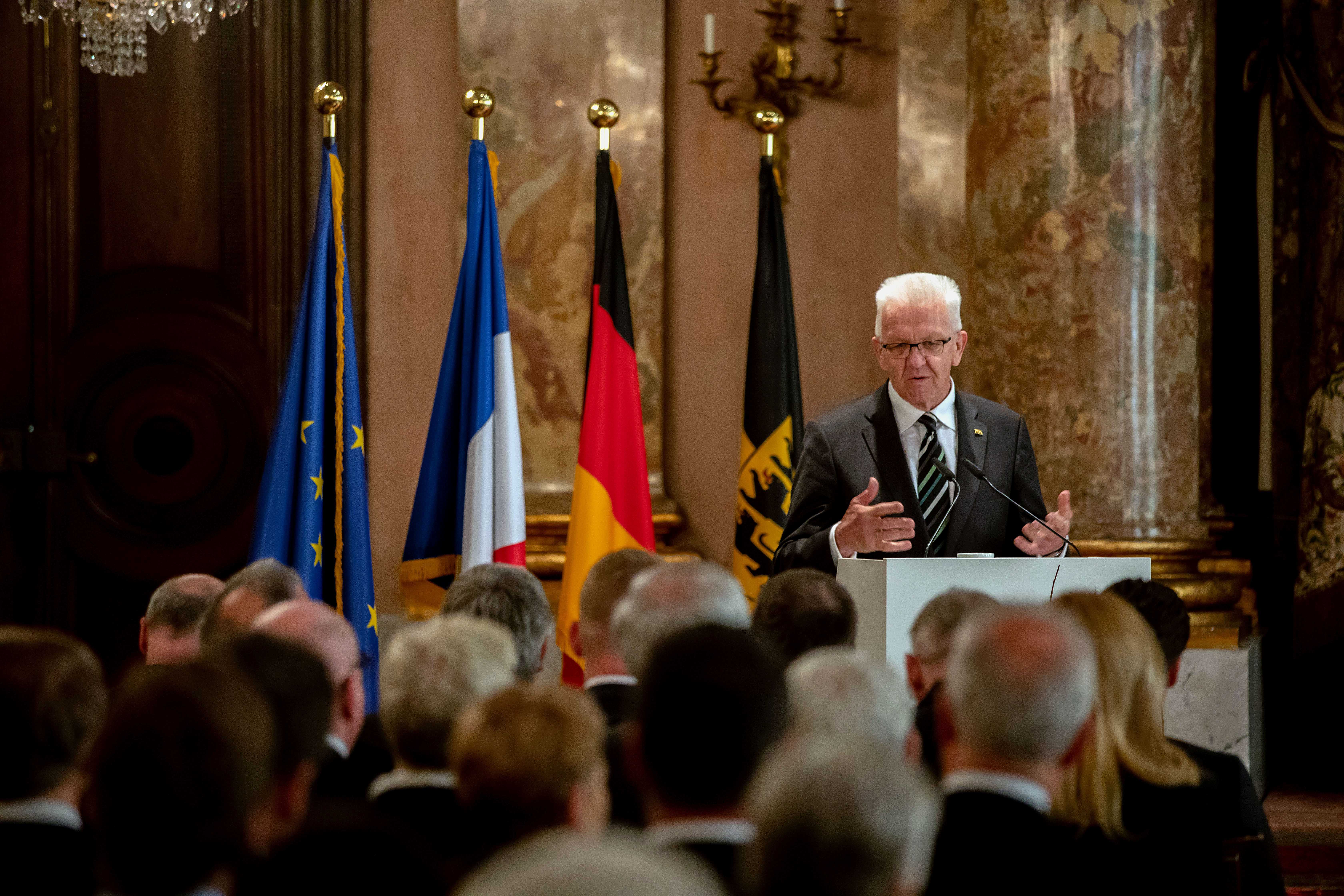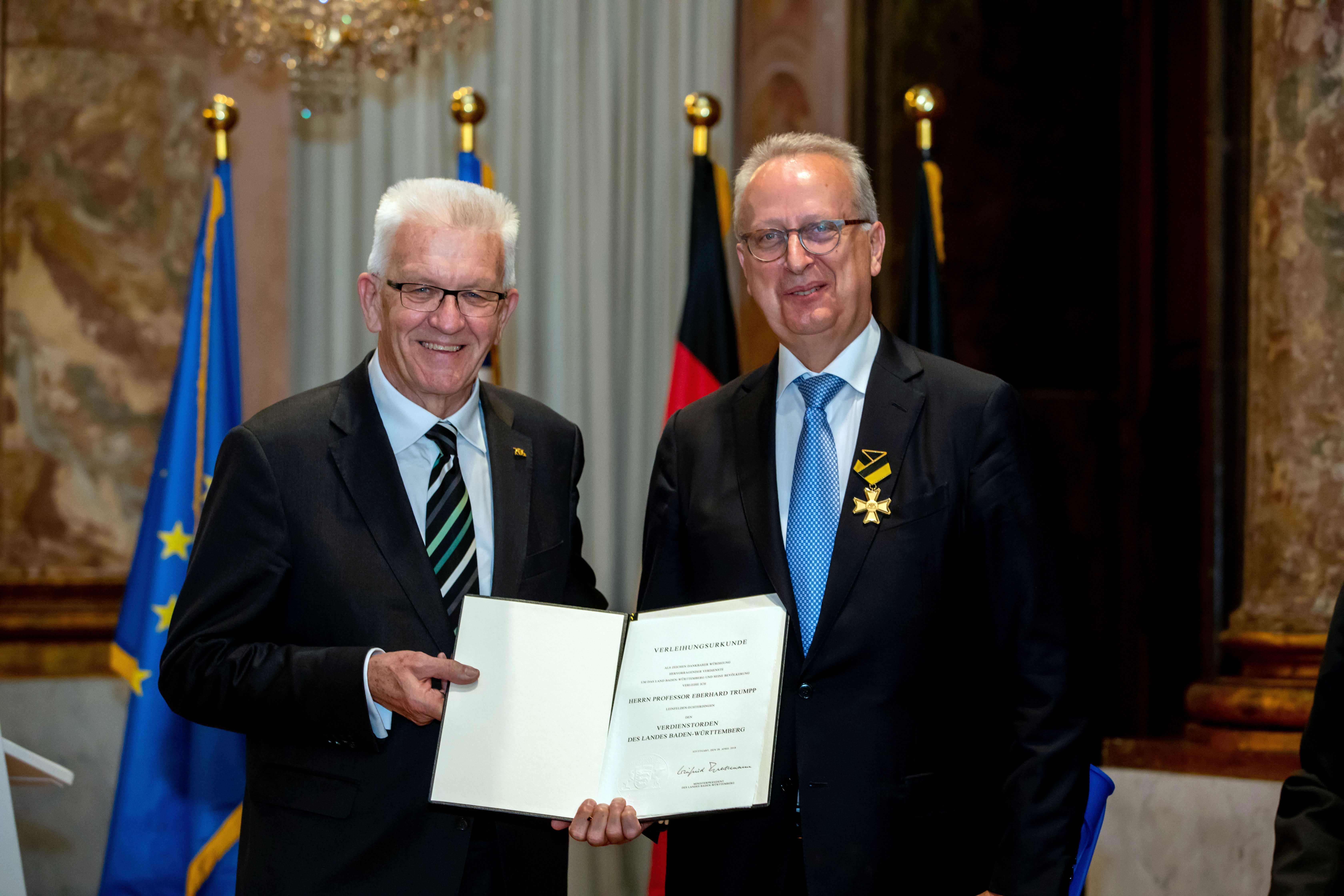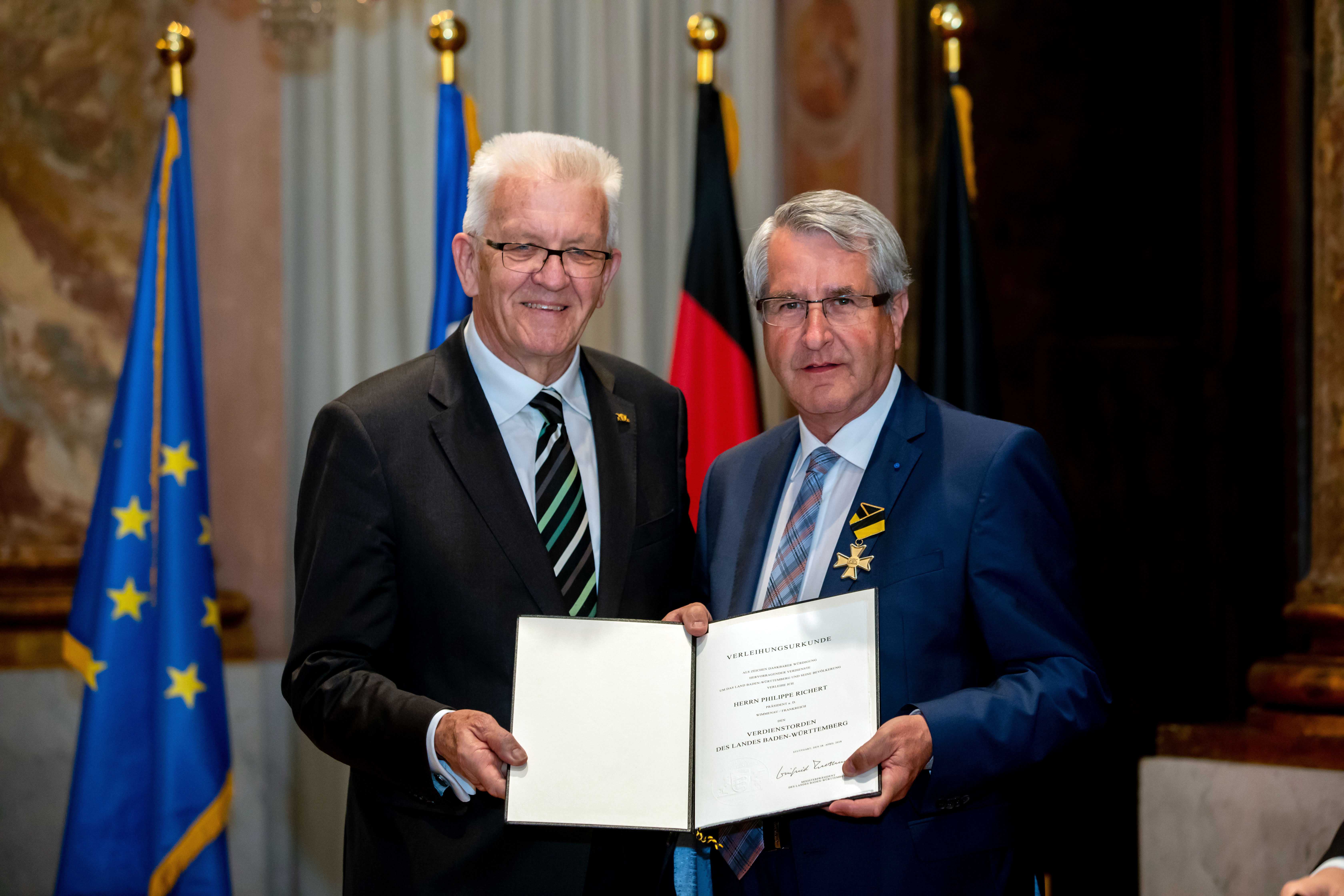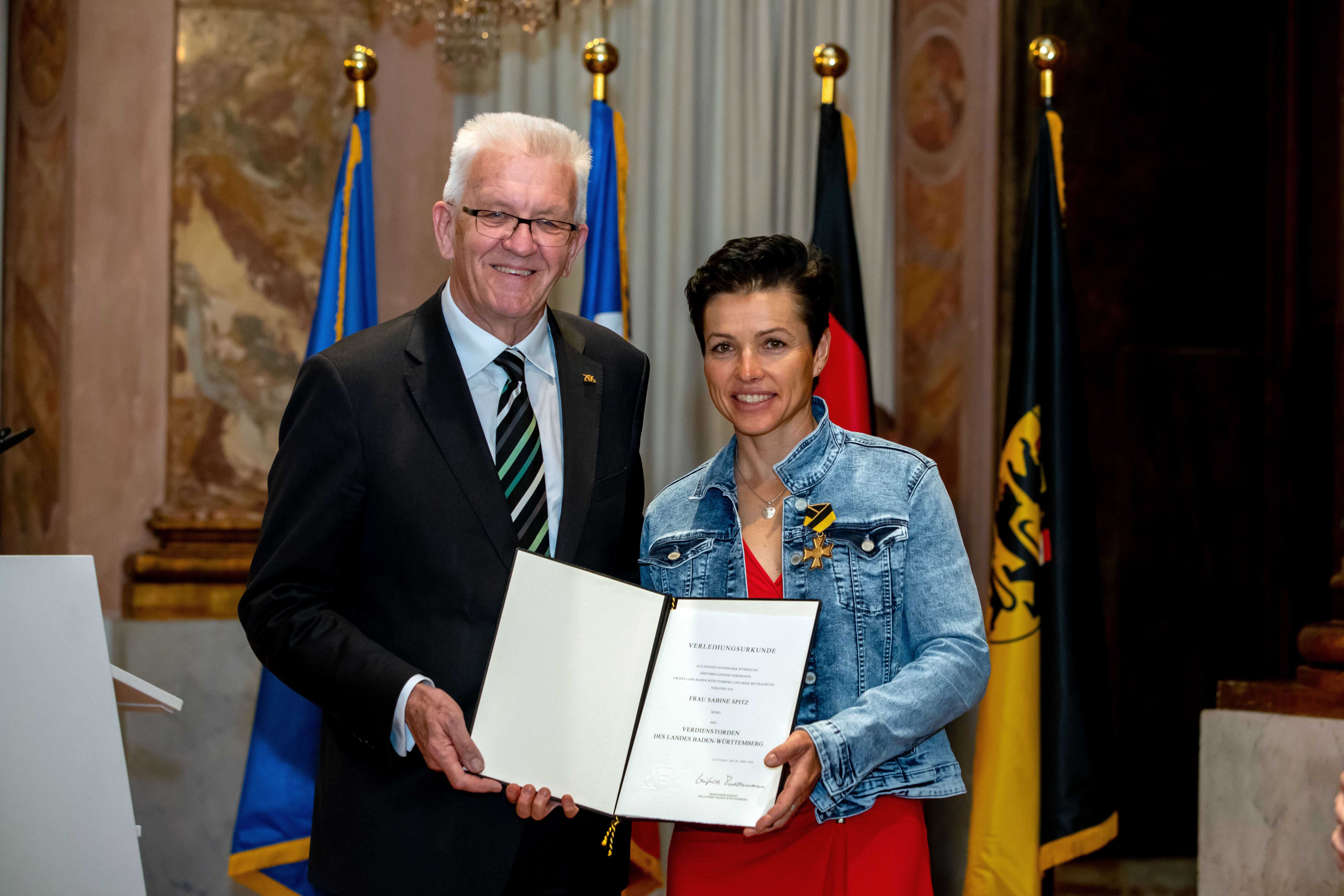Ministerpräsident Winfried Kretschmann hat den Verdienstorden des Landes Baden-Württemberg an 19 verdiente Persönlichkeiten verliehen. Die Geehrten bildeten einen beindruckenden Querschnitt ehrenamtlichen Engagements, so Kretschmann.