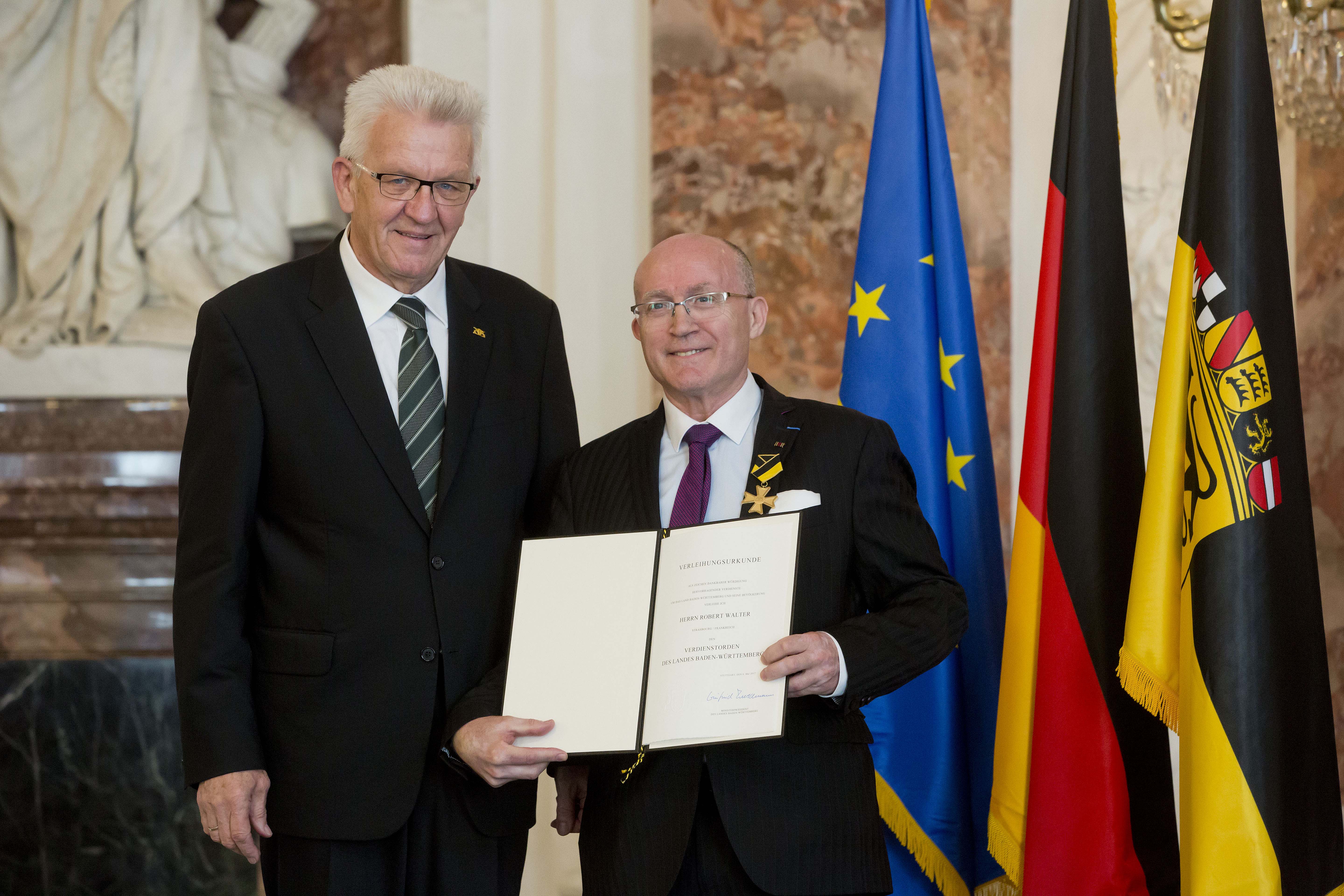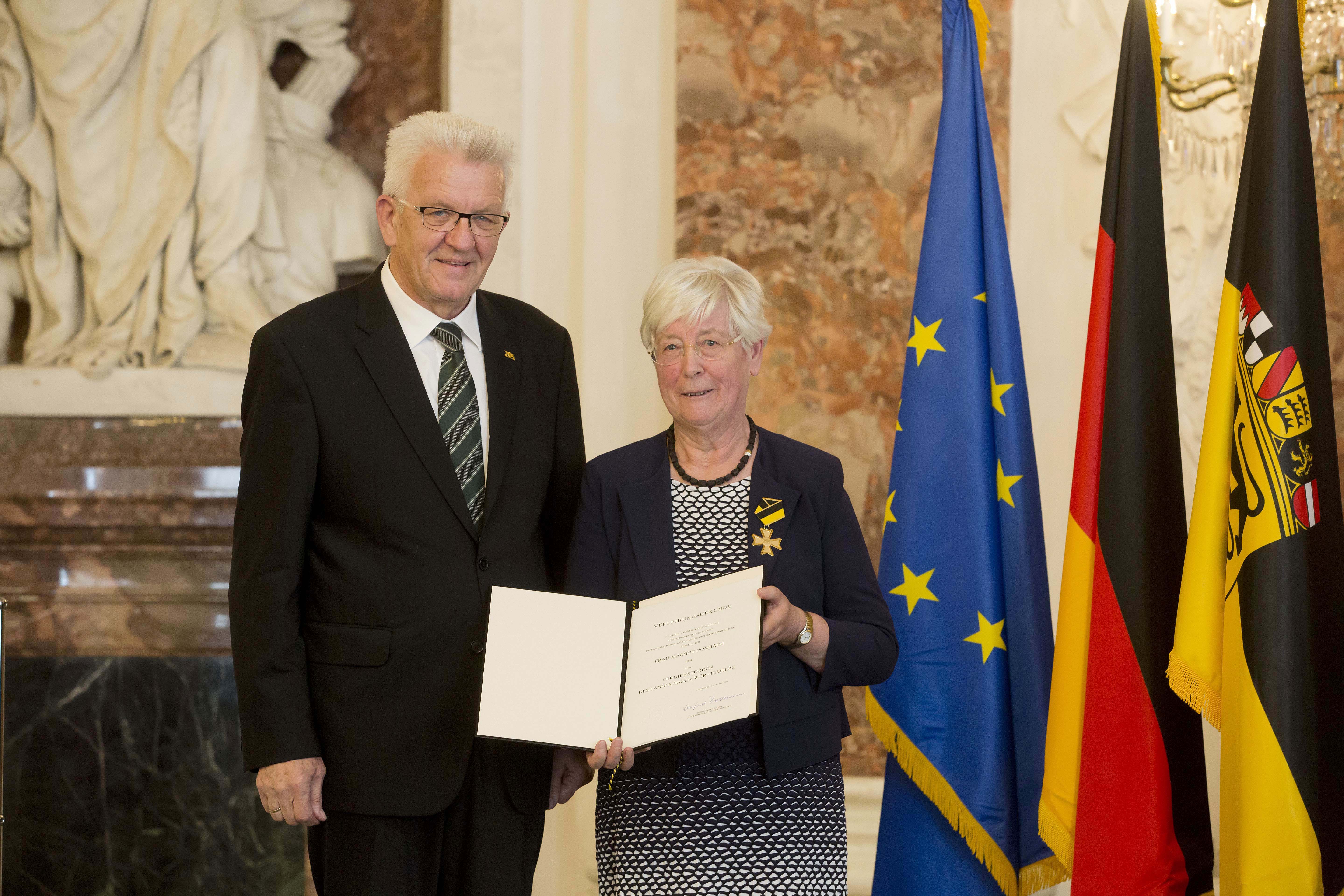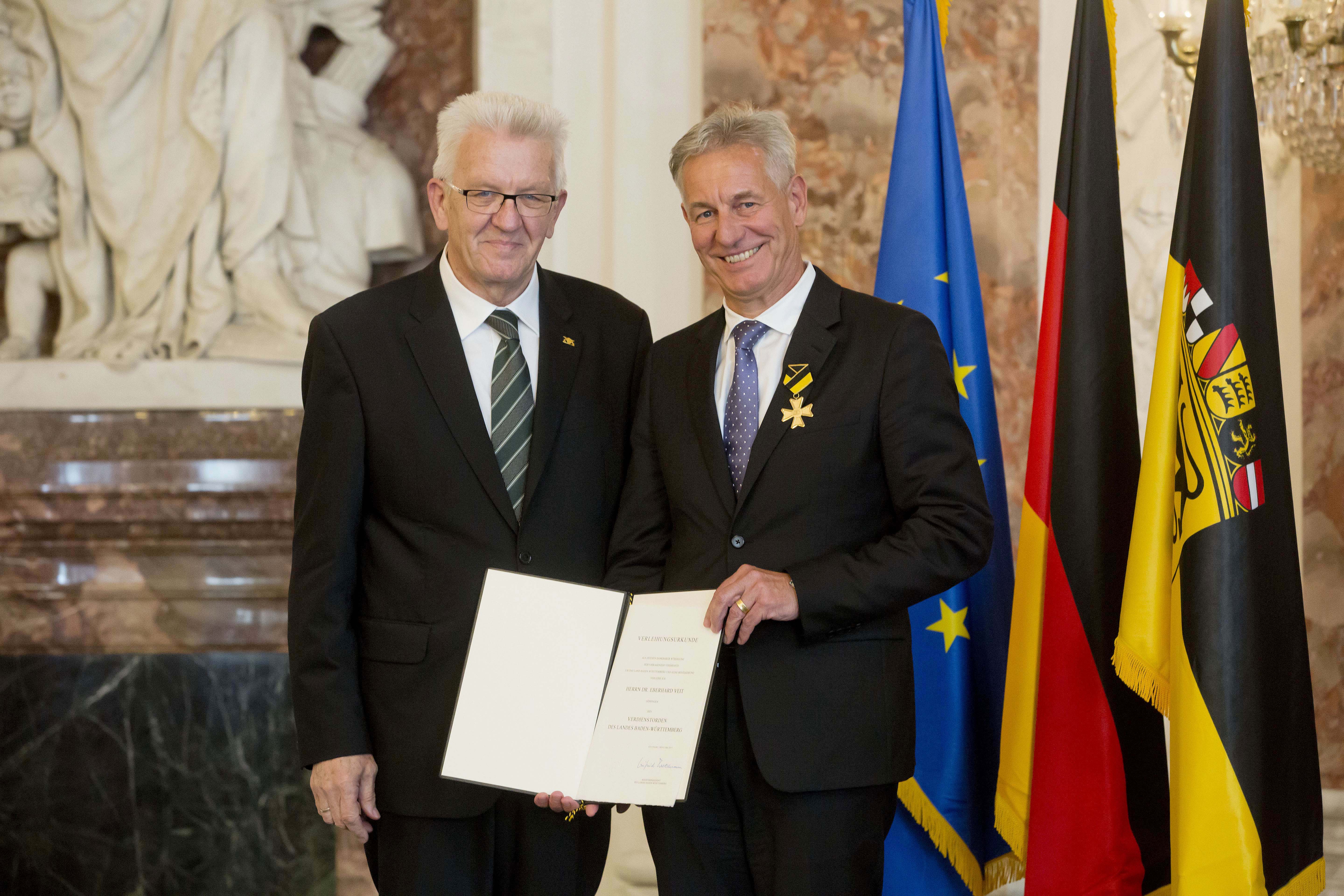 Ministerpräsident Winfried Kretschmann hat 22 verdienten Persönlichkeiten im Mannheimer Schloss den Verdienstorden des Landes Baden-Württemberg verliehen. Die Geehrten stünden für Mitmenschlichkeit, Solidarität und den Willen, neue Wege zu gehen. Damit seien sie auch echte Vorbilder.